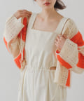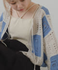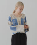 パッチワークとカラー配色がポイントになるカーディガンが登場しました。