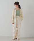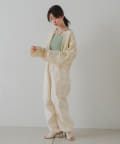 トップスが主役になるので、シンプルにデニムやサロペットの上から羽織るのがおすすめ。