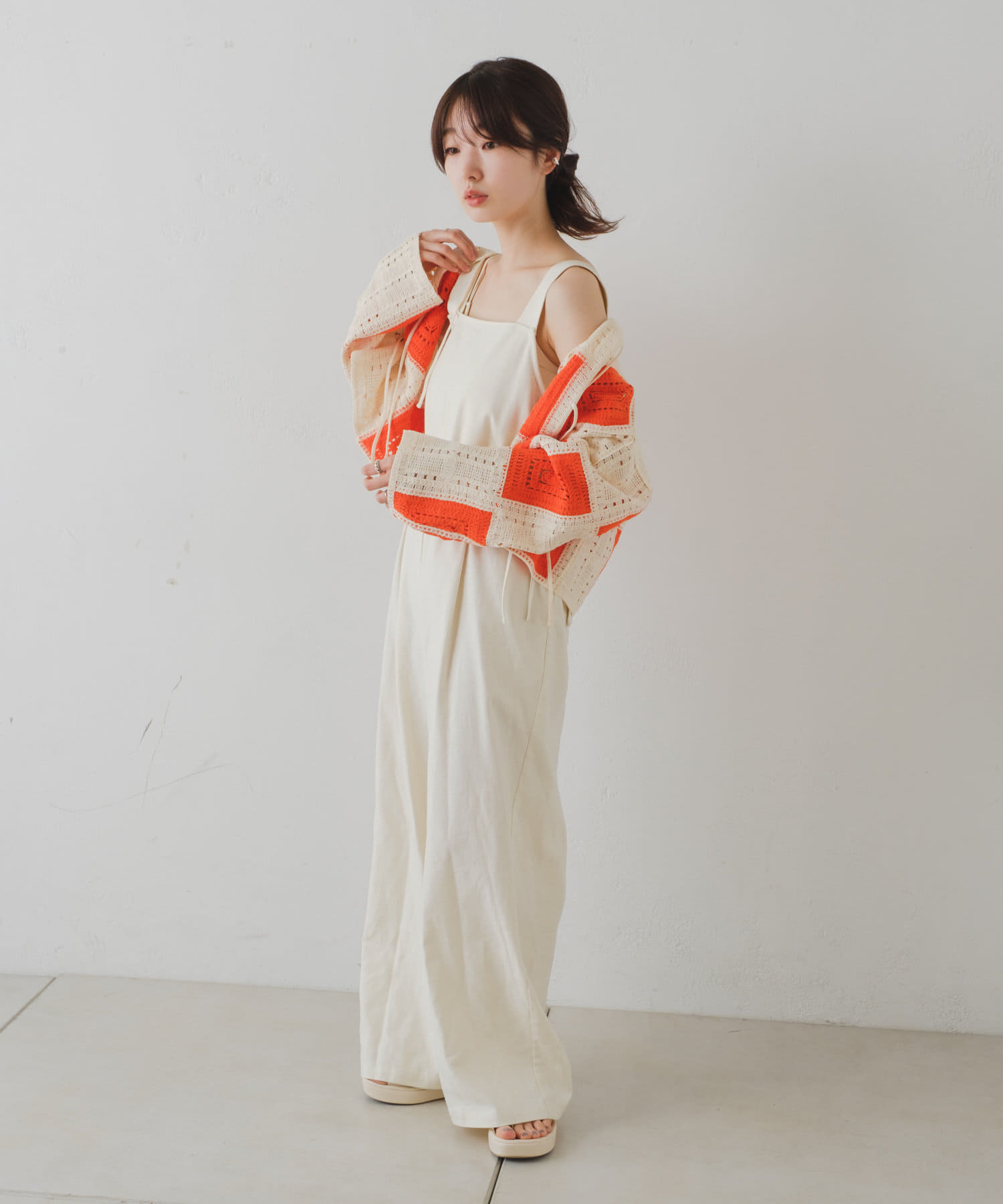 前後どちらでも着用可能で、リボン部分を結ばずサラッと羽織っていただいても◎