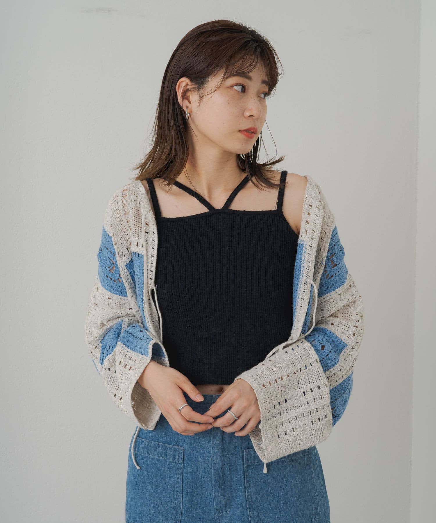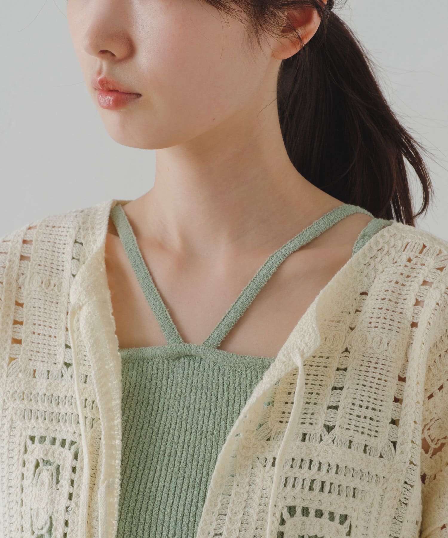 透かし編みデザインなので、インナーはカップ付きのインナーで合わせるのが◎
