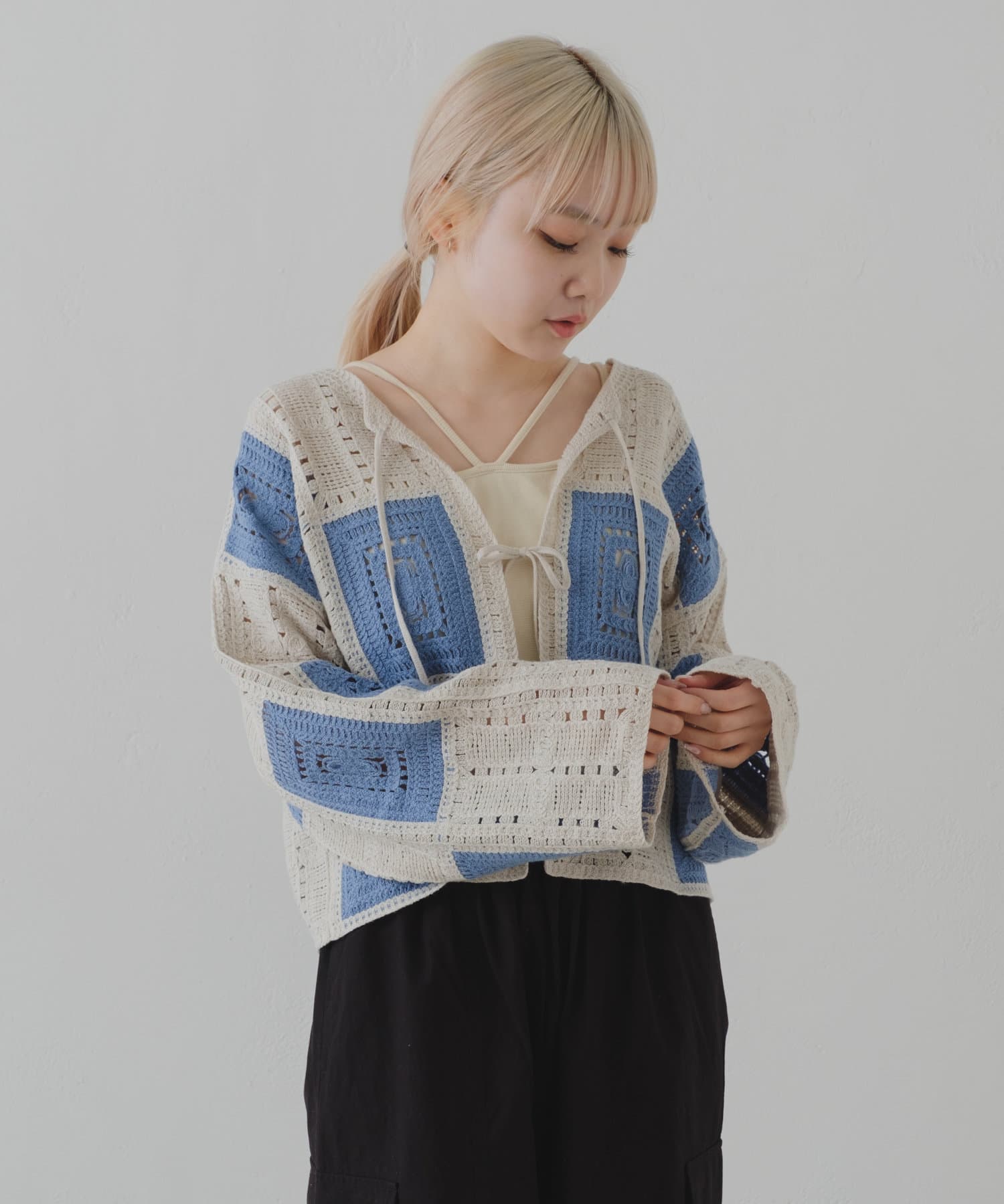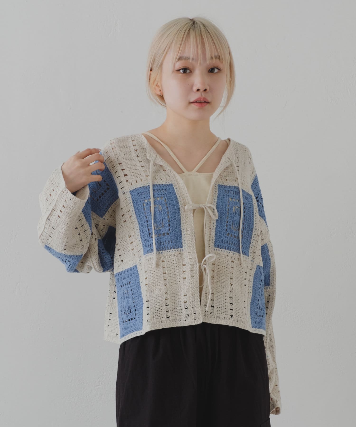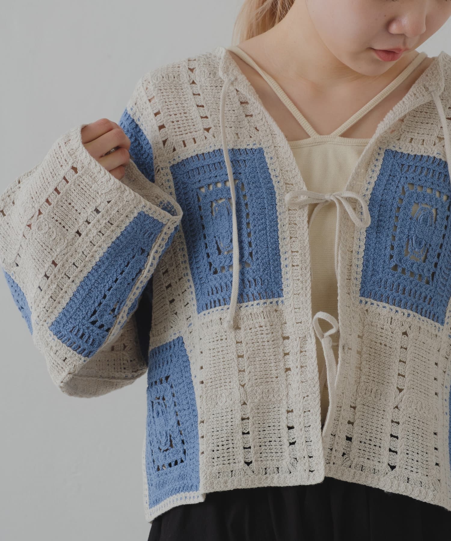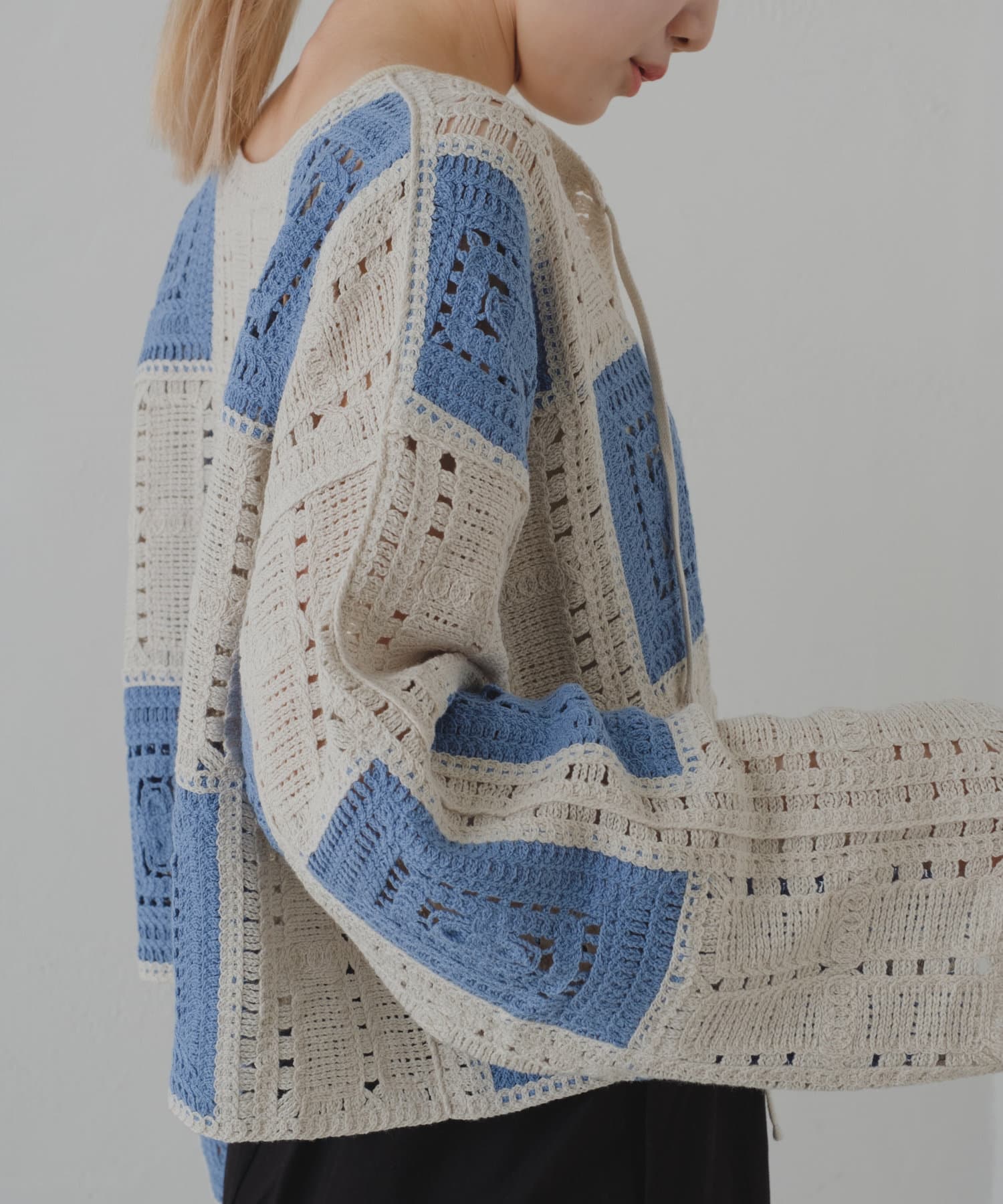 クロシェ編み×パッチワークが目を惹くカーディガンが登場
