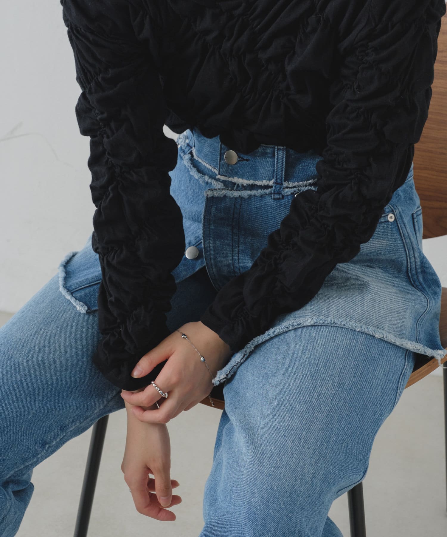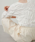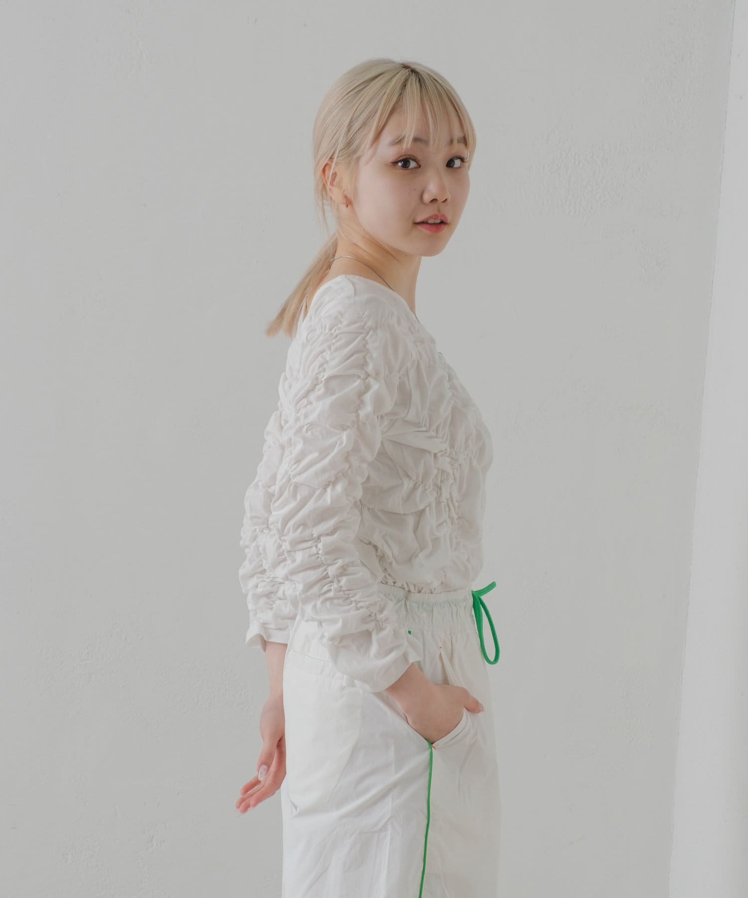 購入場所:店舗ずっと狙っていて店頭入荷したのをインスタで見て即購入しに行きました!クシュクシュの感じがランダムなのがすごく可愛くて、ボトムスの合わせ方によって色んな雰囲気を出せる所が良いなと思いました♡