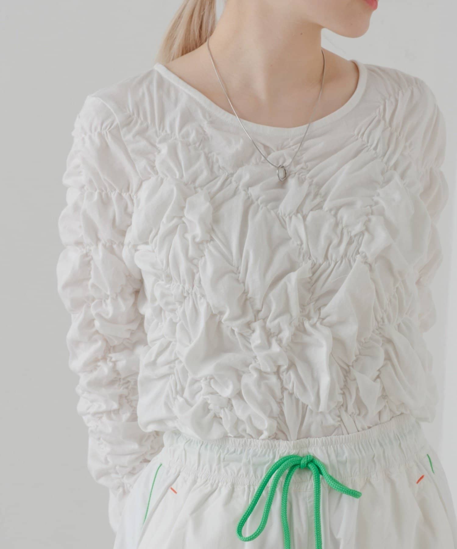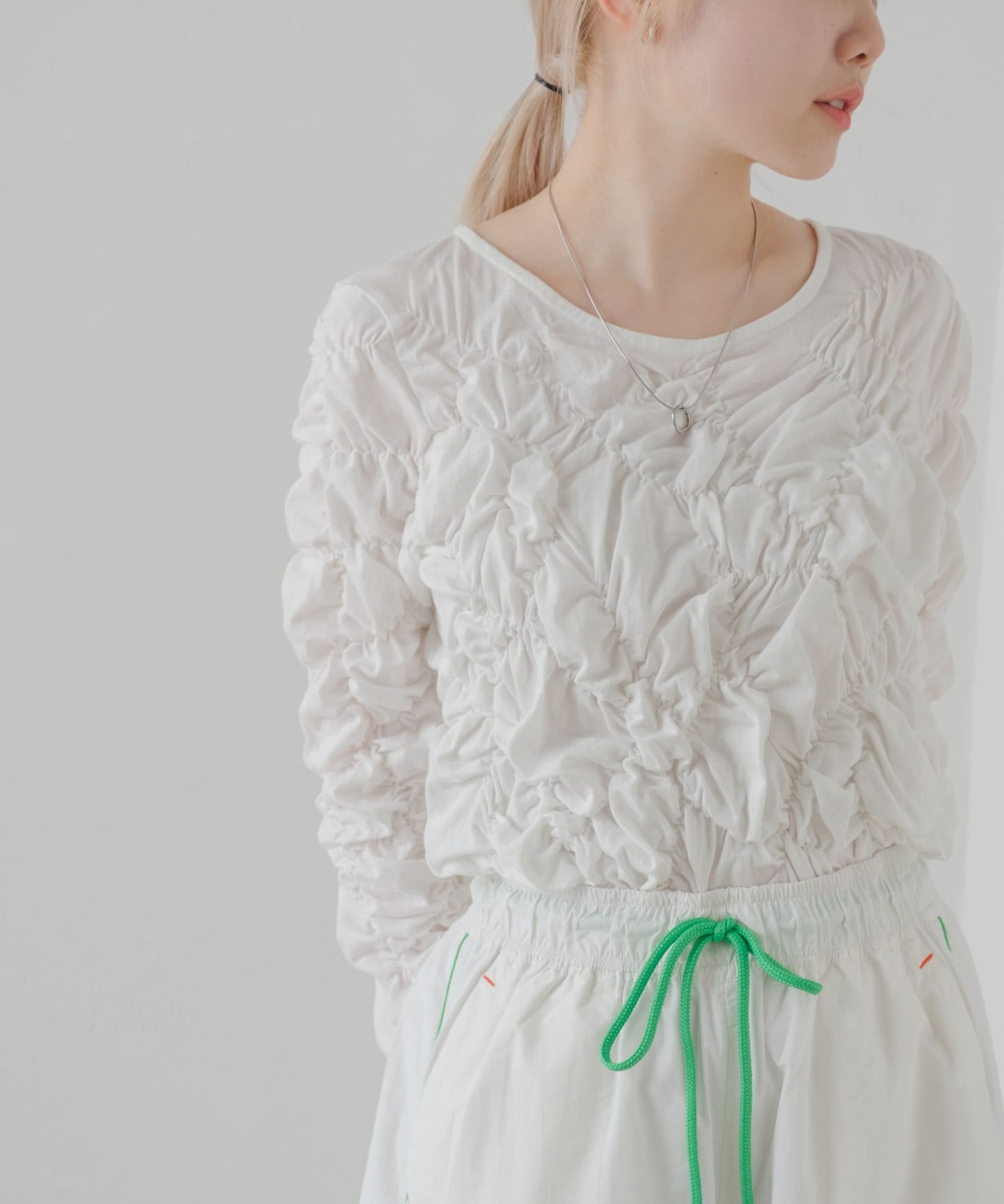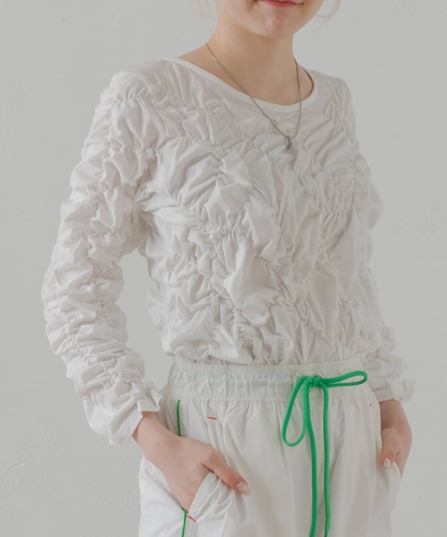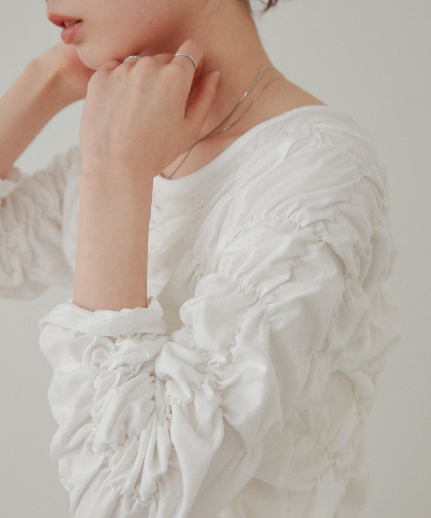 春注目のシャーリングデザインが全体に施された、立体感のあるデザイン。