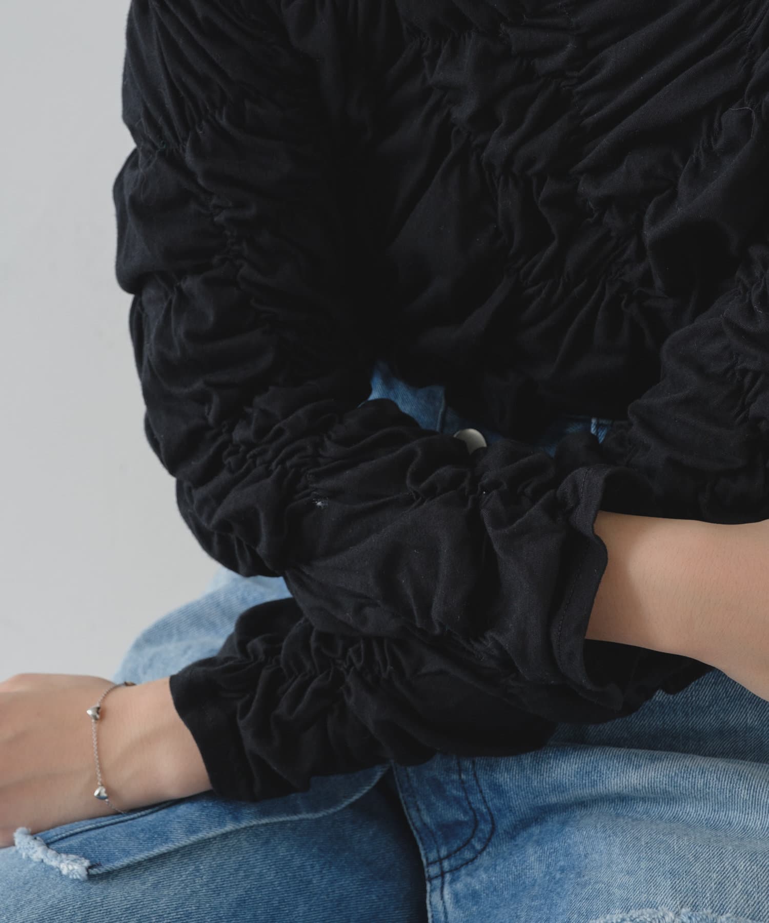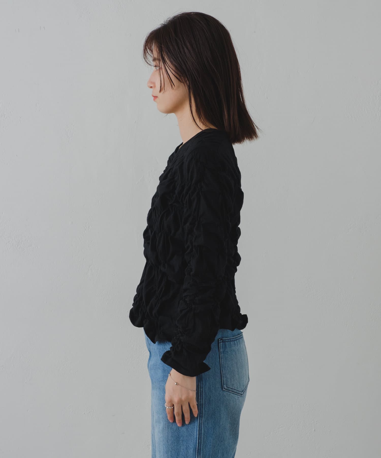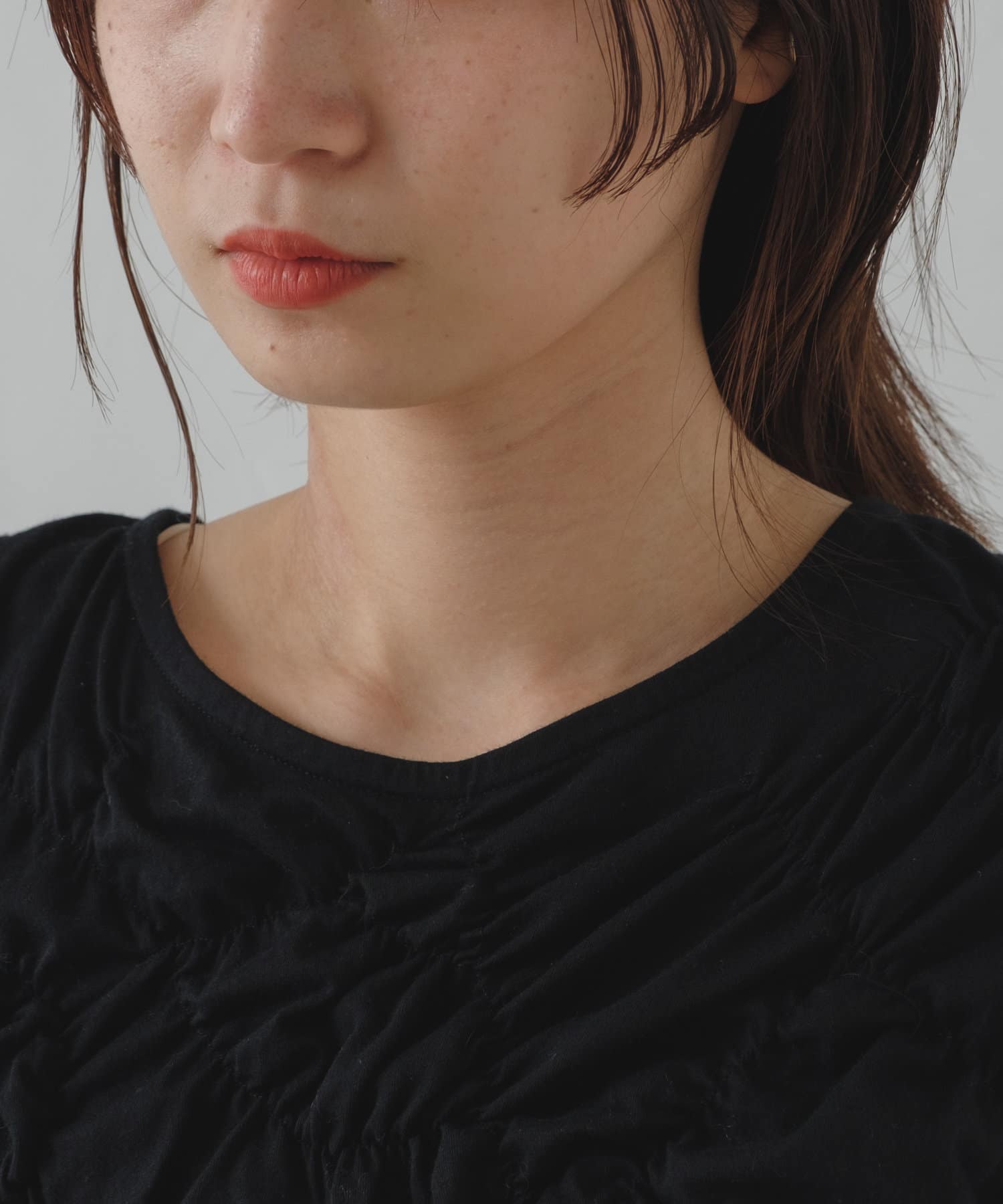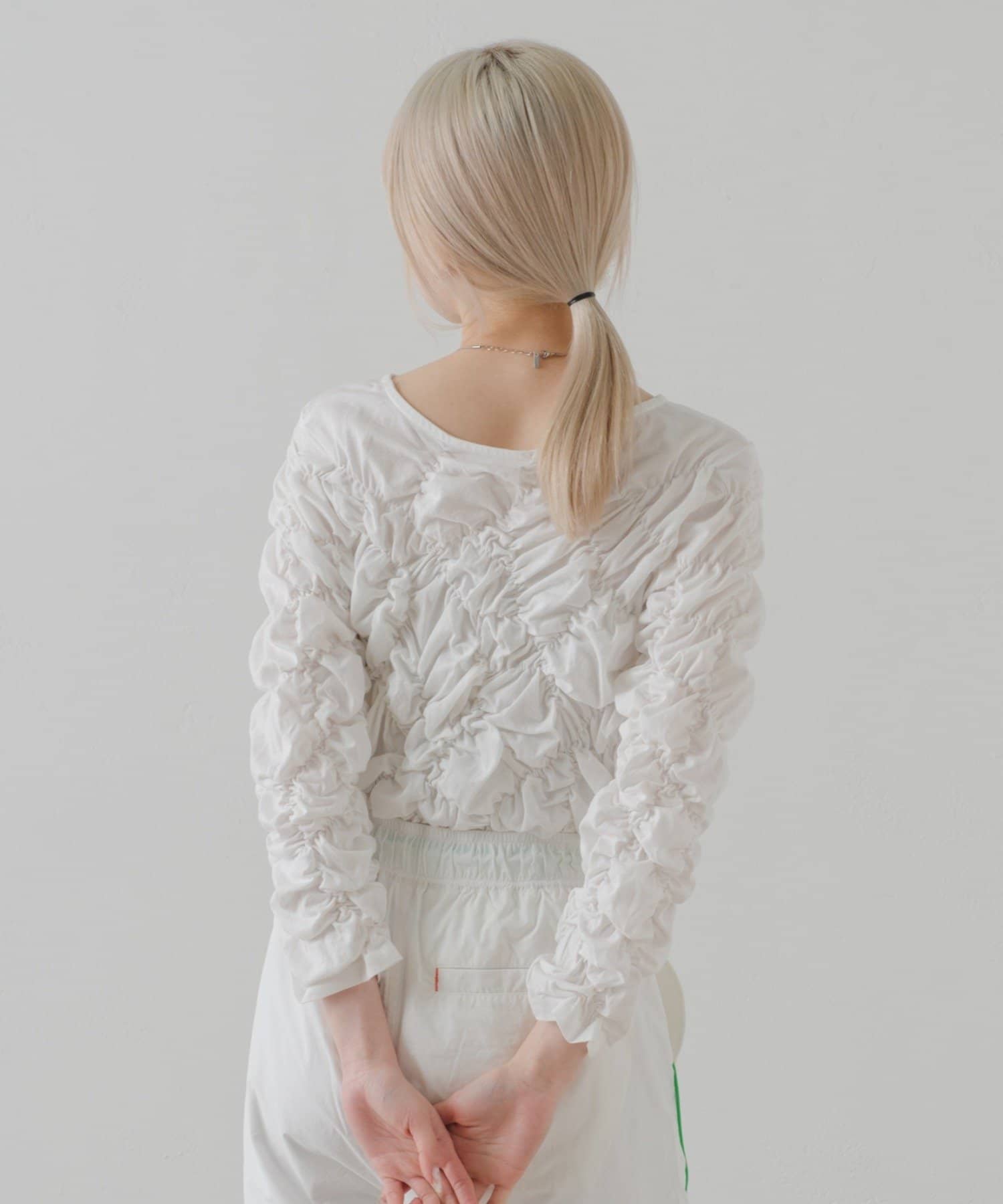 春注目のシャーリングデザインが全体に施された、立体感のあるデザイン。