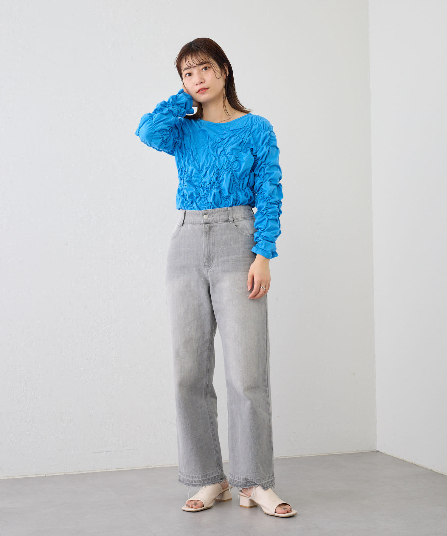購入場所:パルクローゼットくしゅっとしたデザインが可愛くて、このトップスとデニムだけでもオシャレに見えそうです!