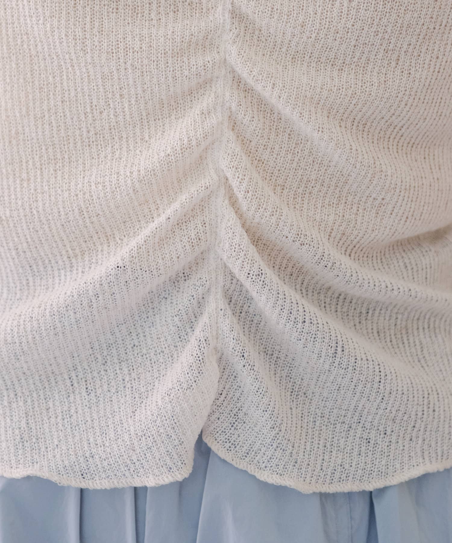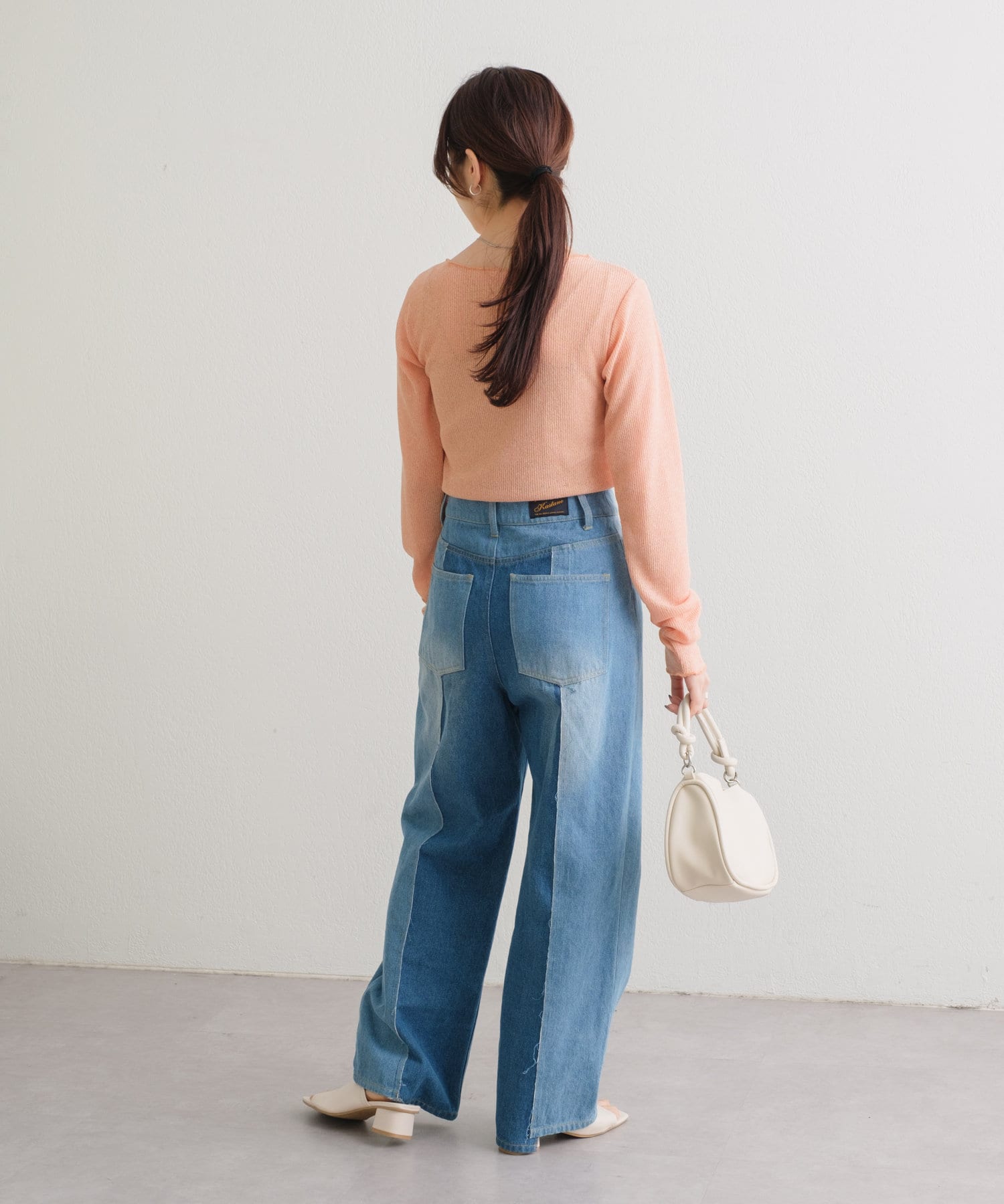 前後どちらでも着用可能なので、Vネックとクルーネックとして2通りのバランスで雰囲気を変えて着用頂けます。