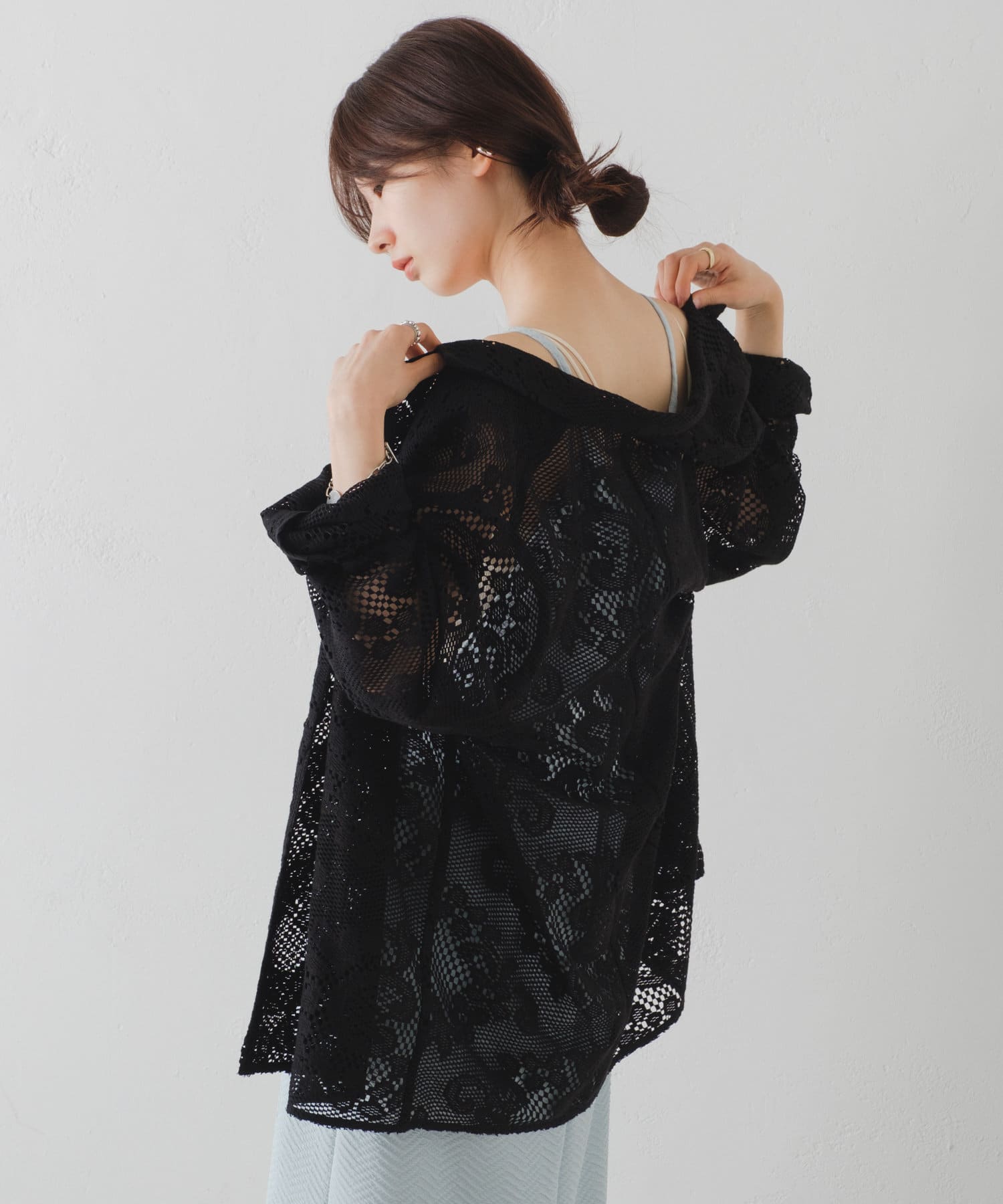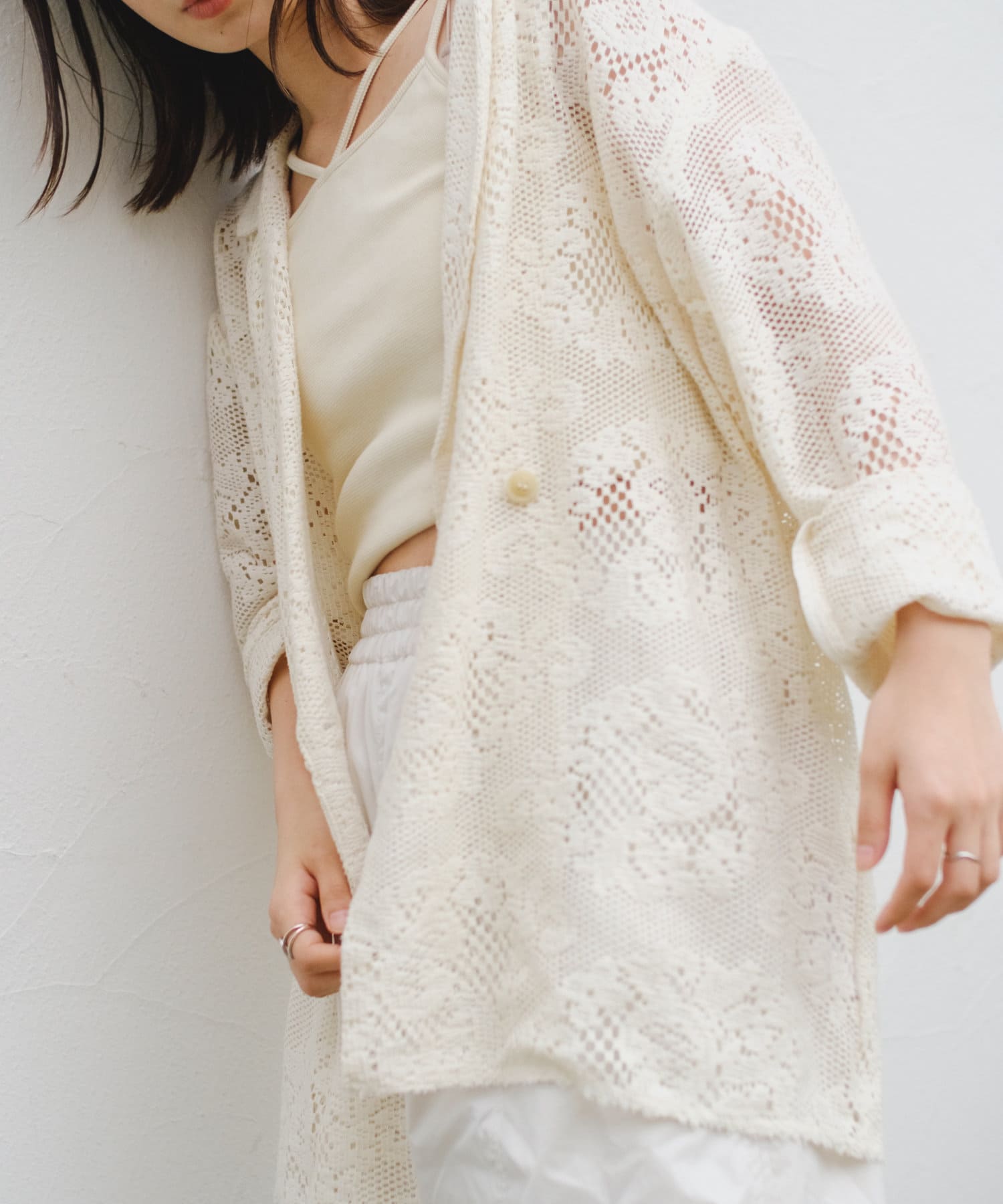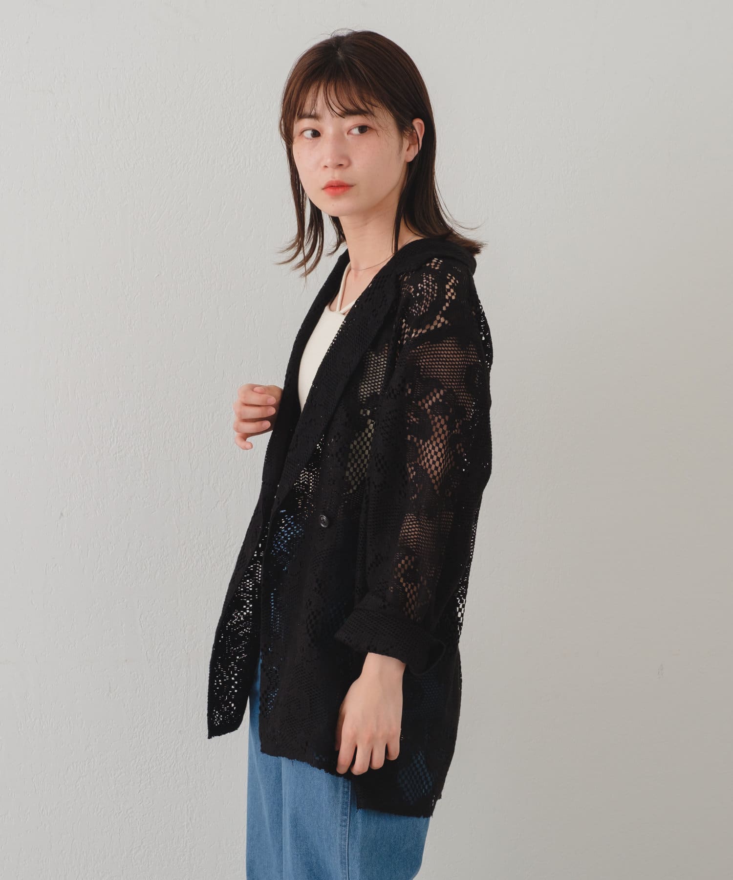 カットレースの素材なので柔らかく、シャツ感覚で羽織って頂けます。