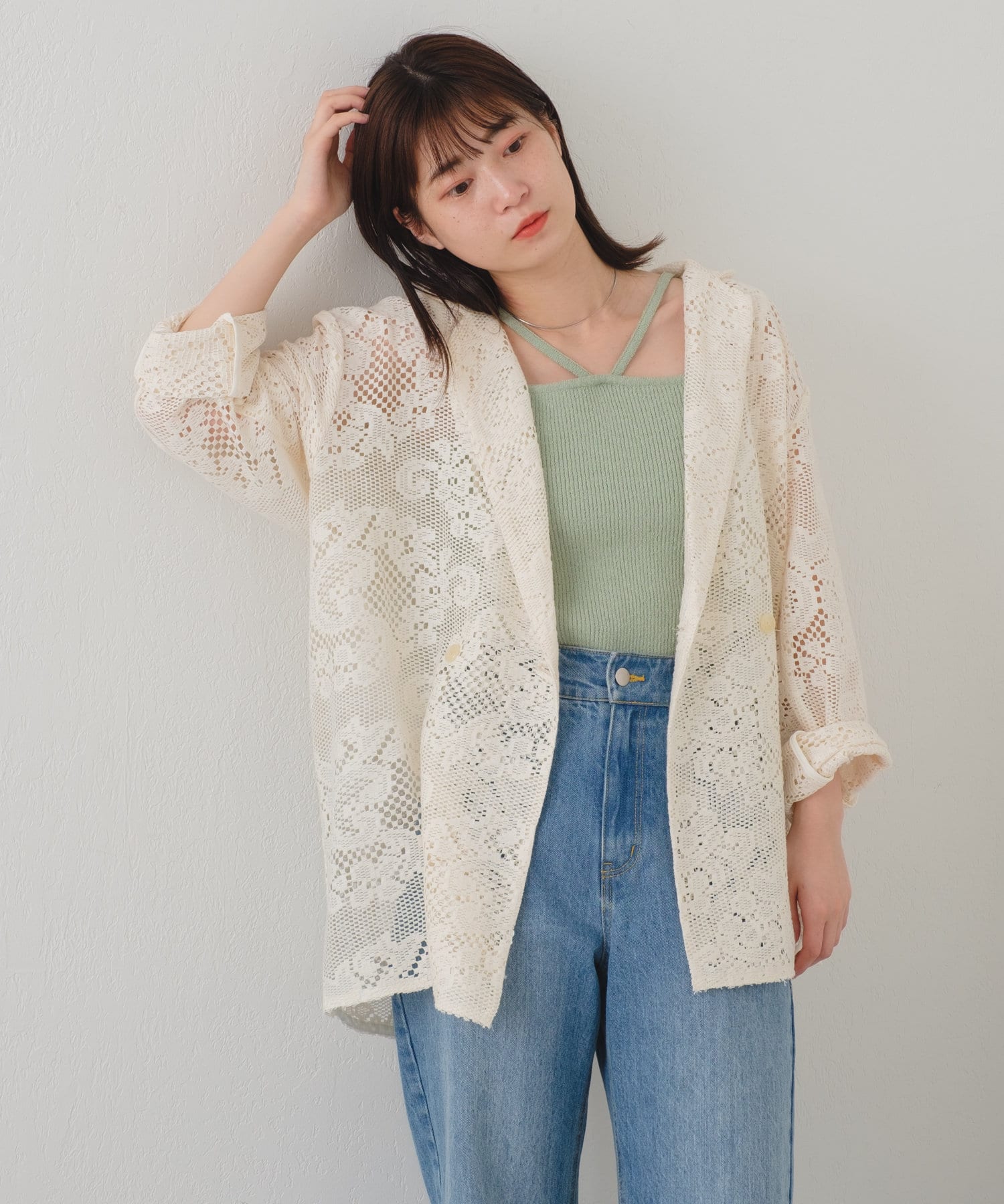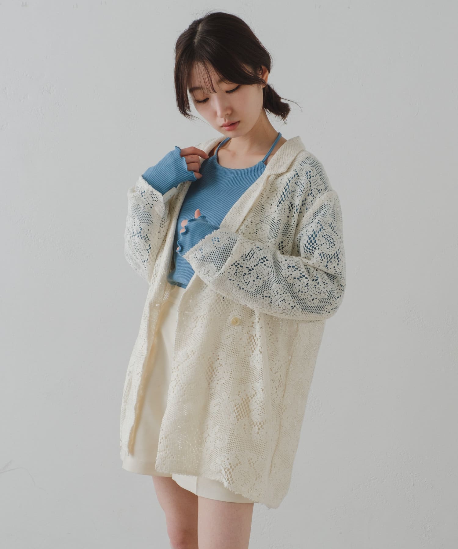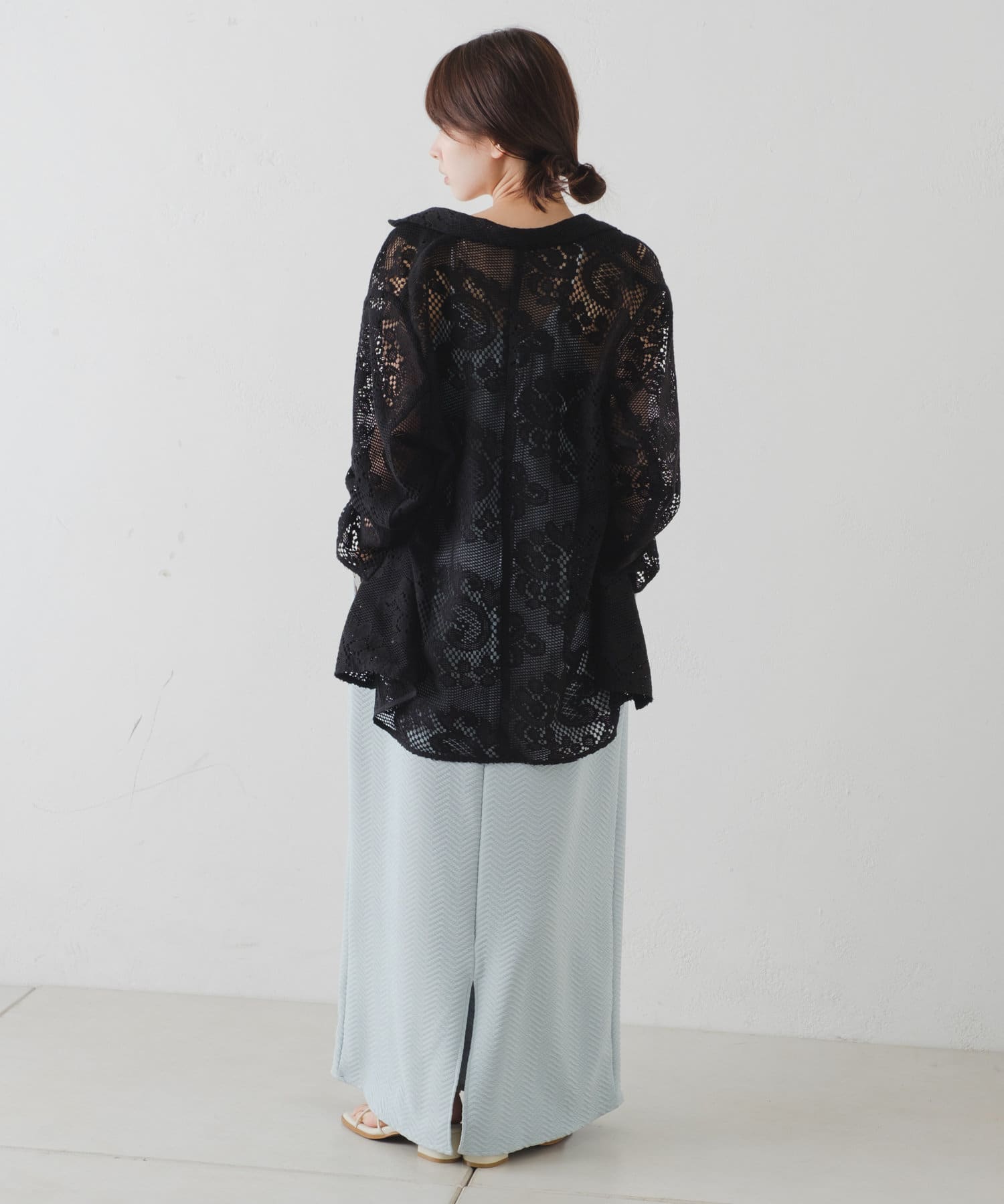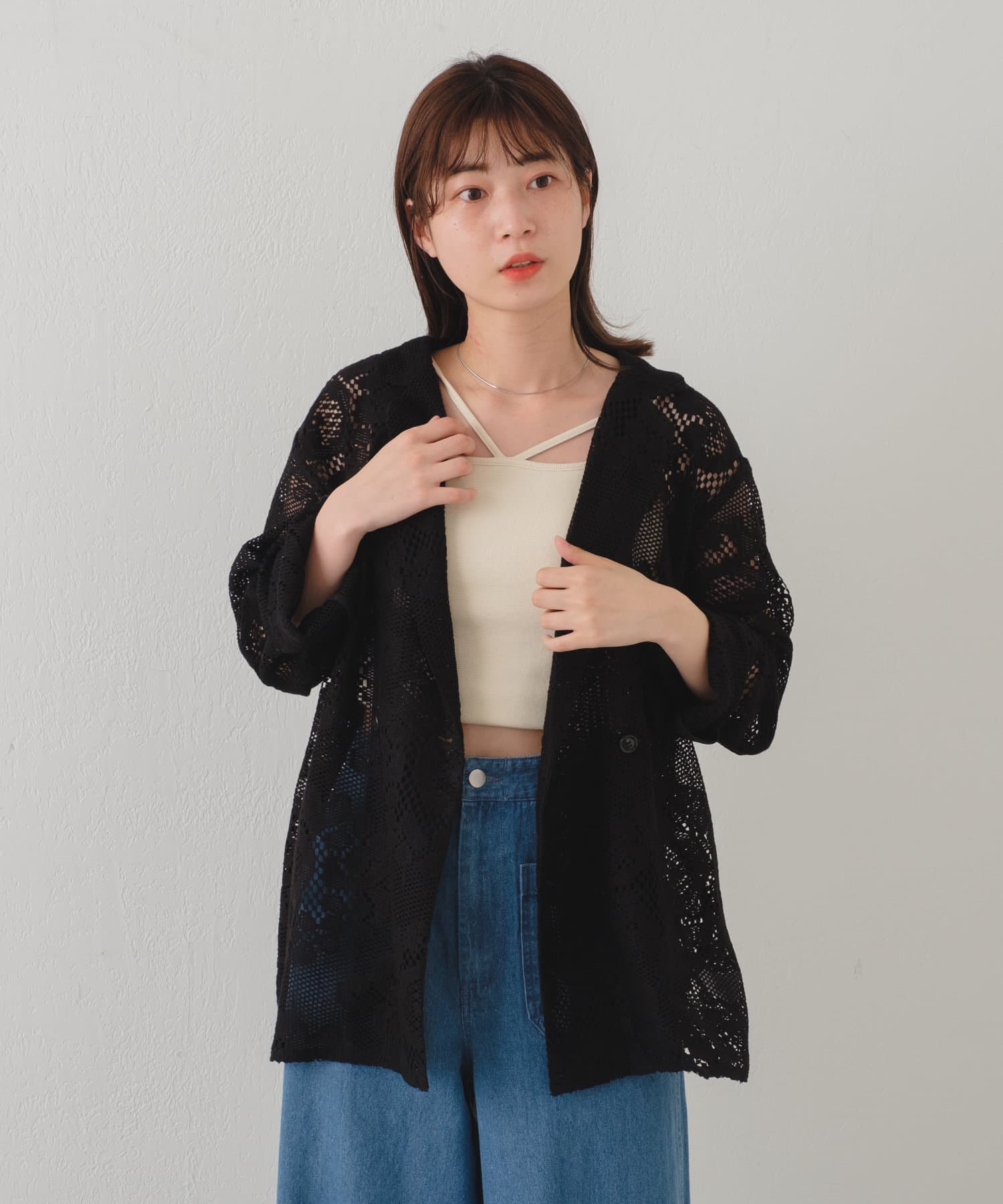 カットレースの素材なので柔らかく、シャツ感覚で羽織って頂けます。
