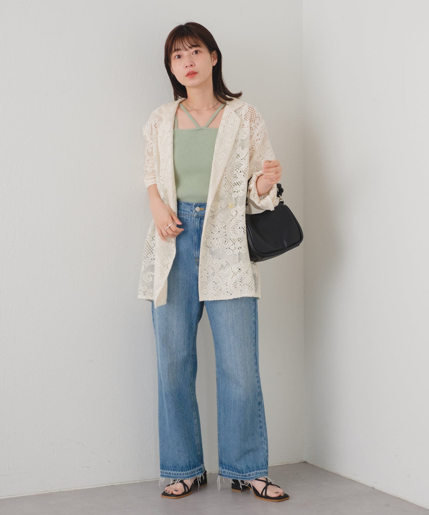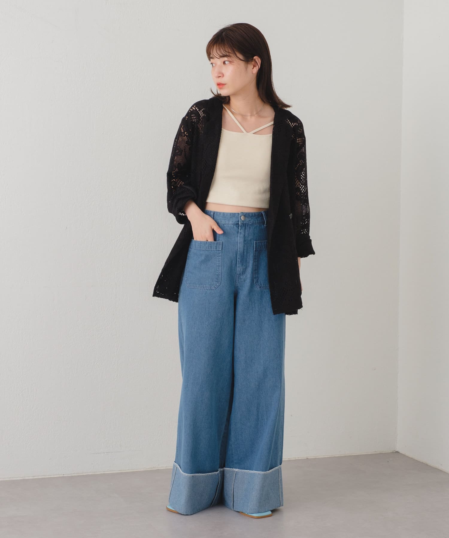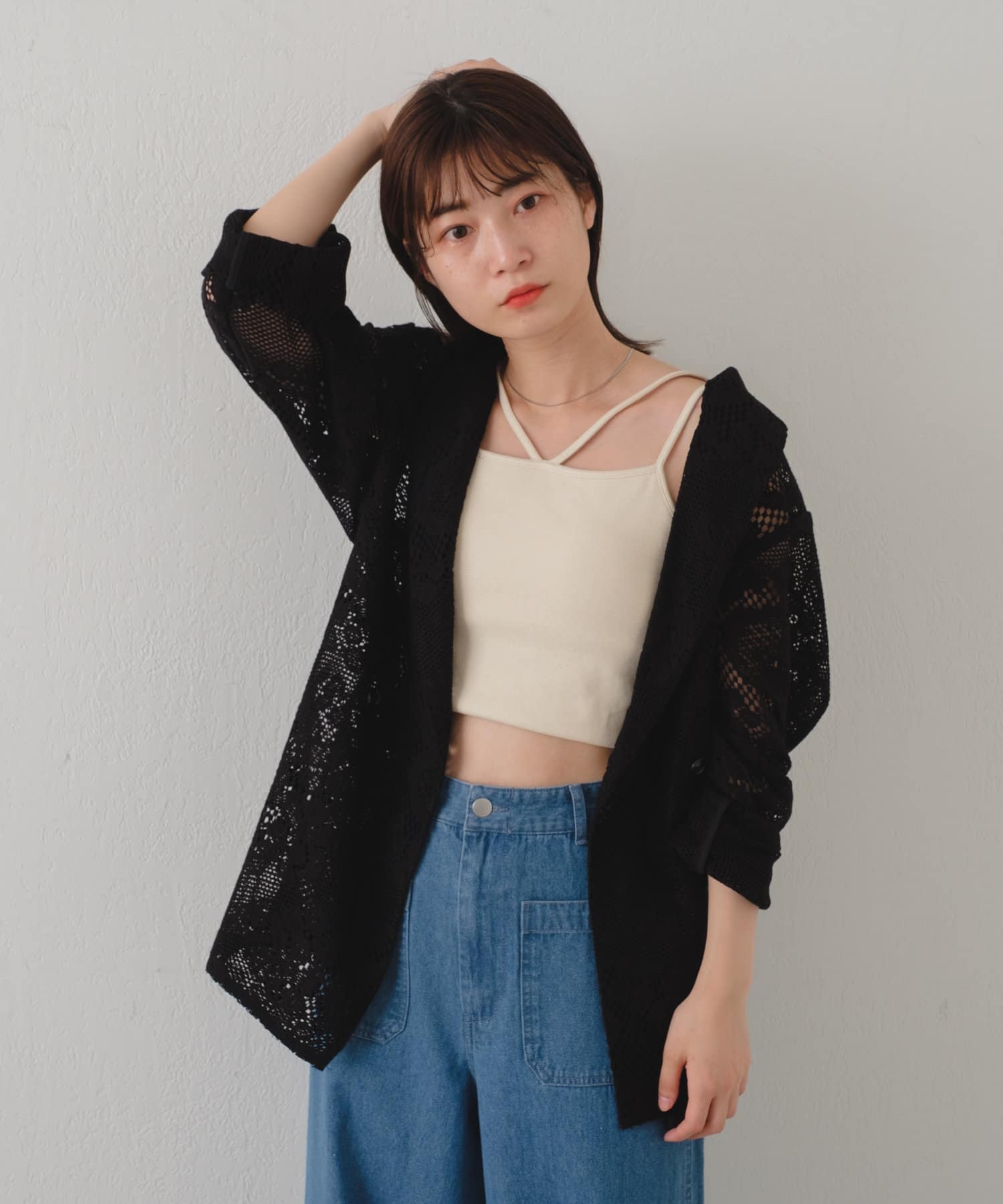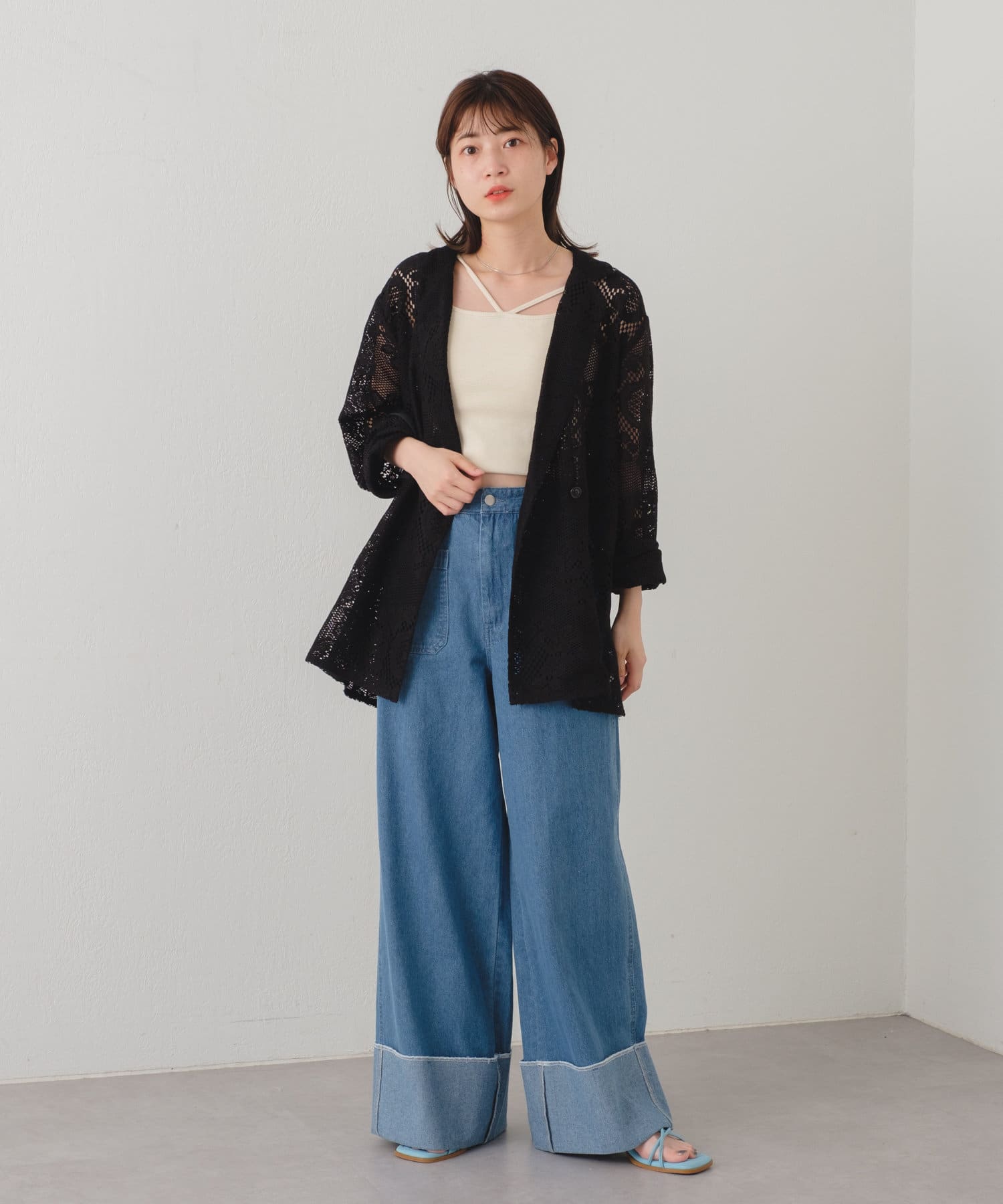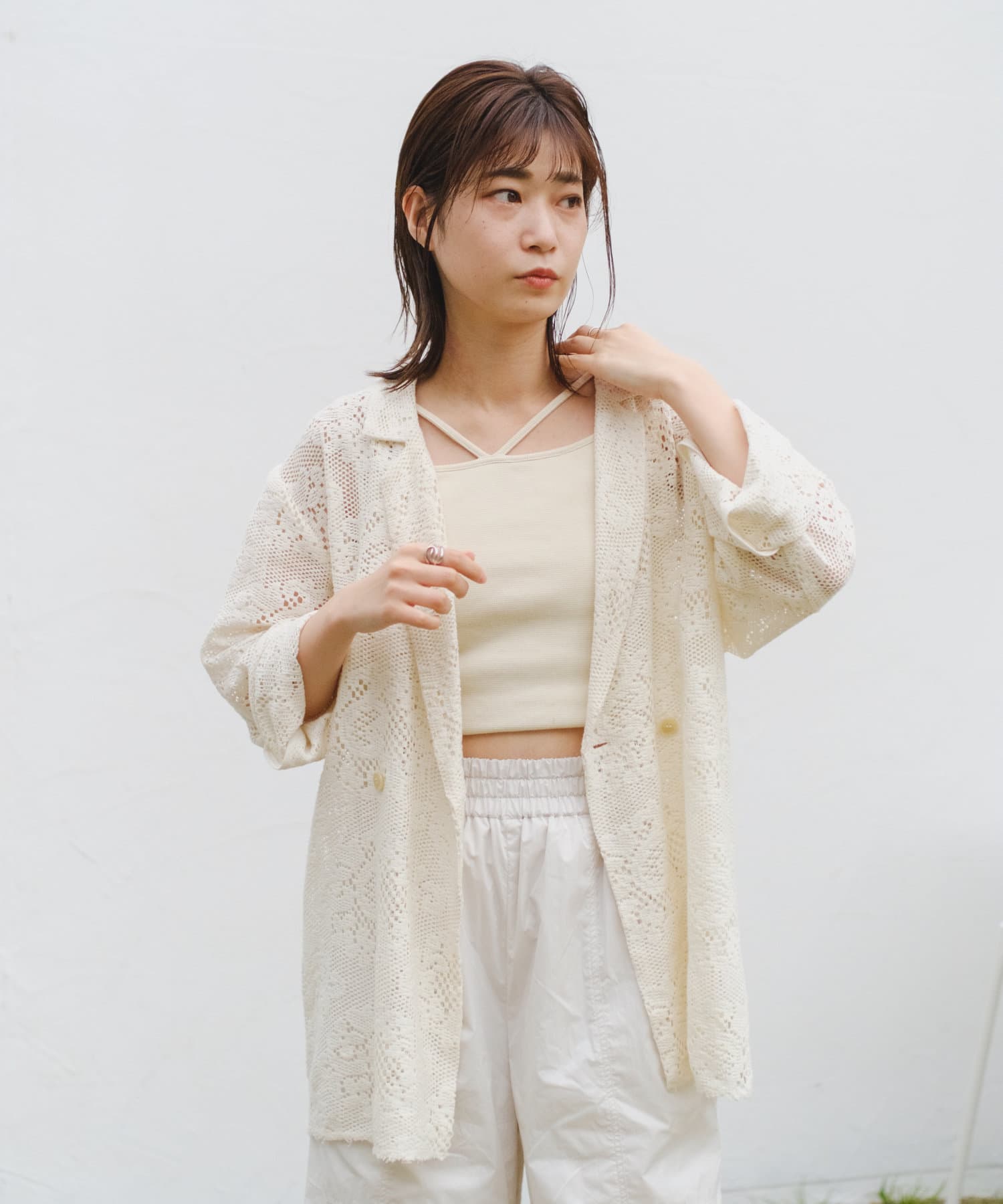購入場所:店舗アイボリーとブラックの二色を購入しましたがパンツスタイルでもワンピーススタイルでもいろんな組み合わせができます。レースジャケットなので暑すぎることなく夏場にも活躍しそうです!