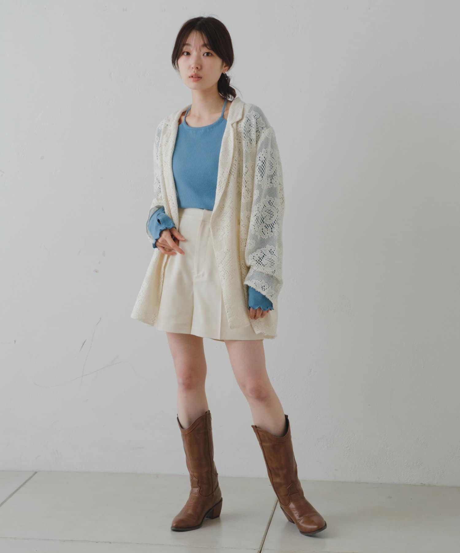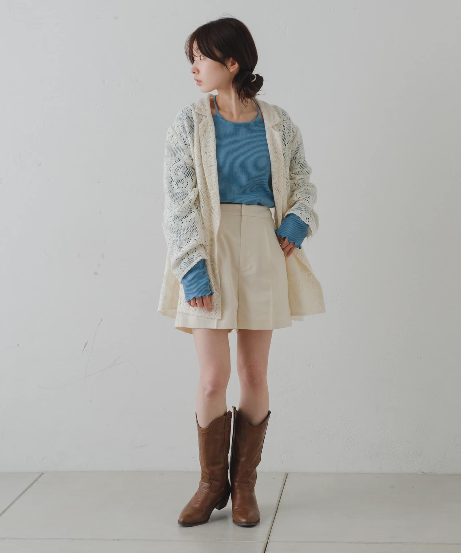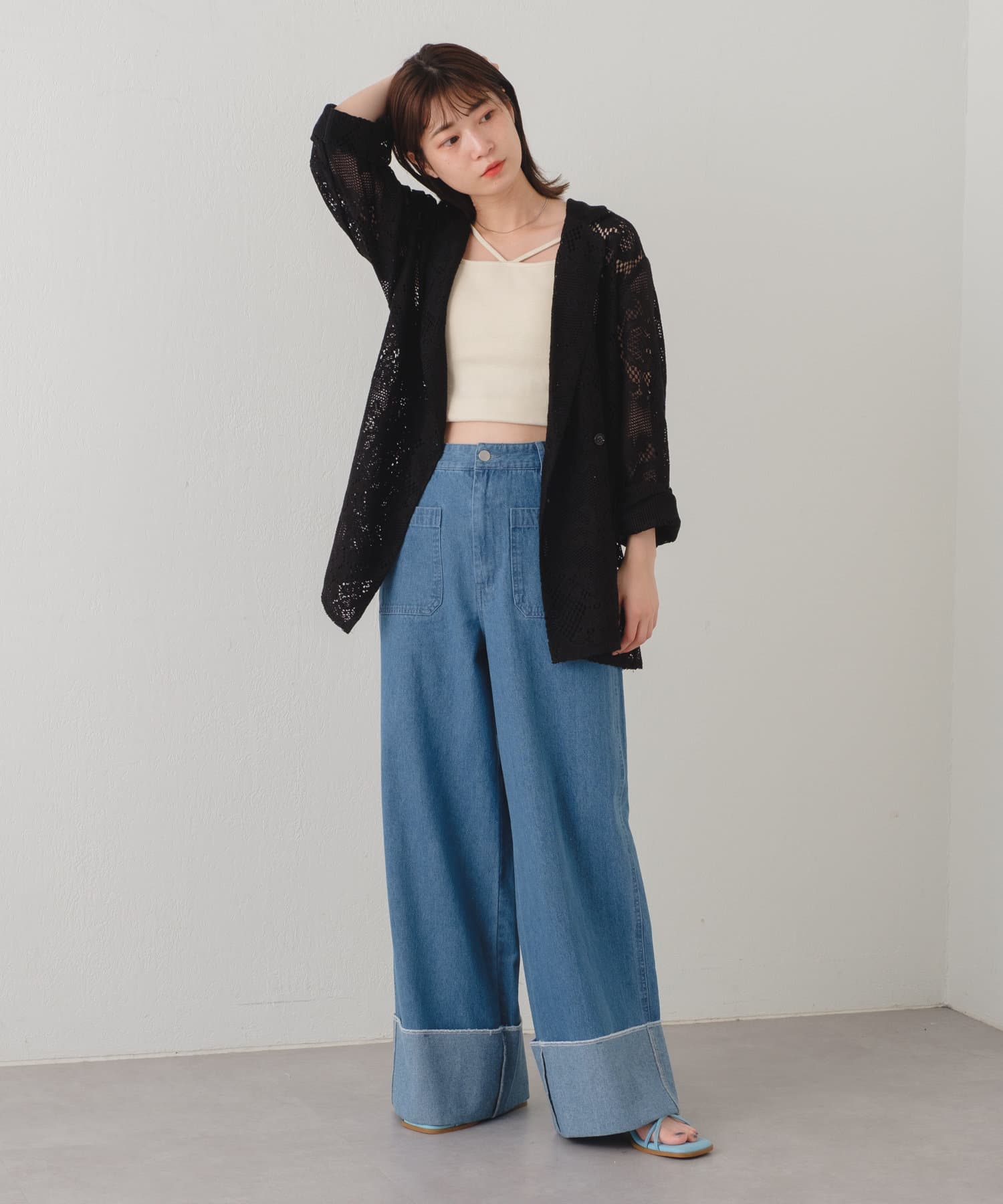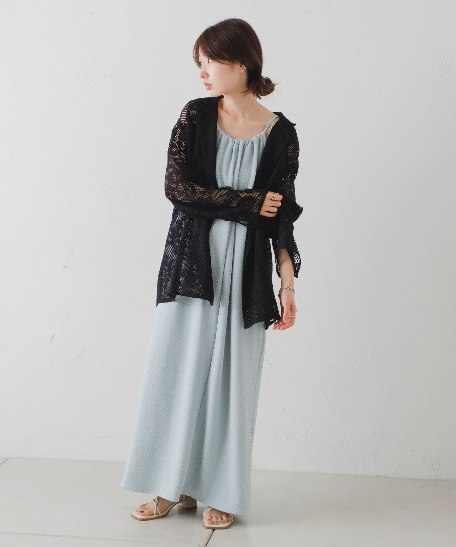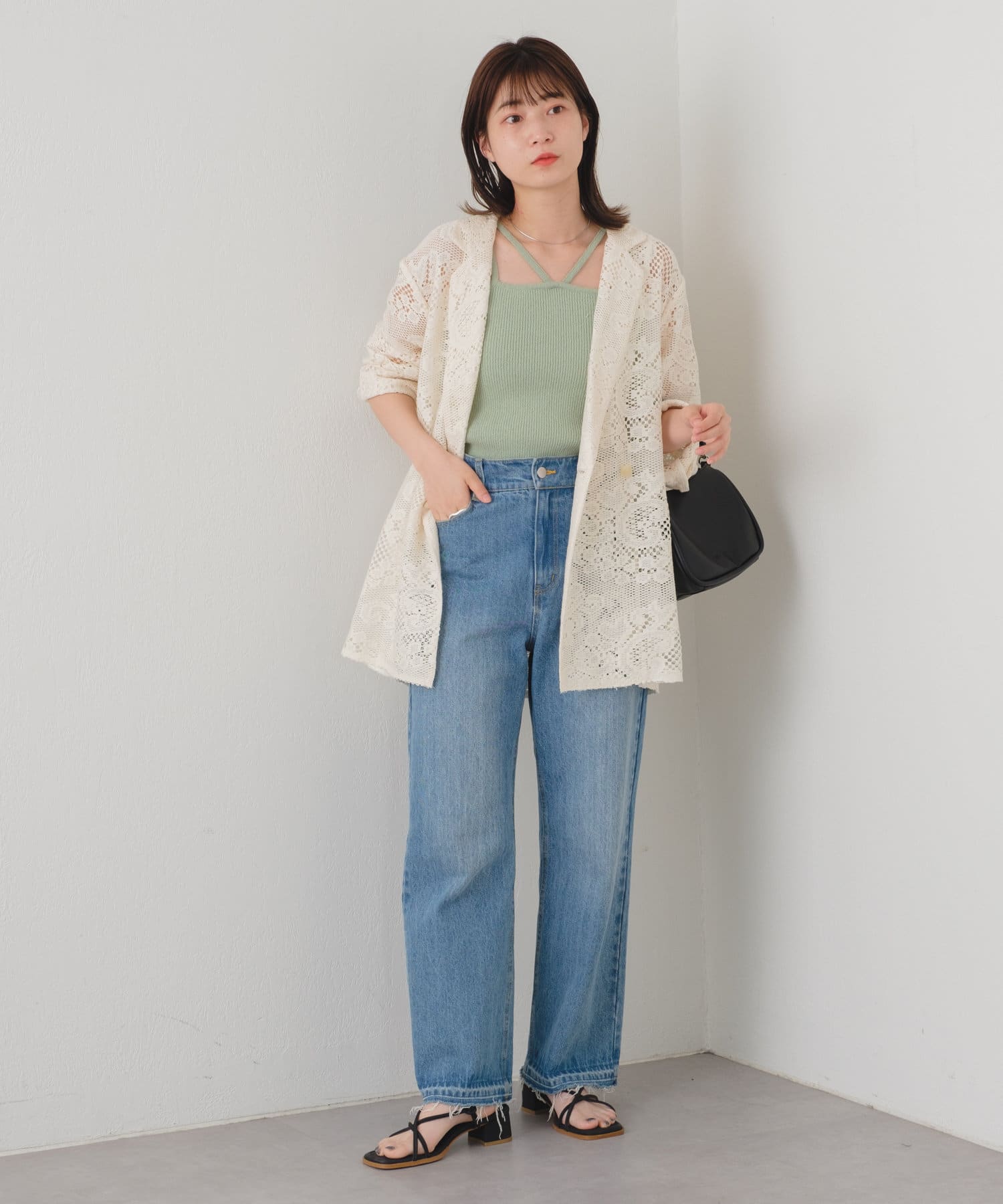 購入場所:店舗アイボリーとブラックの二色を購入しましたがパンツスタイルでもワンピーススタイルでもいろんな組み合わせができます。レースジャケットなので暑すぎることなく夏場にも活躍しそうです!