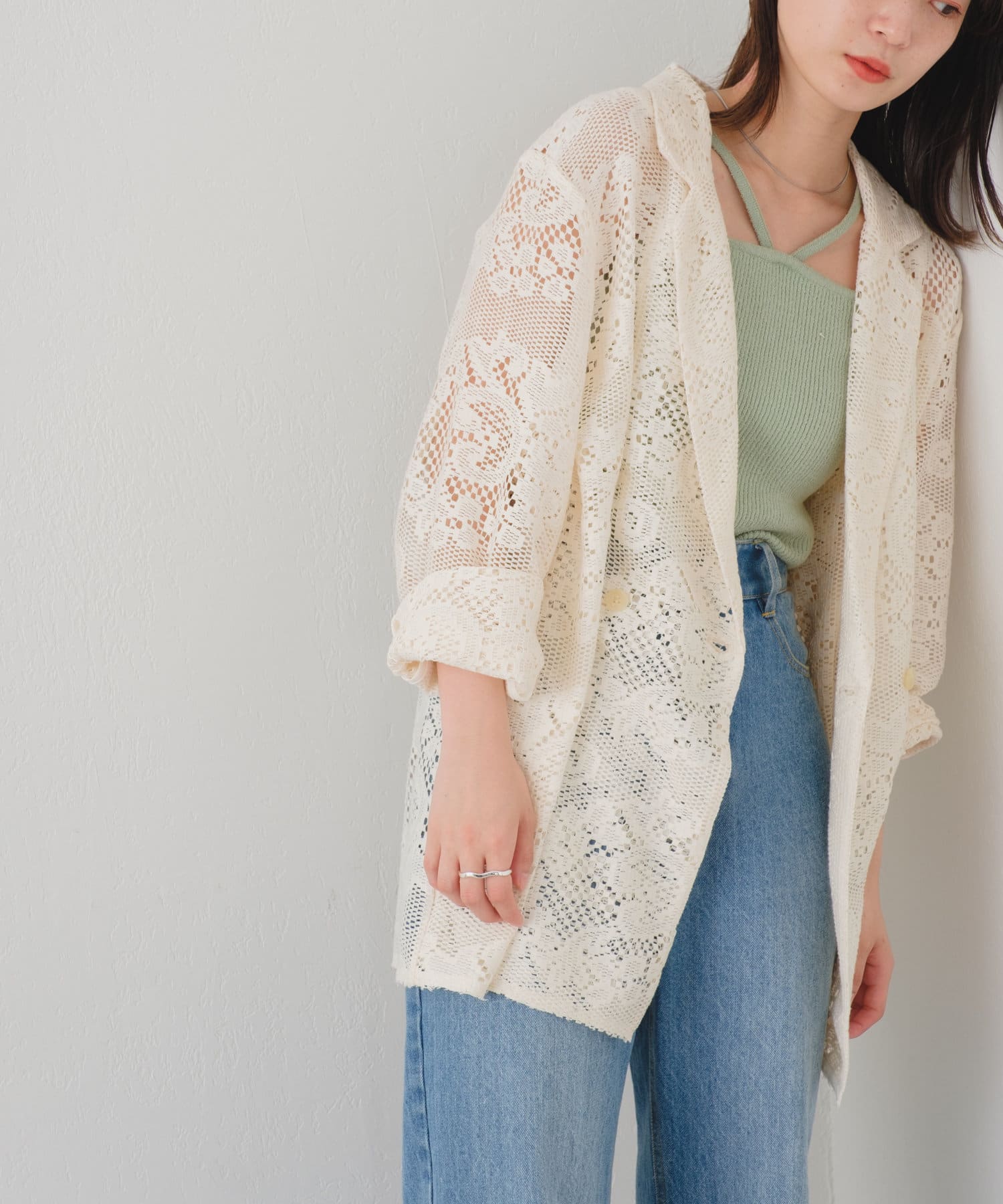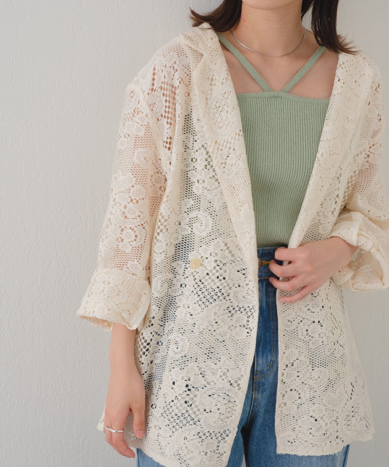 レース素材が主役になる、ジャケットが登場