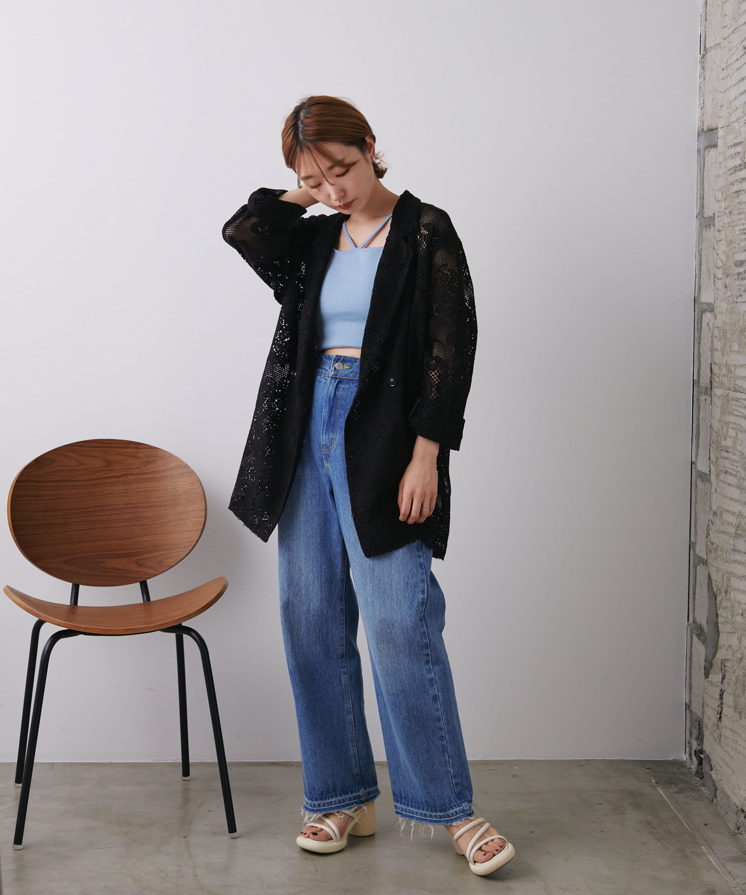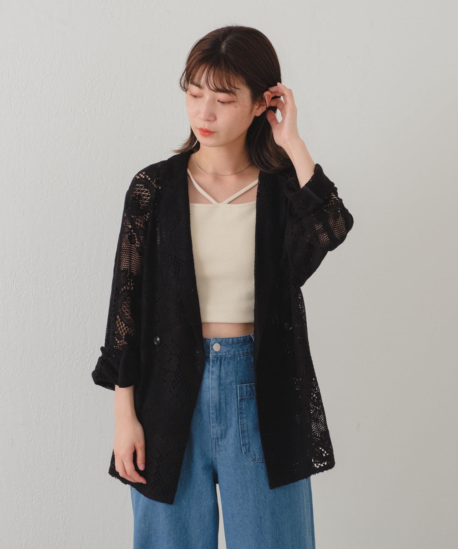 購入場所:店舗レースのジャケットってどうなんだろう…と思っていましたが、オーダー会で羽織ってみてとても気に入りました。デニム合わせが可愛く着れましたが他の着方も考えたいです。