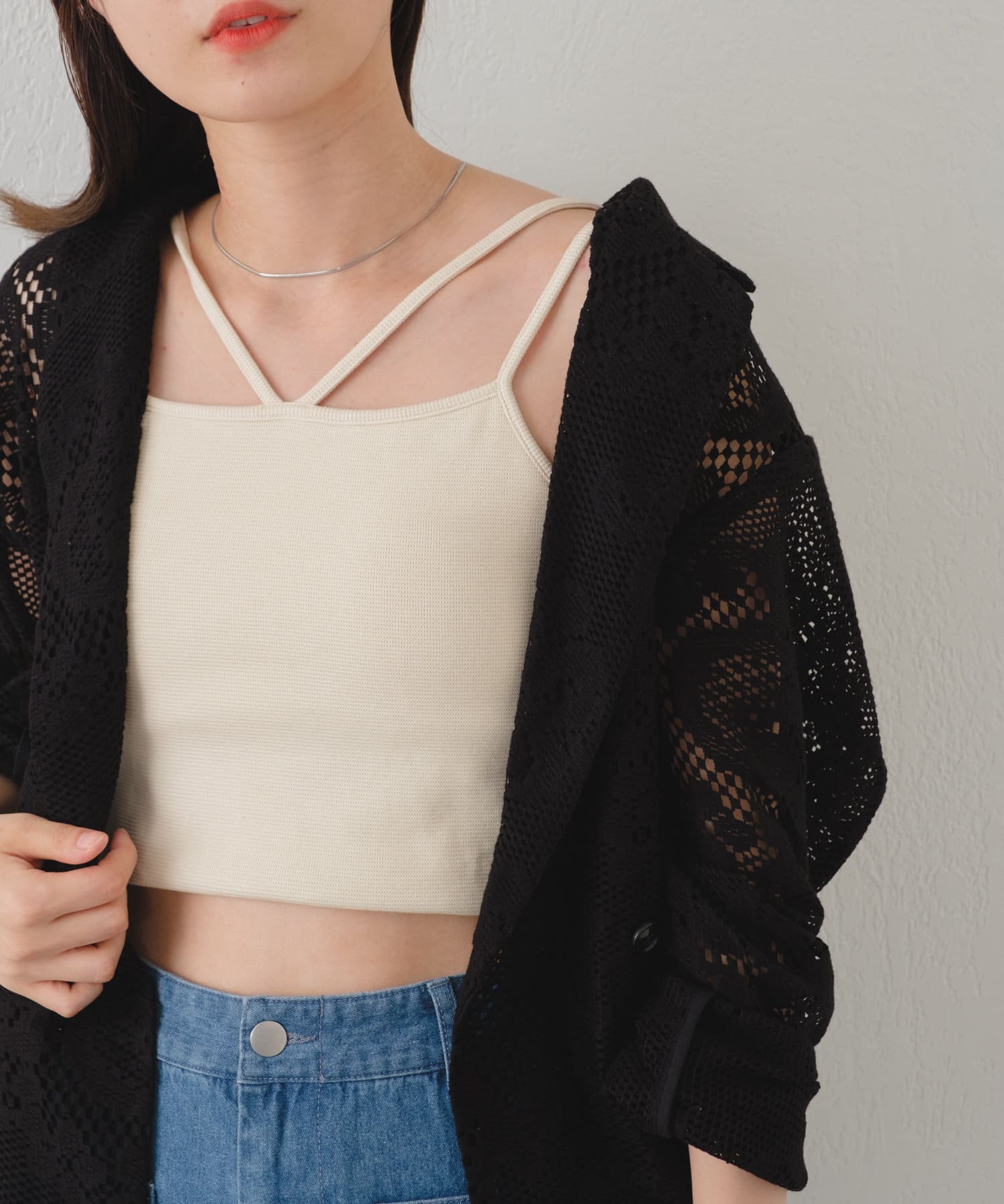 購入場所:店舗ネットで可愛いと思ってみていて、店舗で試着したら持っているキャミソールとも相性良くて、可愛かったので購入しました。