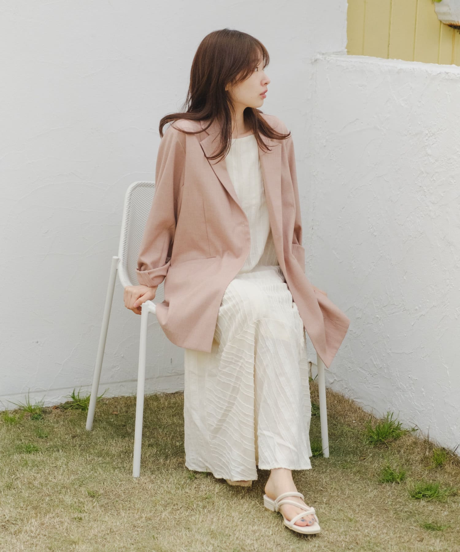 ほんのり透け感があり軽めの素材は、春から夏にかけて長く活躍する1着。