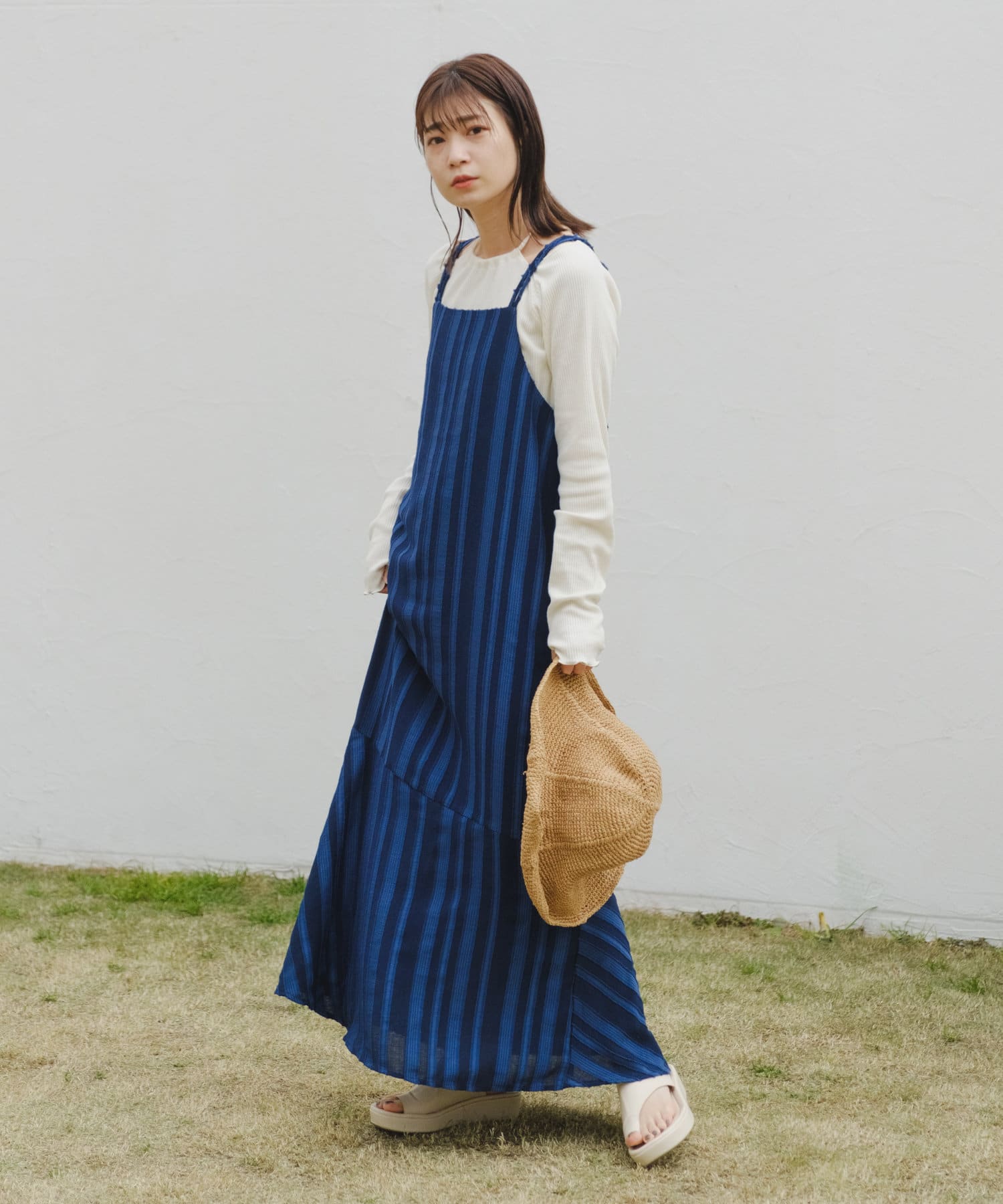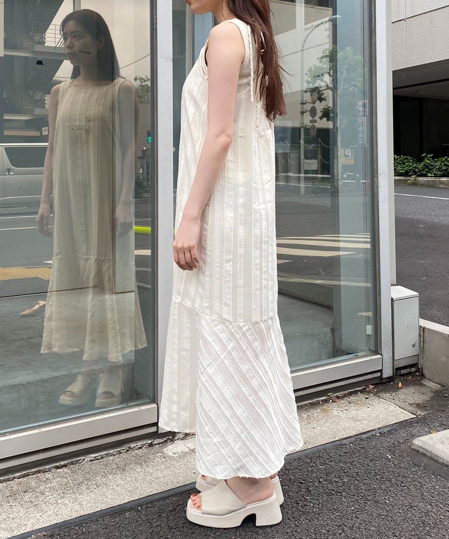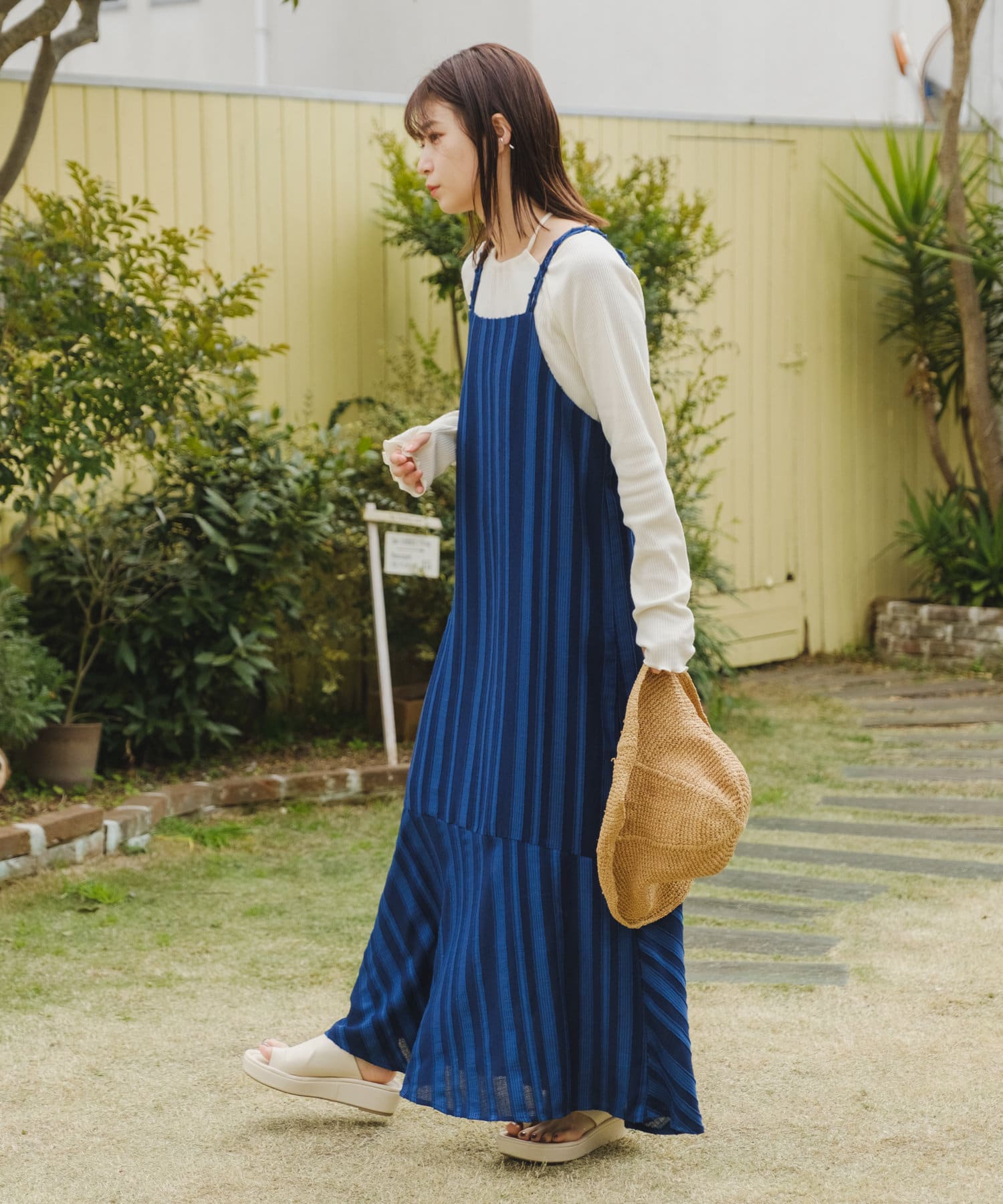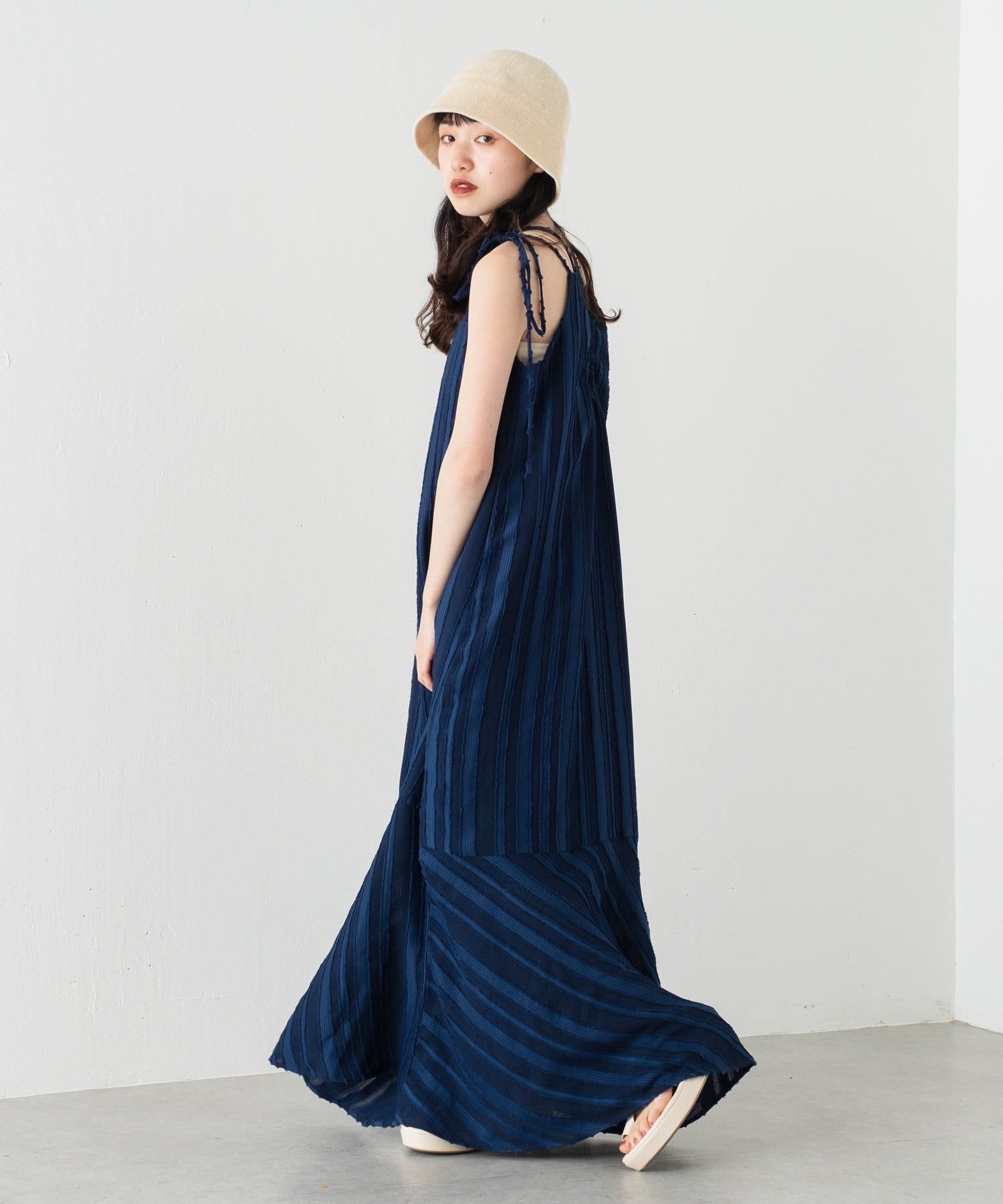 ストライプジャガードが涼し気なキャミワンピ―ス