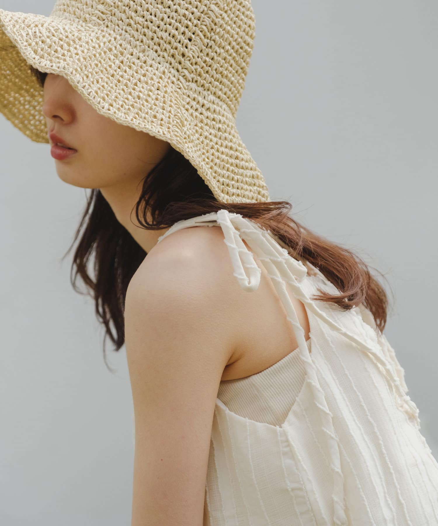 インナーをキャミソールやタンクトップにして、夏は1枚でヘルシーに着て頂くのがおすすめ。