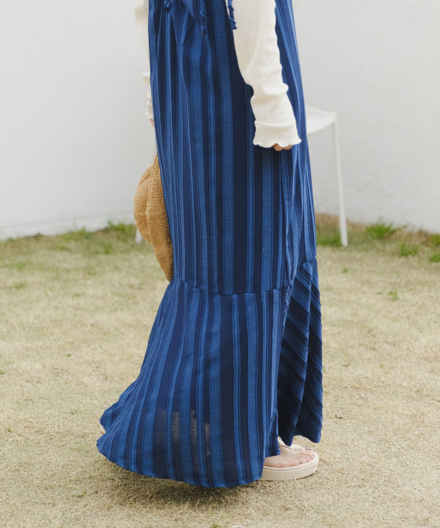 【サイズ展開あり】ストライプジャガードキャミワンピース