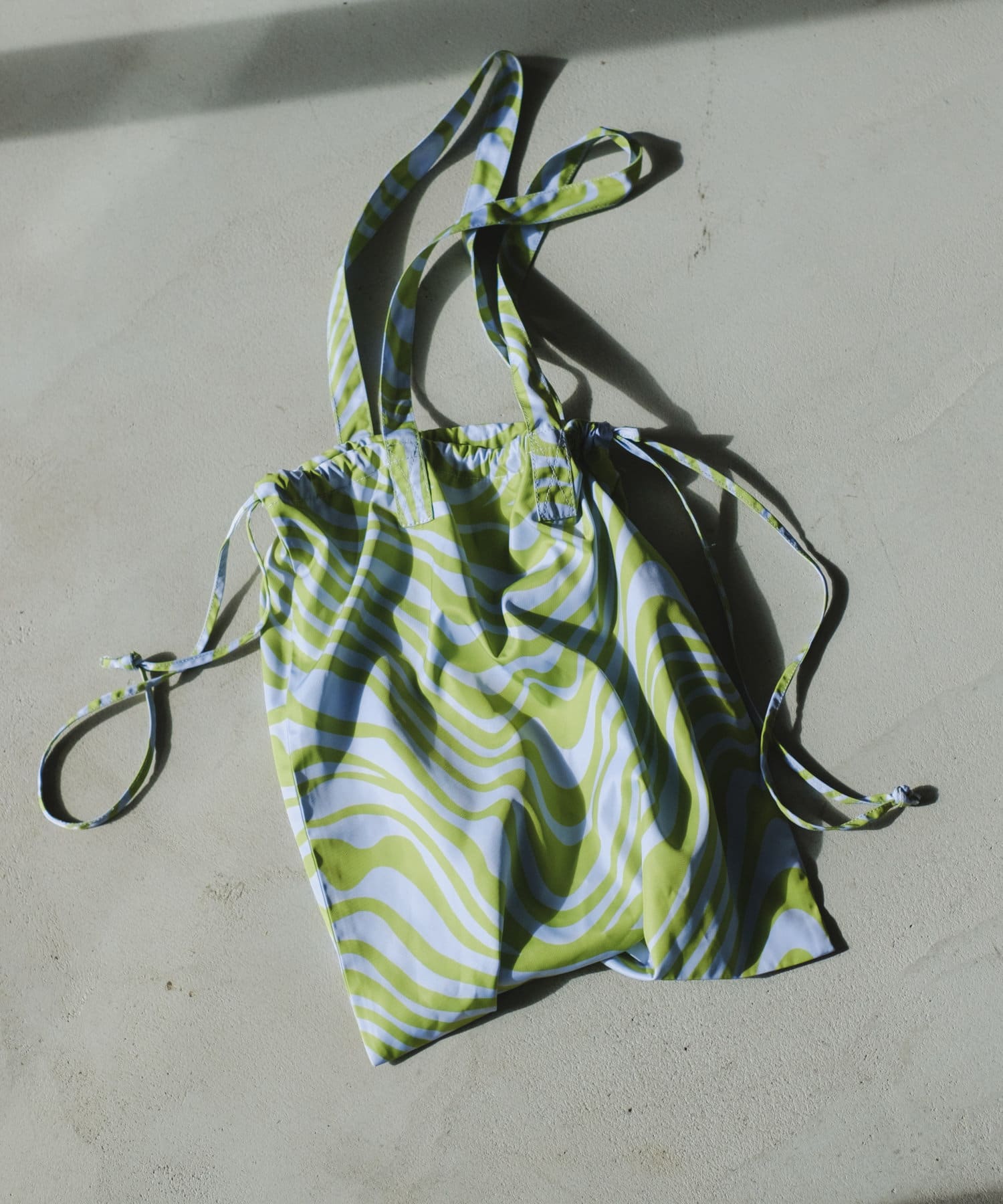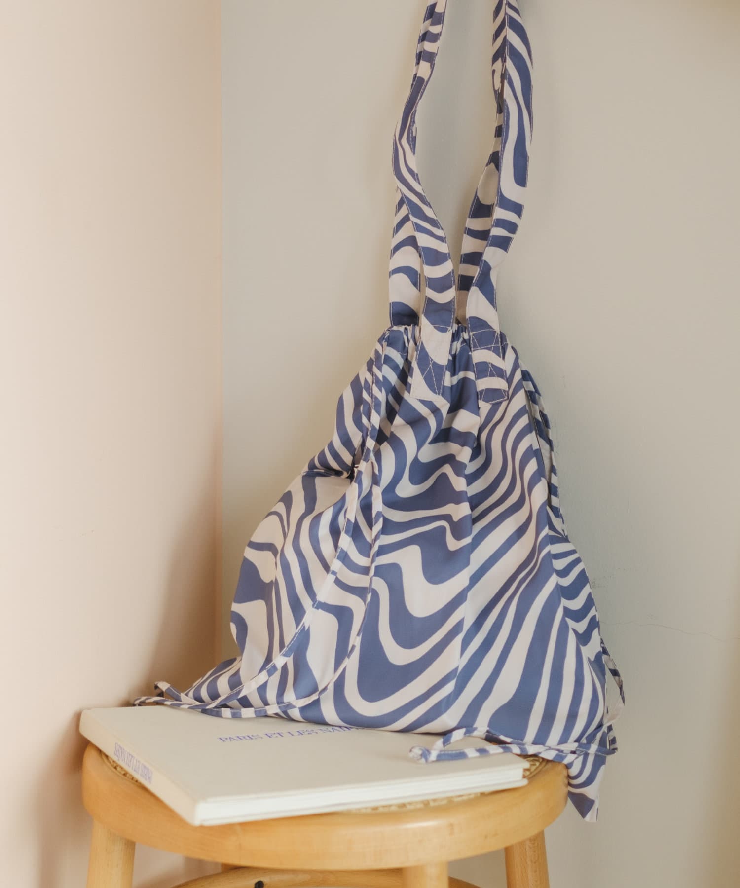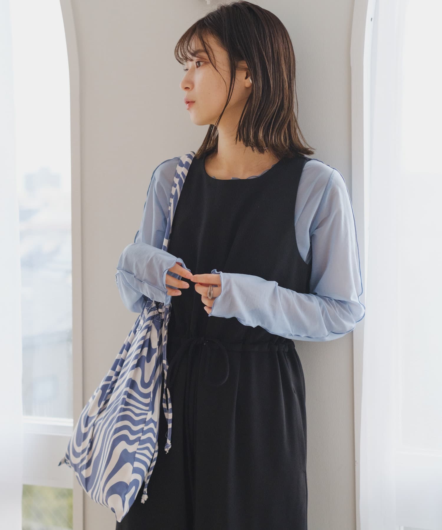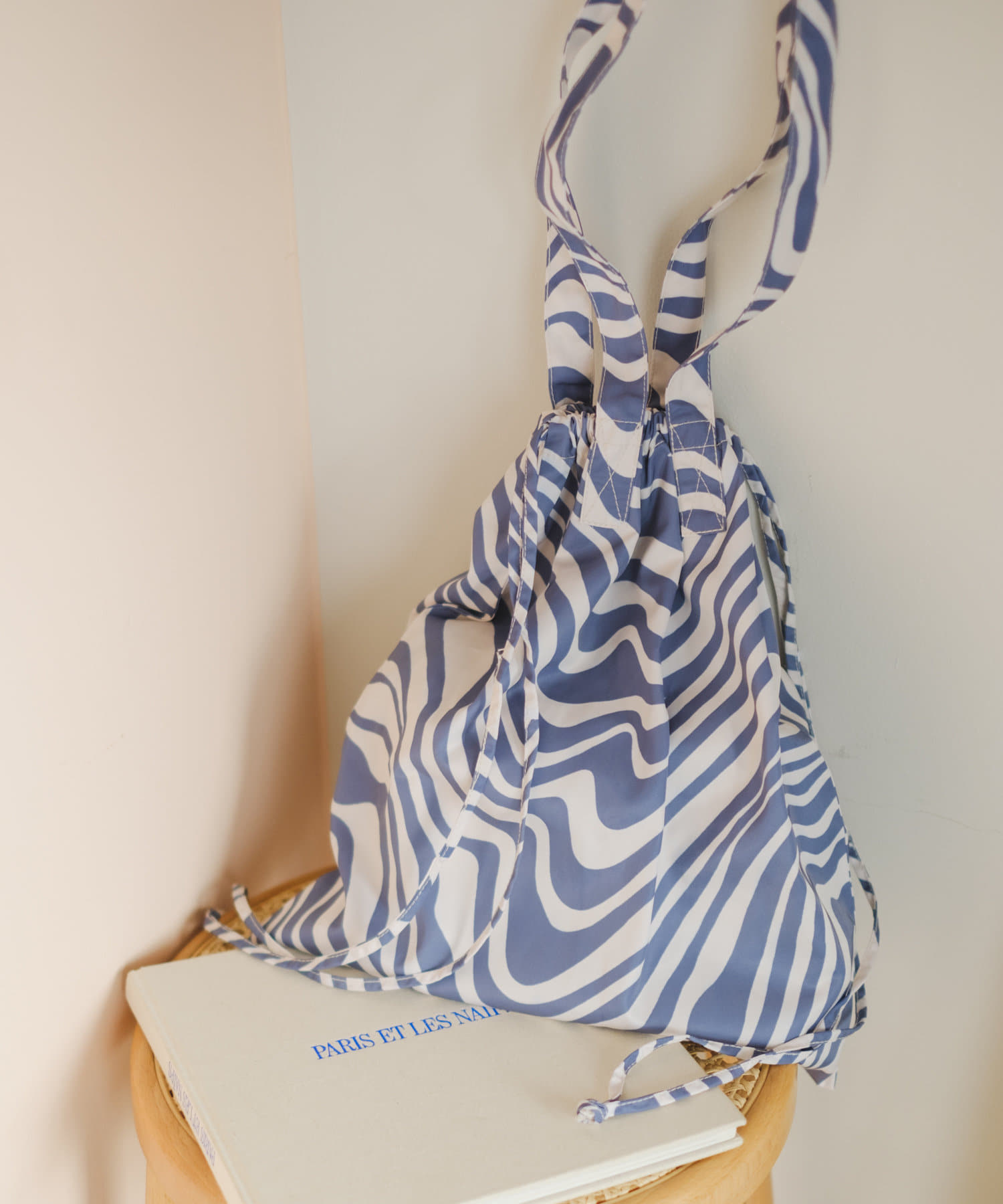 バックの口は巾着型で中身が見えないのも嬉しいポイント。