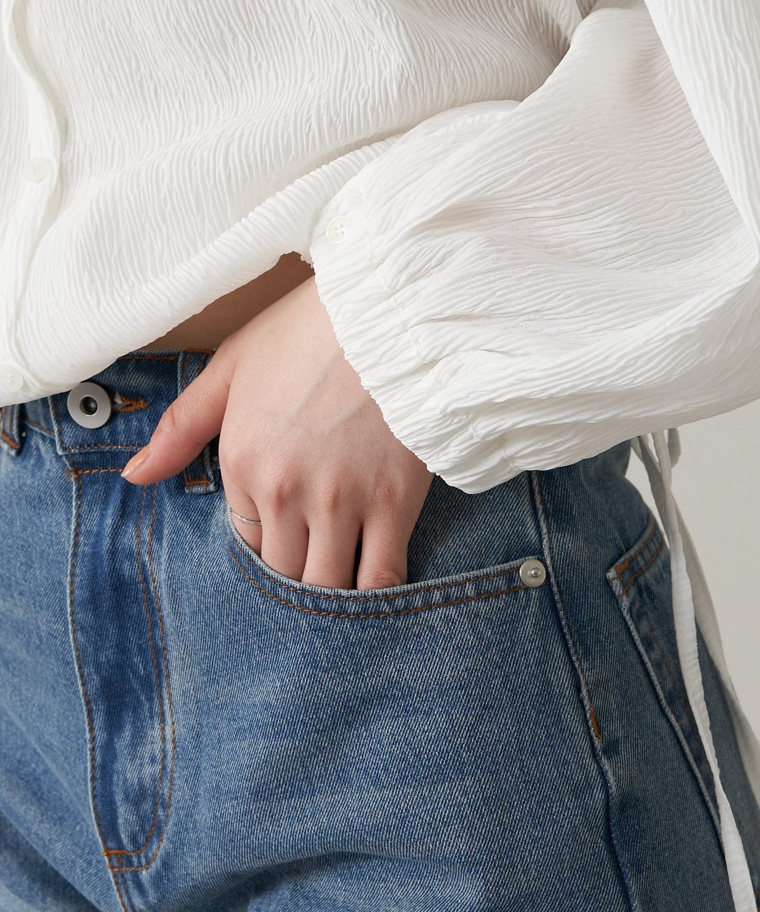 ※デニム生地は摩擦や水、洗濯で色落ちする可能性がございます。お取り扱いにはご注意ください。