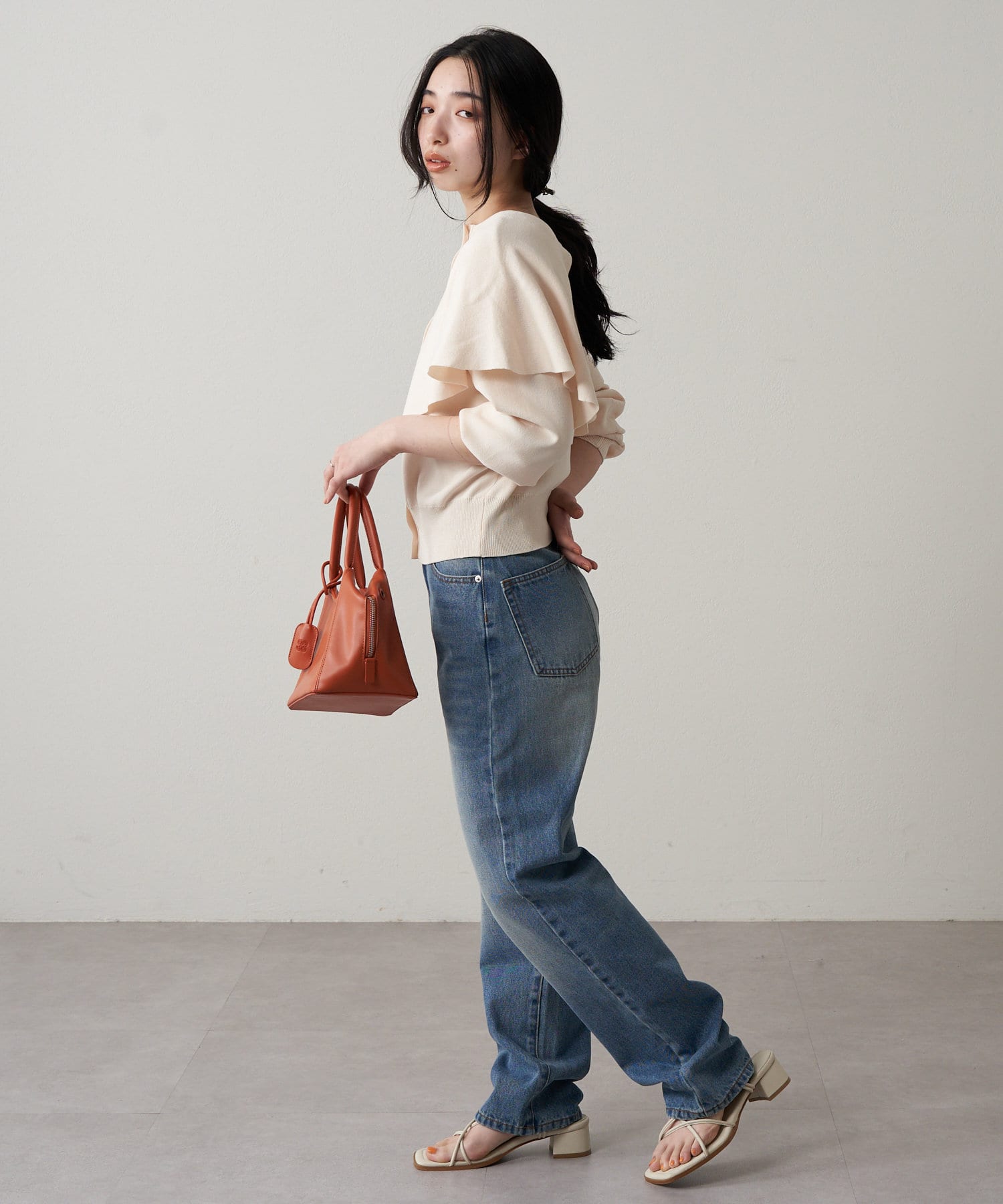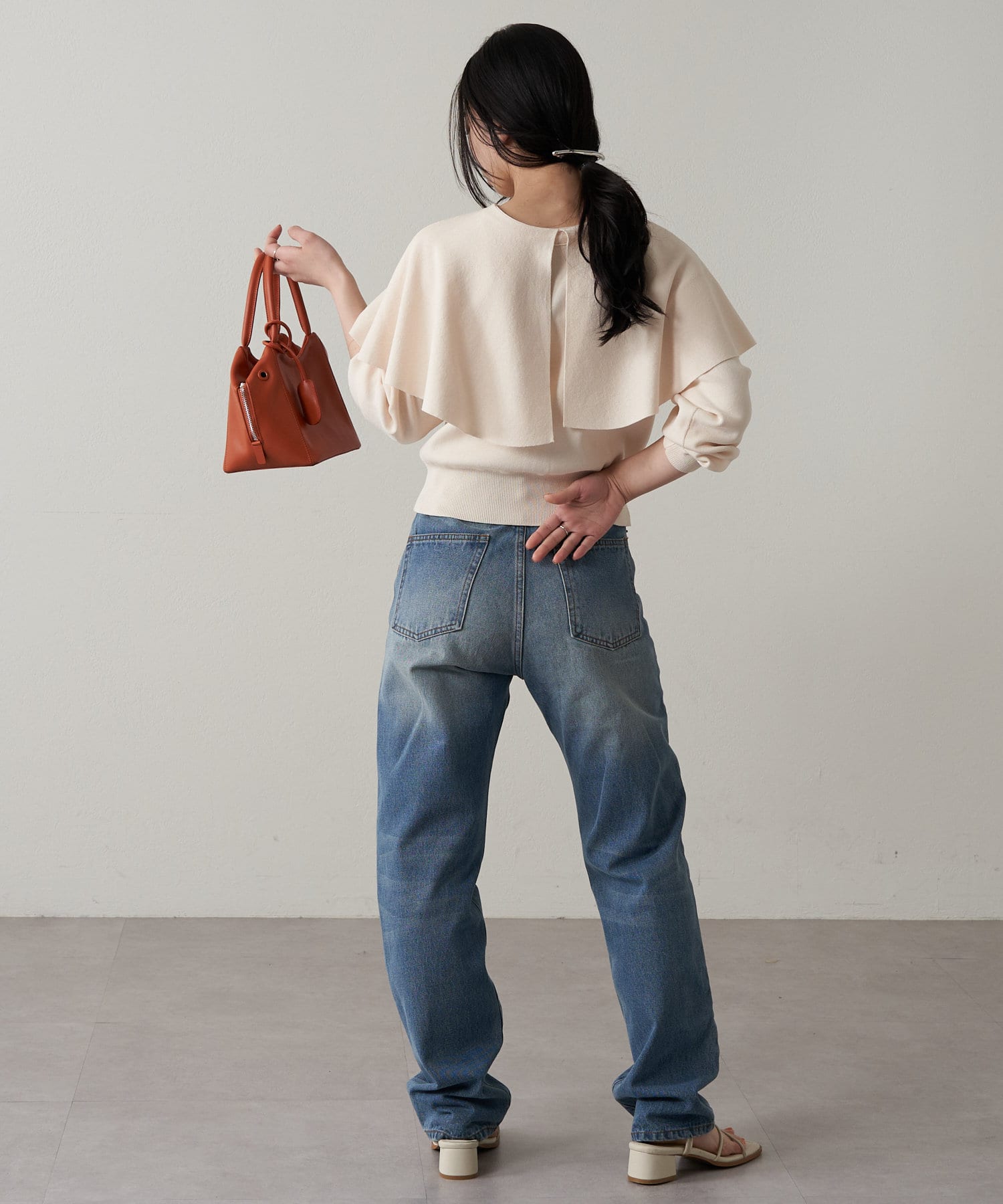 大きめのフラップがアクセントなので、ベーシックなボトムを合わせるだけで決まります。