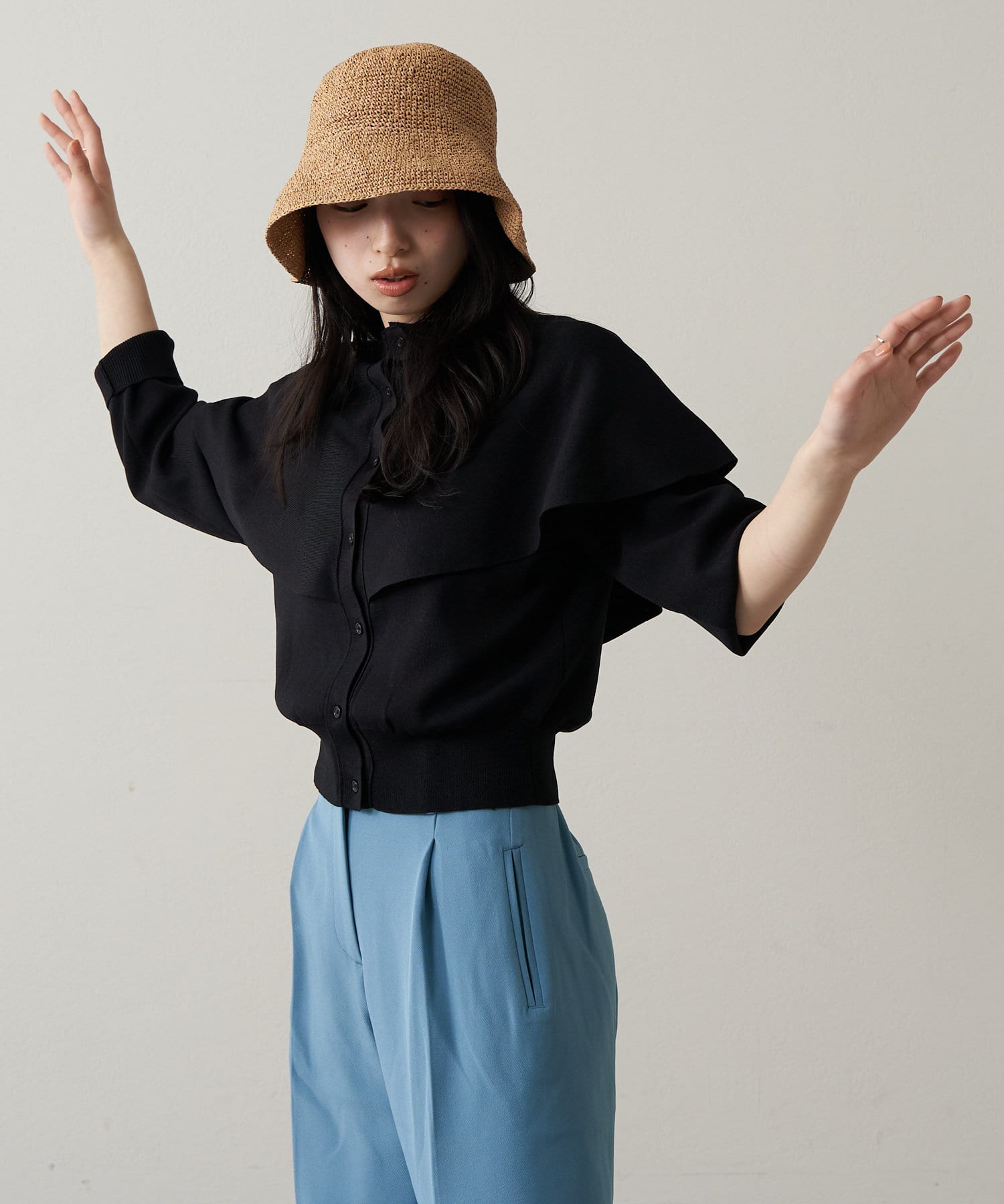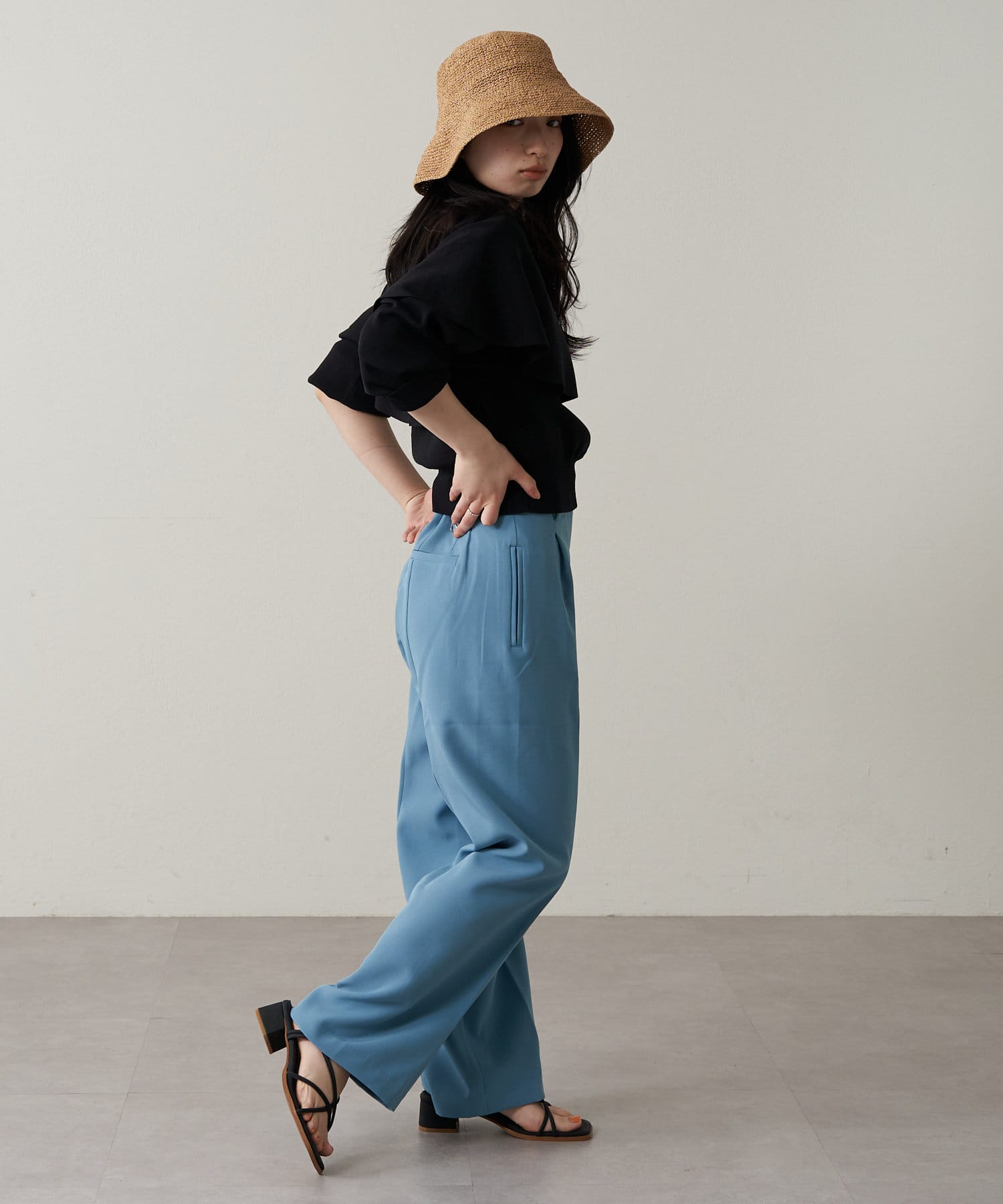 落ち感のあるフリルなので大人でも着やすい女性らしいアイテムです。