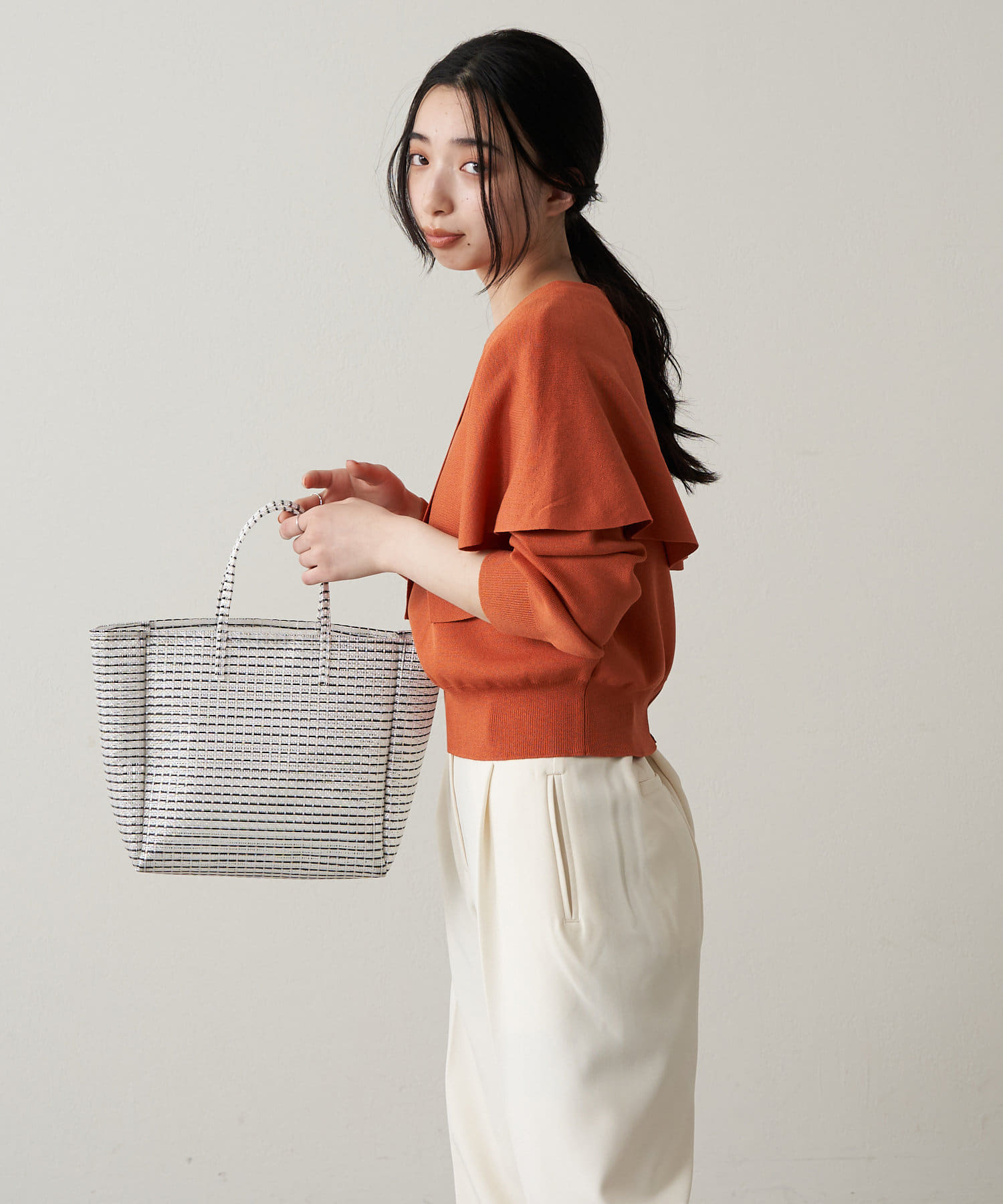 合わせやすいホワイト、ブラックとコーディネートのアクセントになるオレンジの3色展開です。