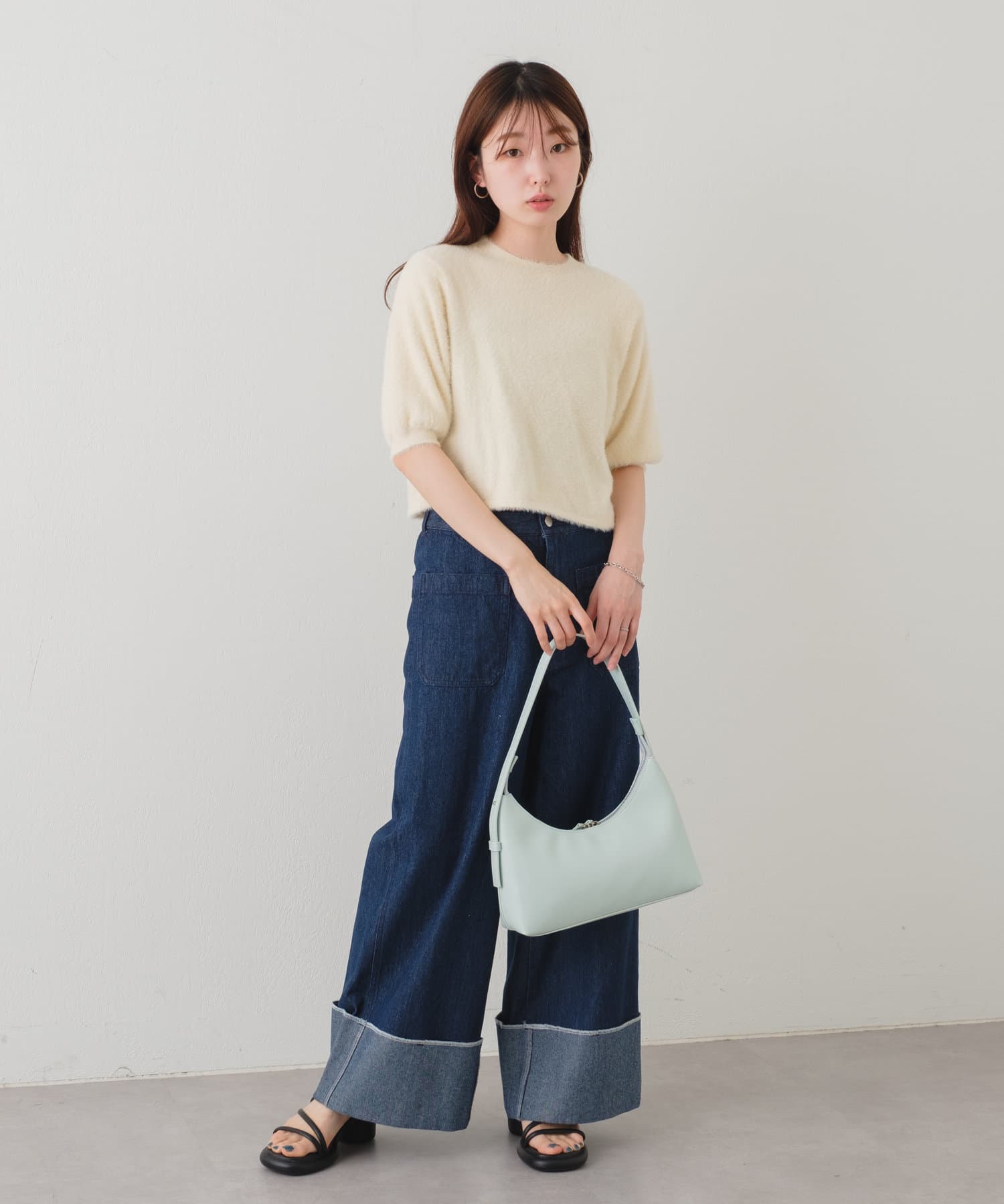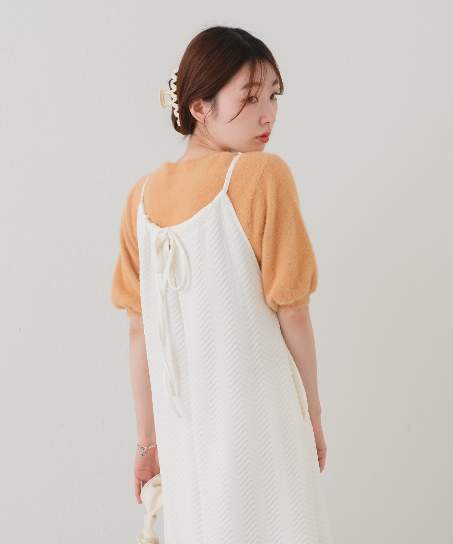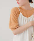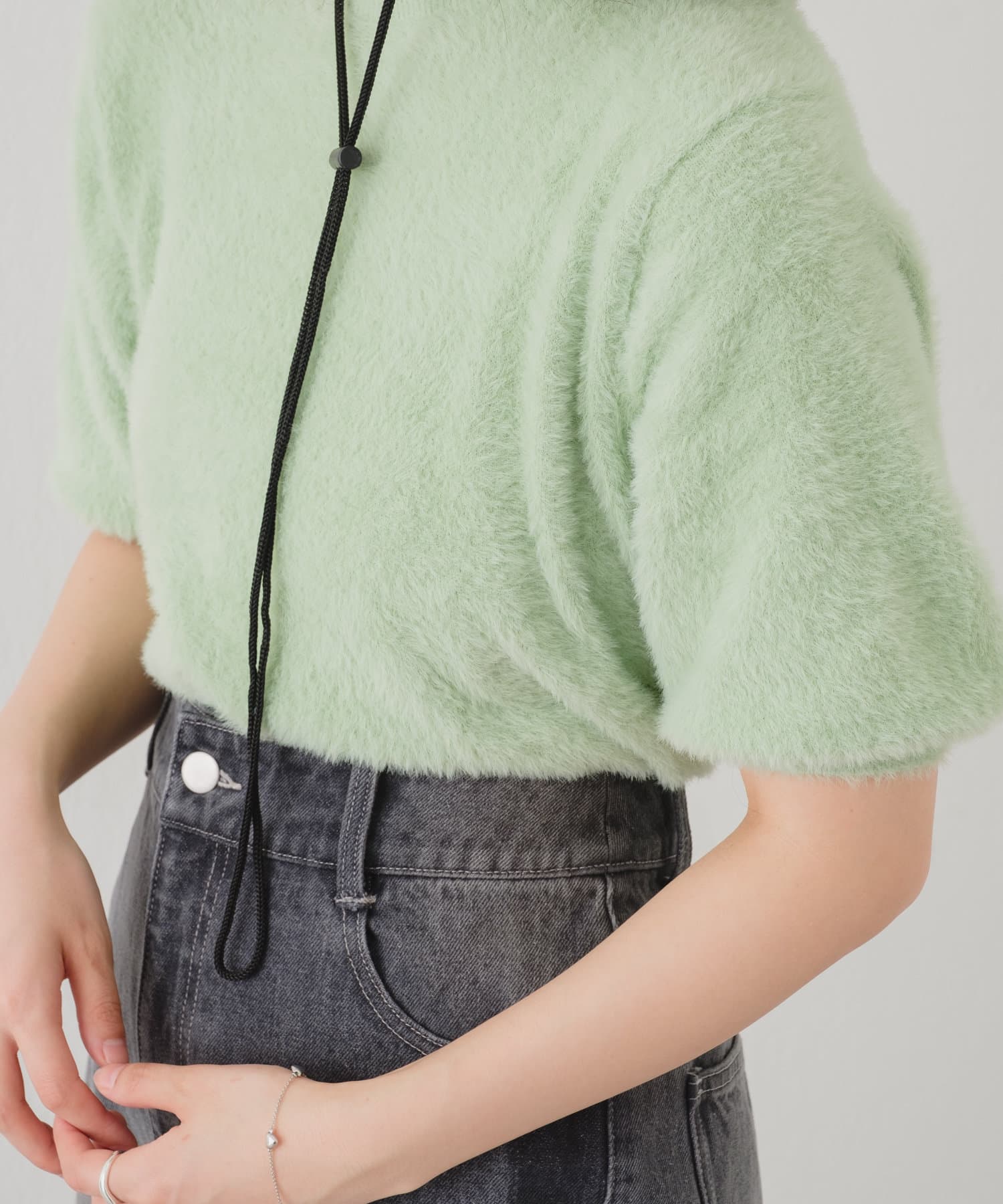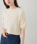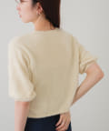 フェザー素材とパフスリーブが女性らしい半袖ニット