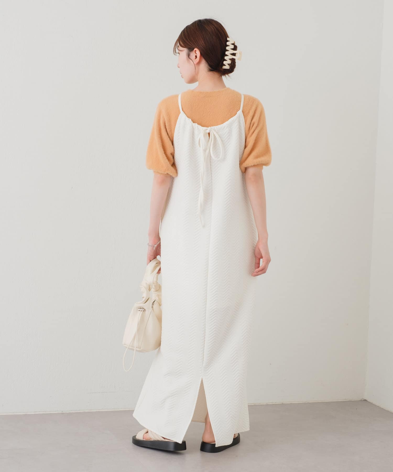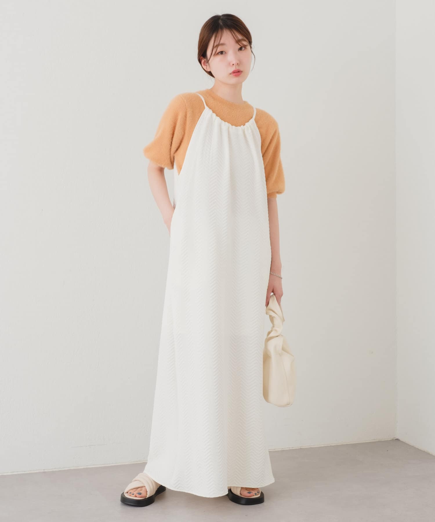 気になる二の腕をカバーしつつ、コンパクトなシルエットで華奢見えを叶えます。