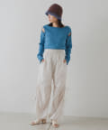 スリットで抜け感がでるので、デニムやハイウェストのパンツ・ボリュームスカートなどでインスタイルで合わせるのがおすすめ。