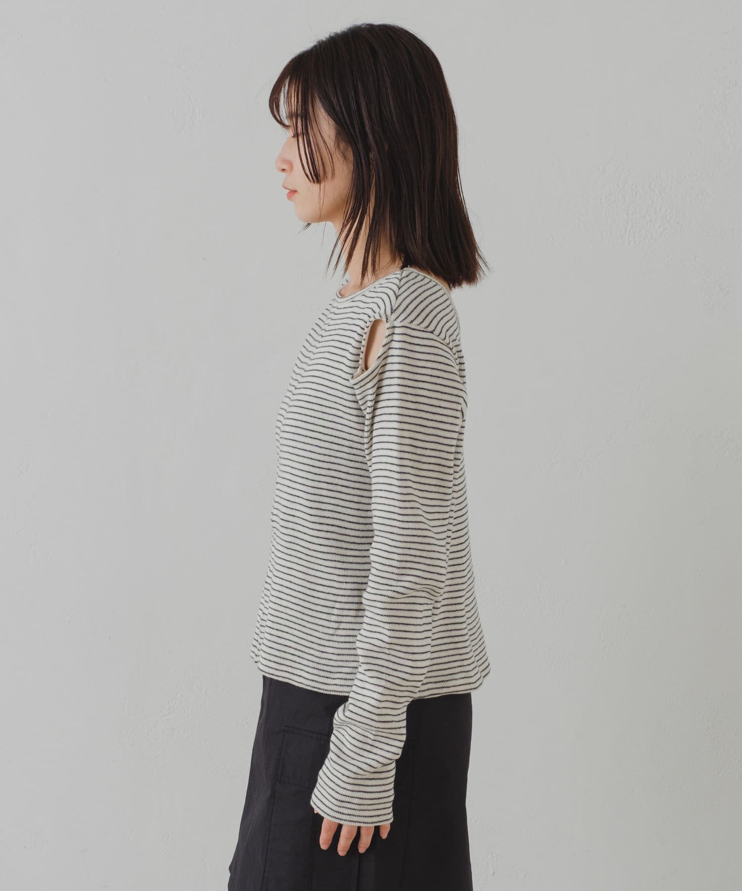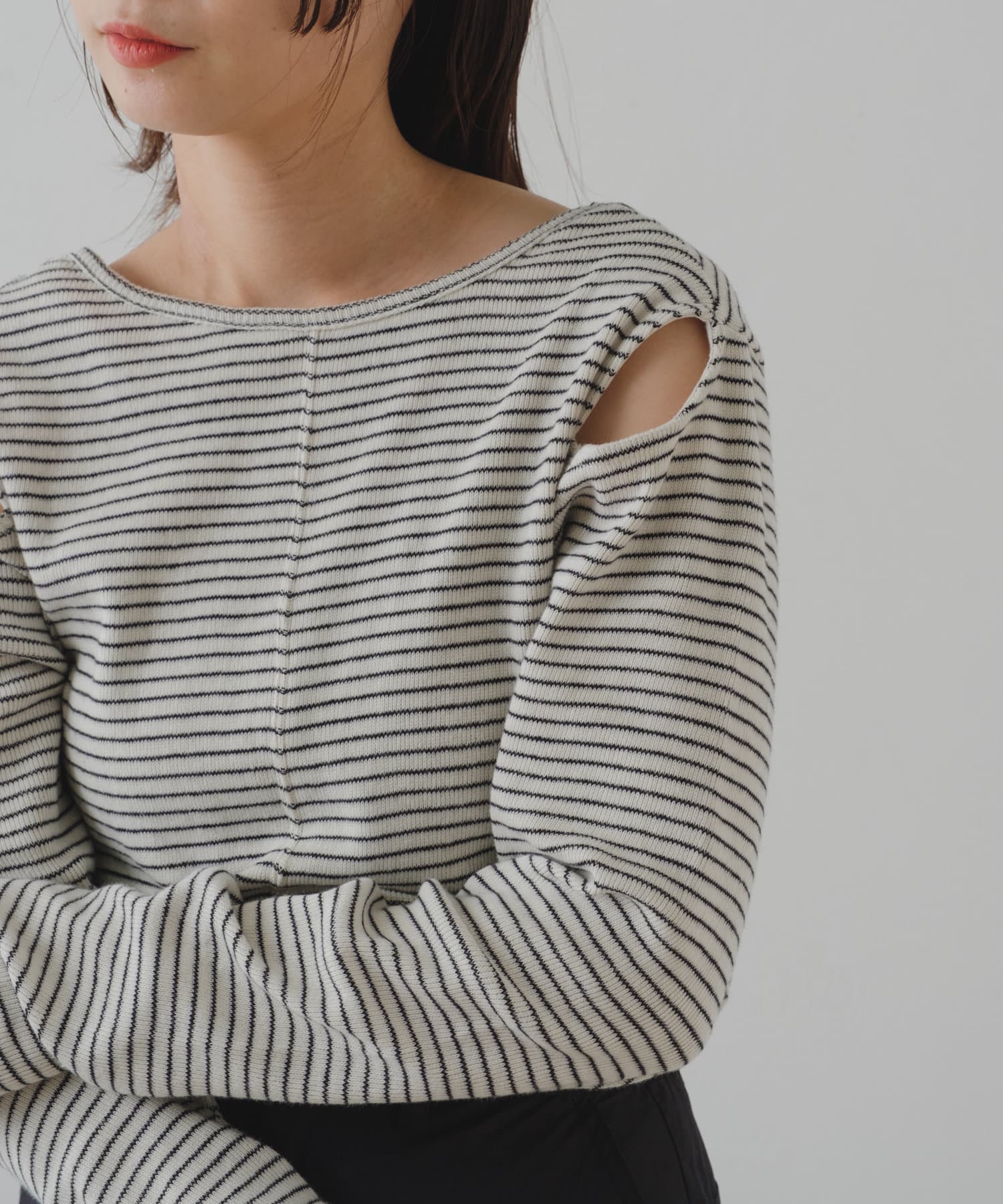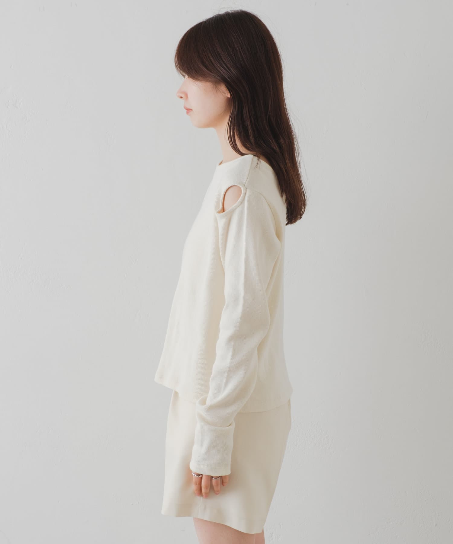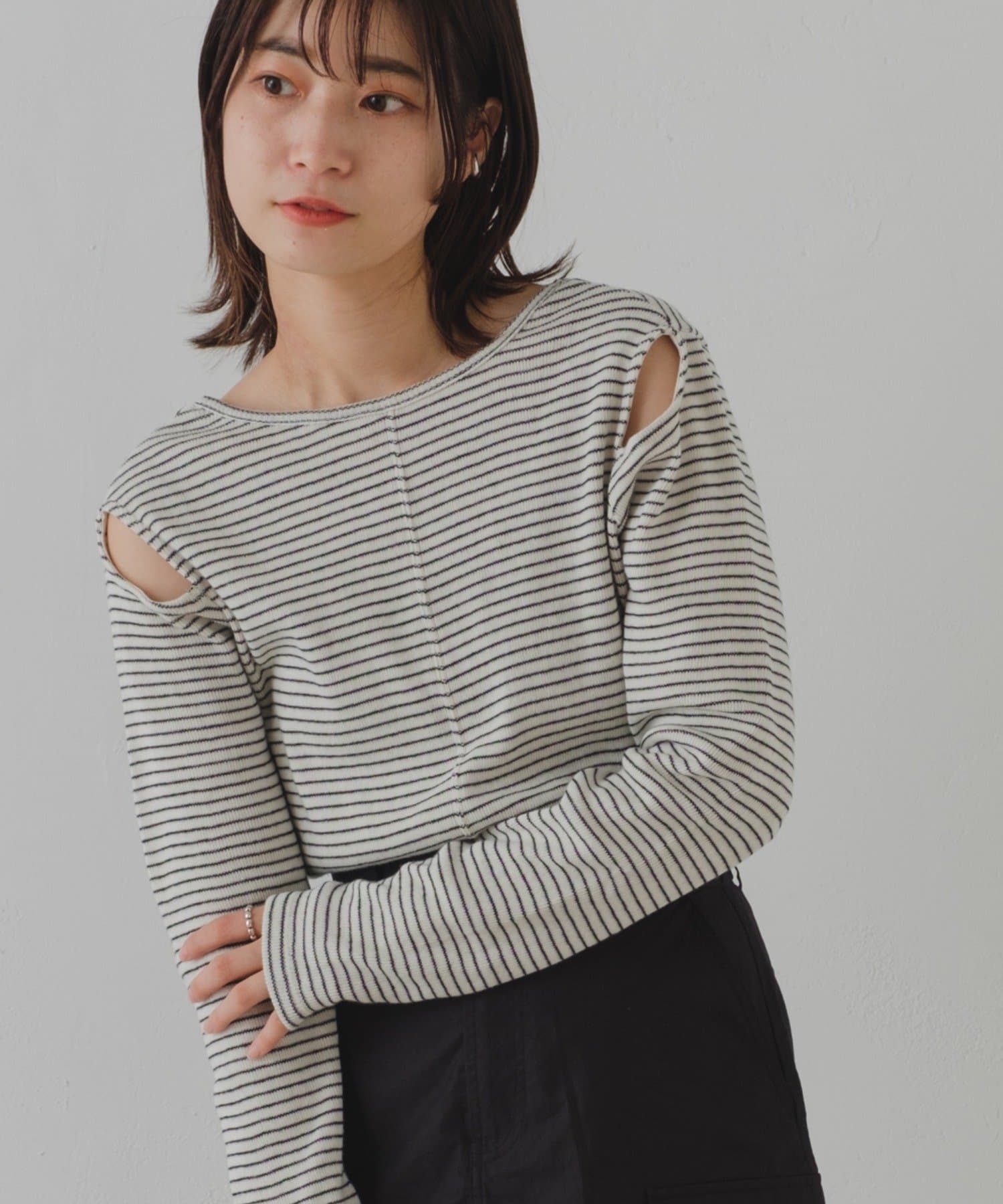 さりげないスリットがポイントになるカットソーが登場