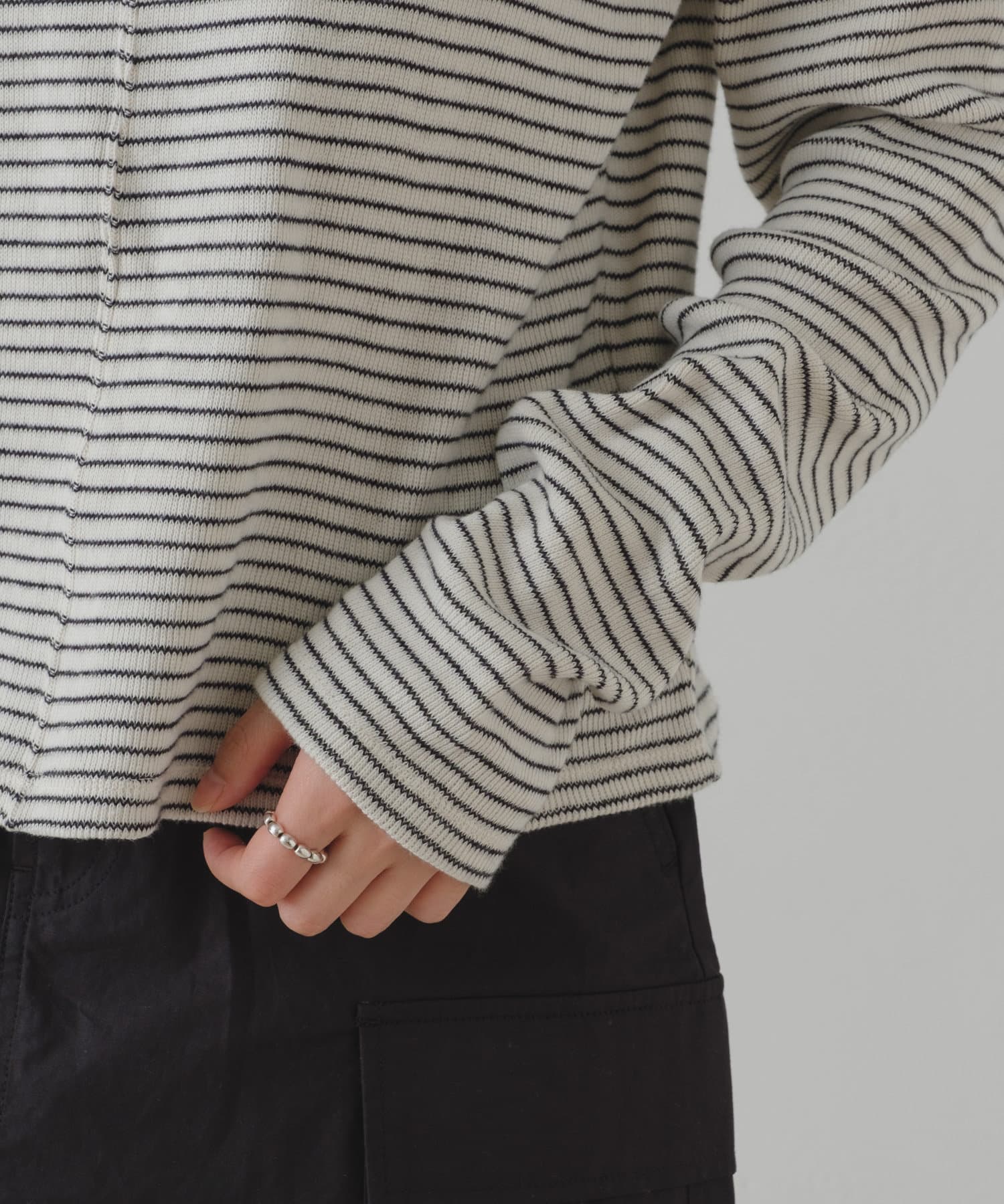 コーディネートのベースとなるシンプルなTシャツから、トレンドライクなハイネックデザインが登場。着心地のよさにもこだわり、柔らかな風合いのレーヨンコットン素材を使用しました。メインとしてはもちろん、インナーレイヤードにもおすすめ。着回しに役立つボーダー柄をご用意しました★