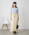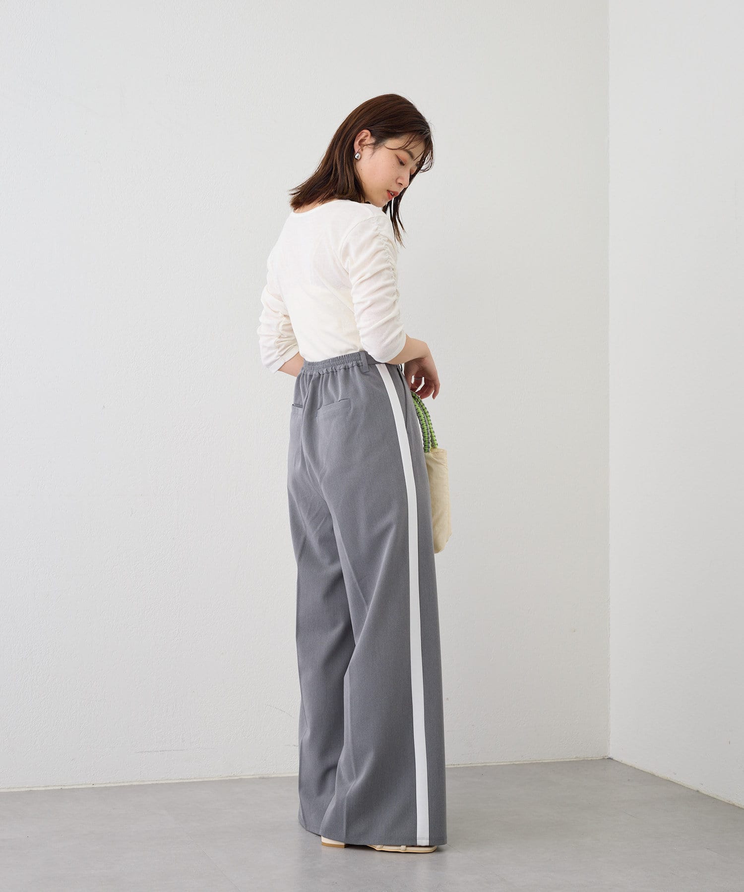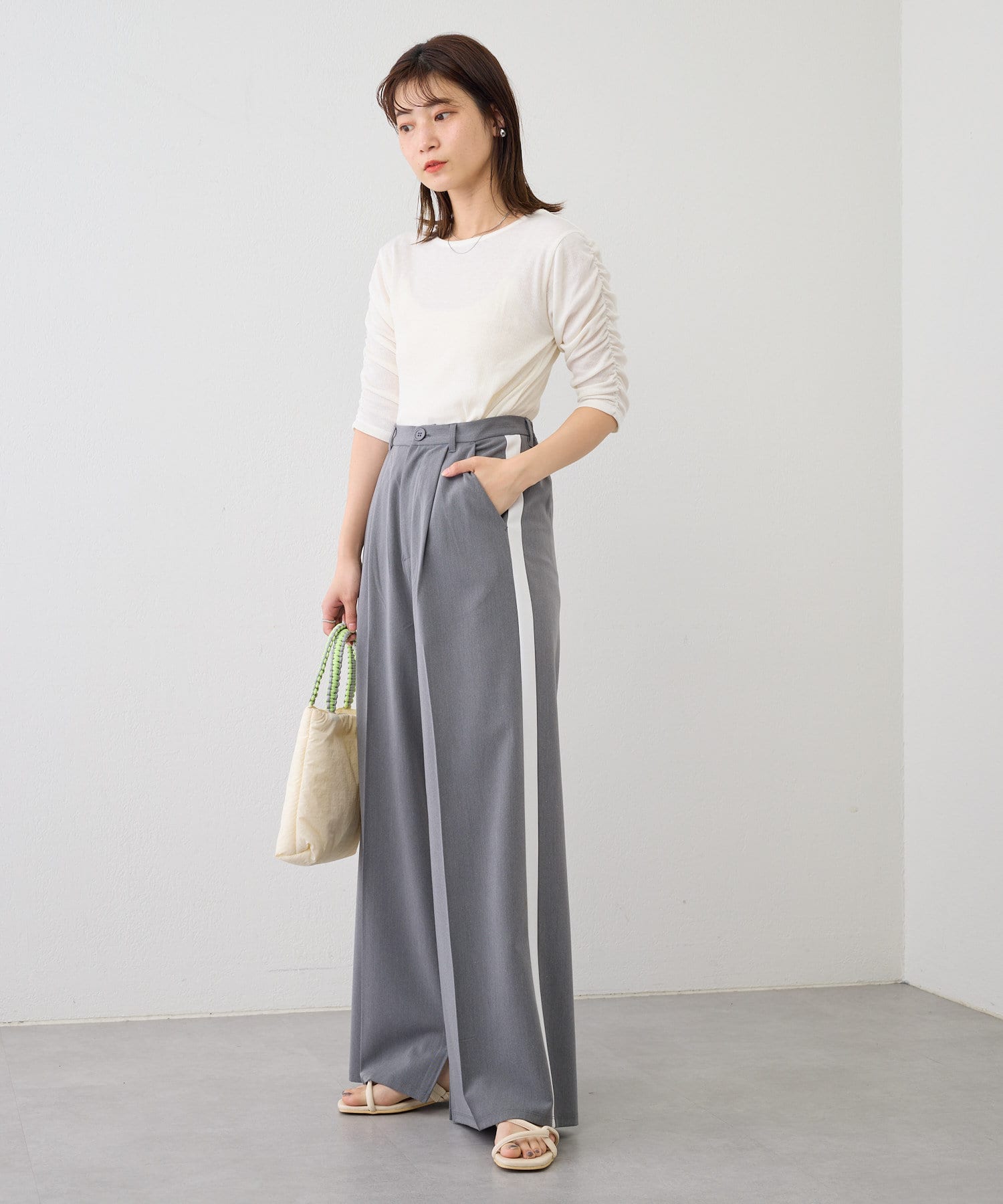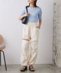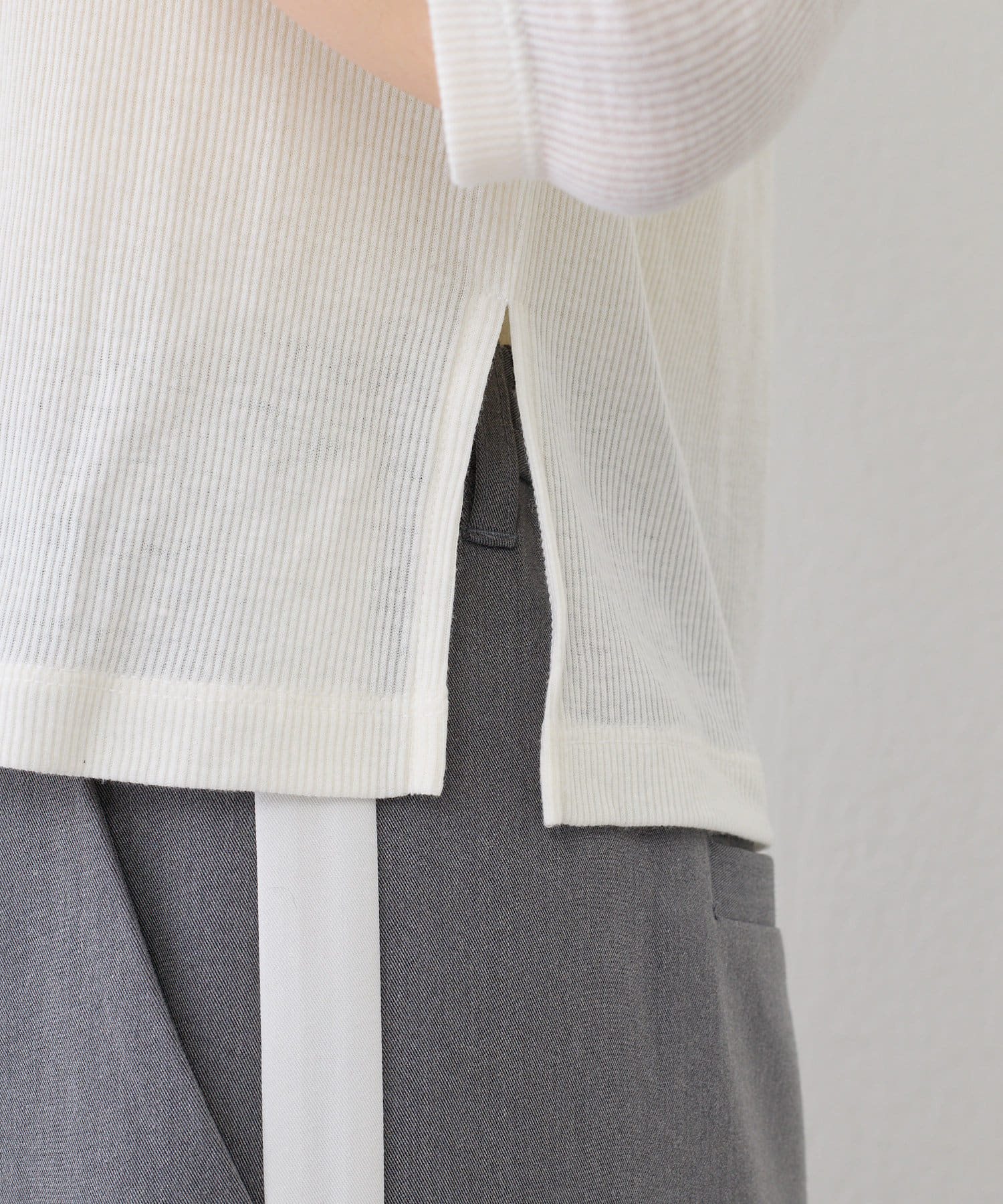 サイドに入った深めのスリットがスッキリとした印象にしてくれるので、トレンドのボトム合わせも相性抜群。