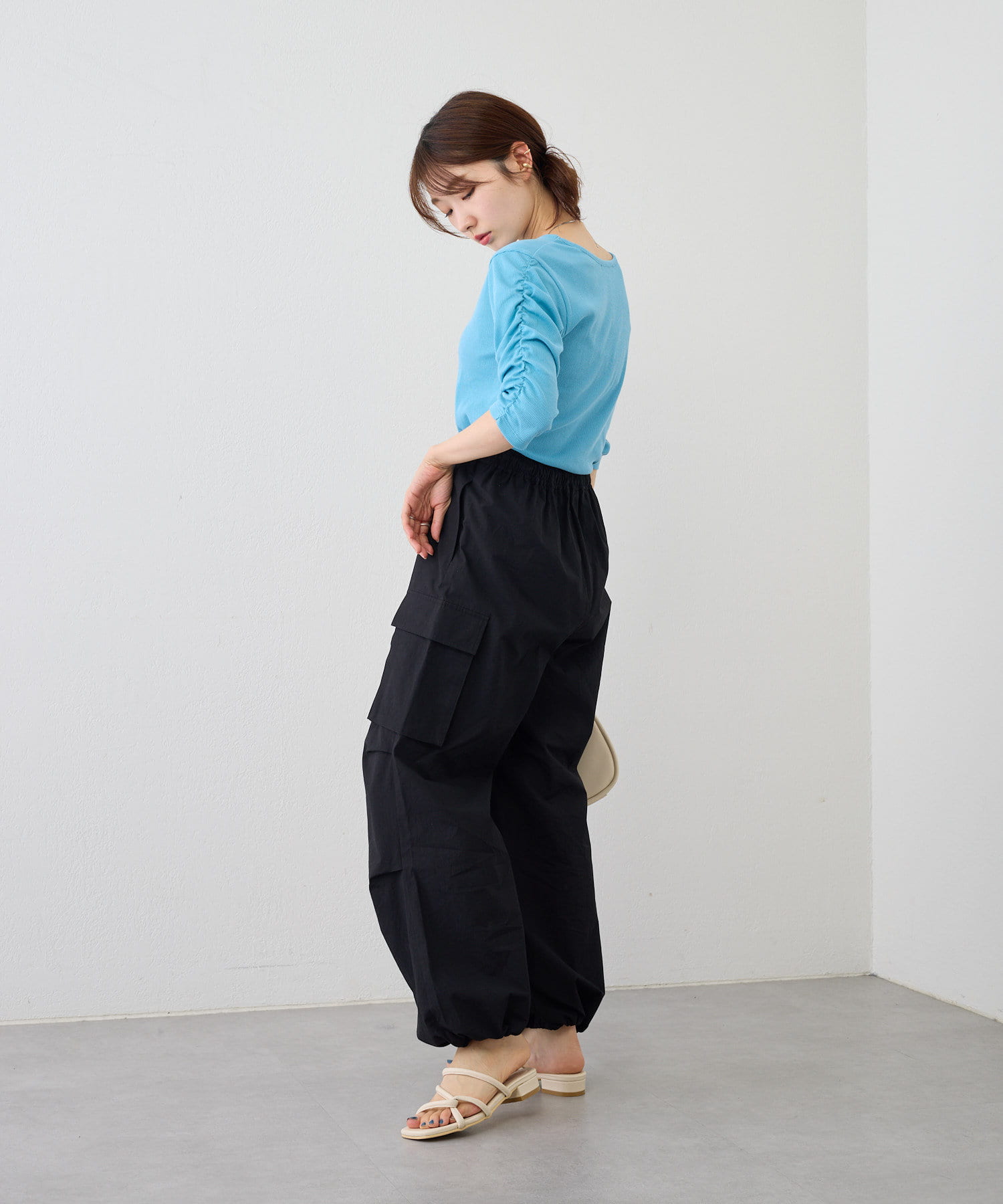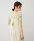 肘まである五分袖とギャザーデザインが、二の腕をカバーしてくれます。
