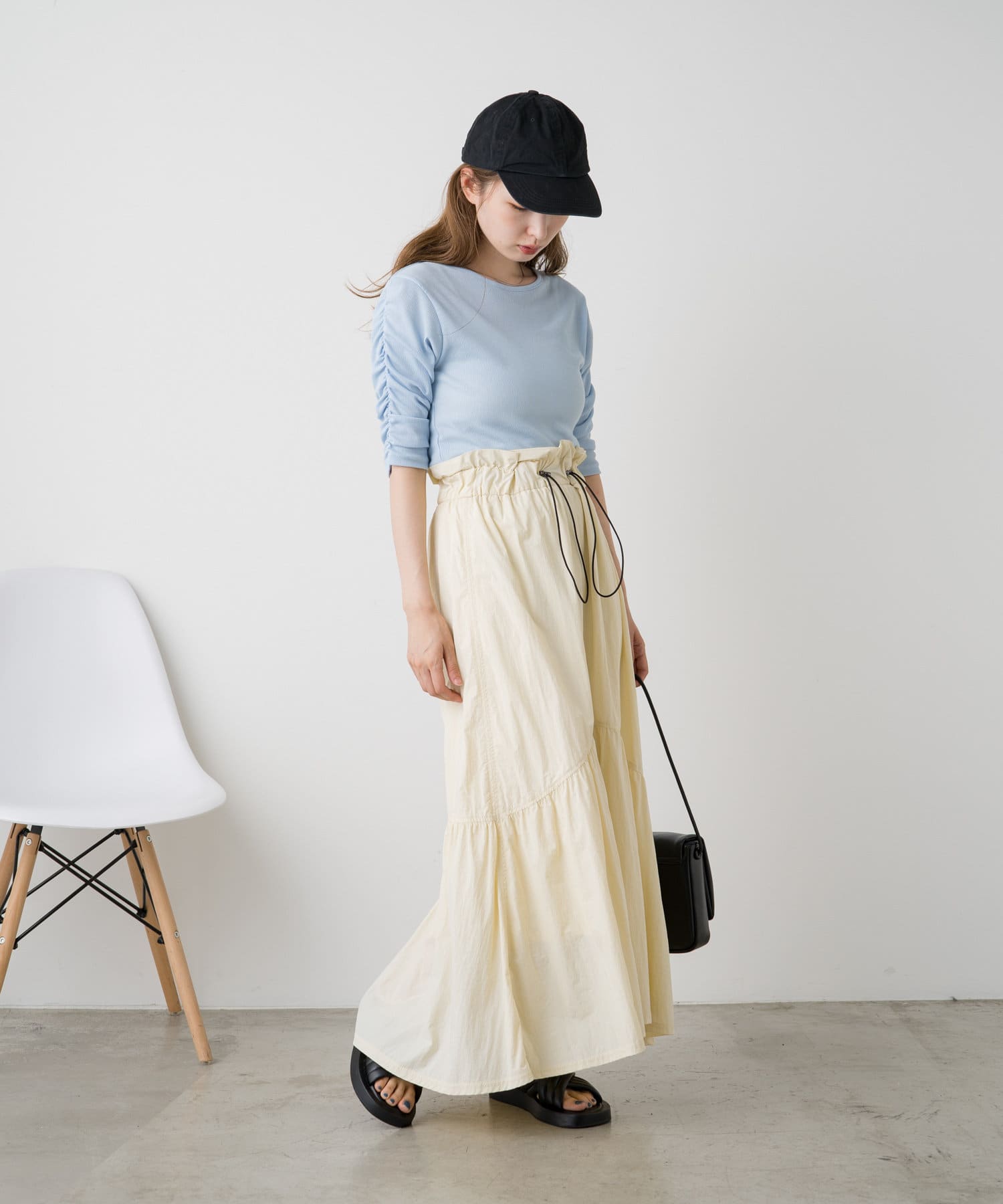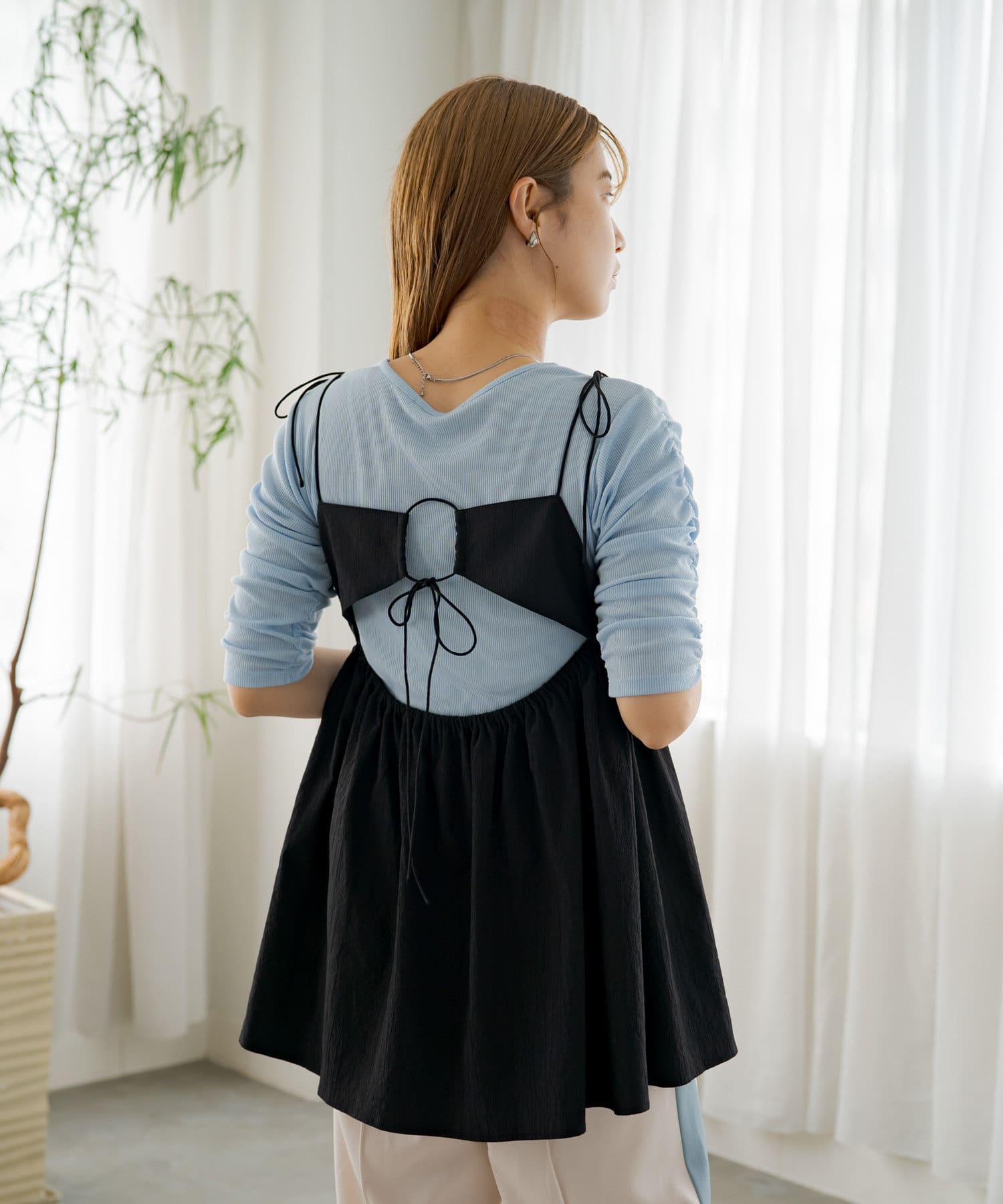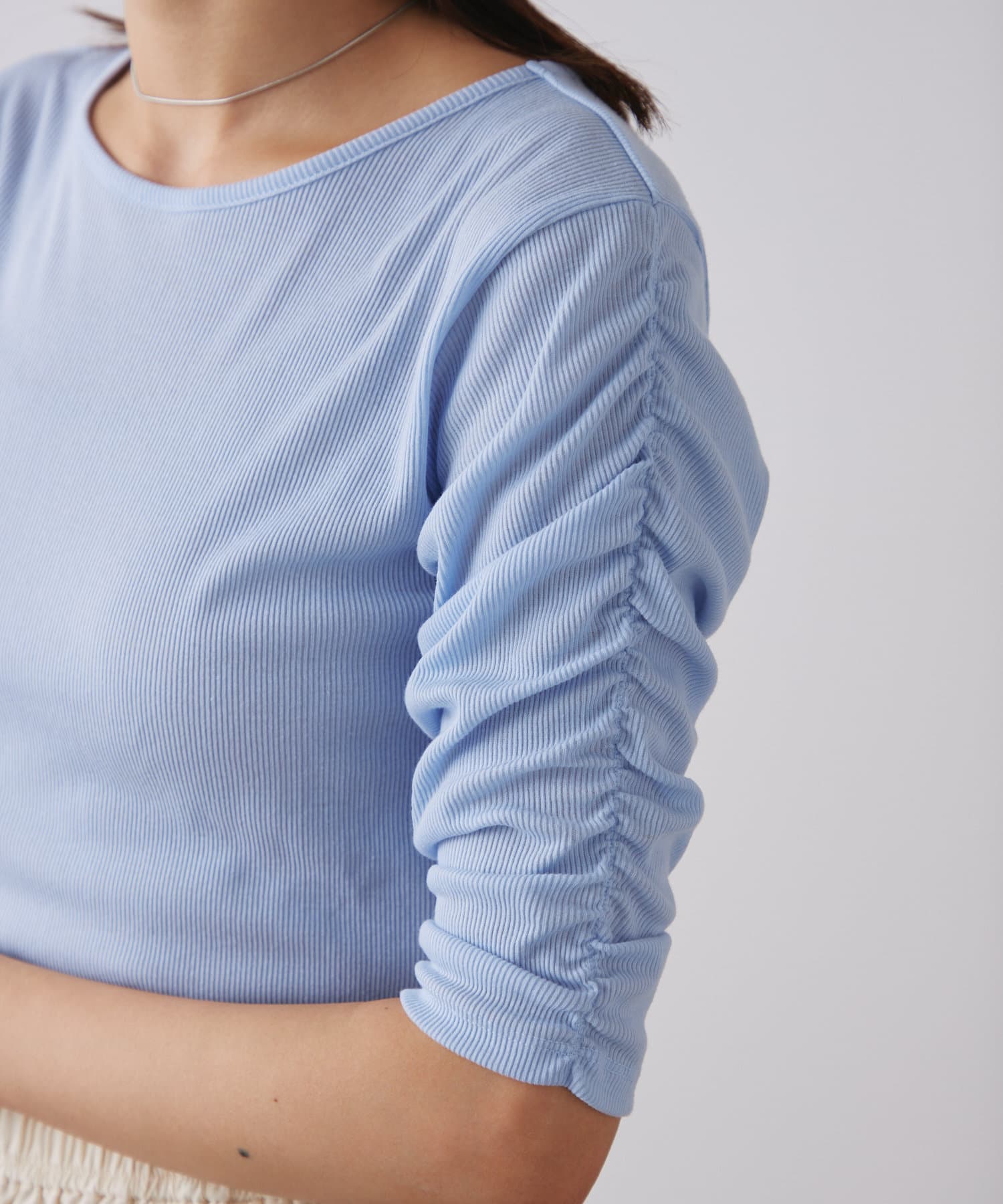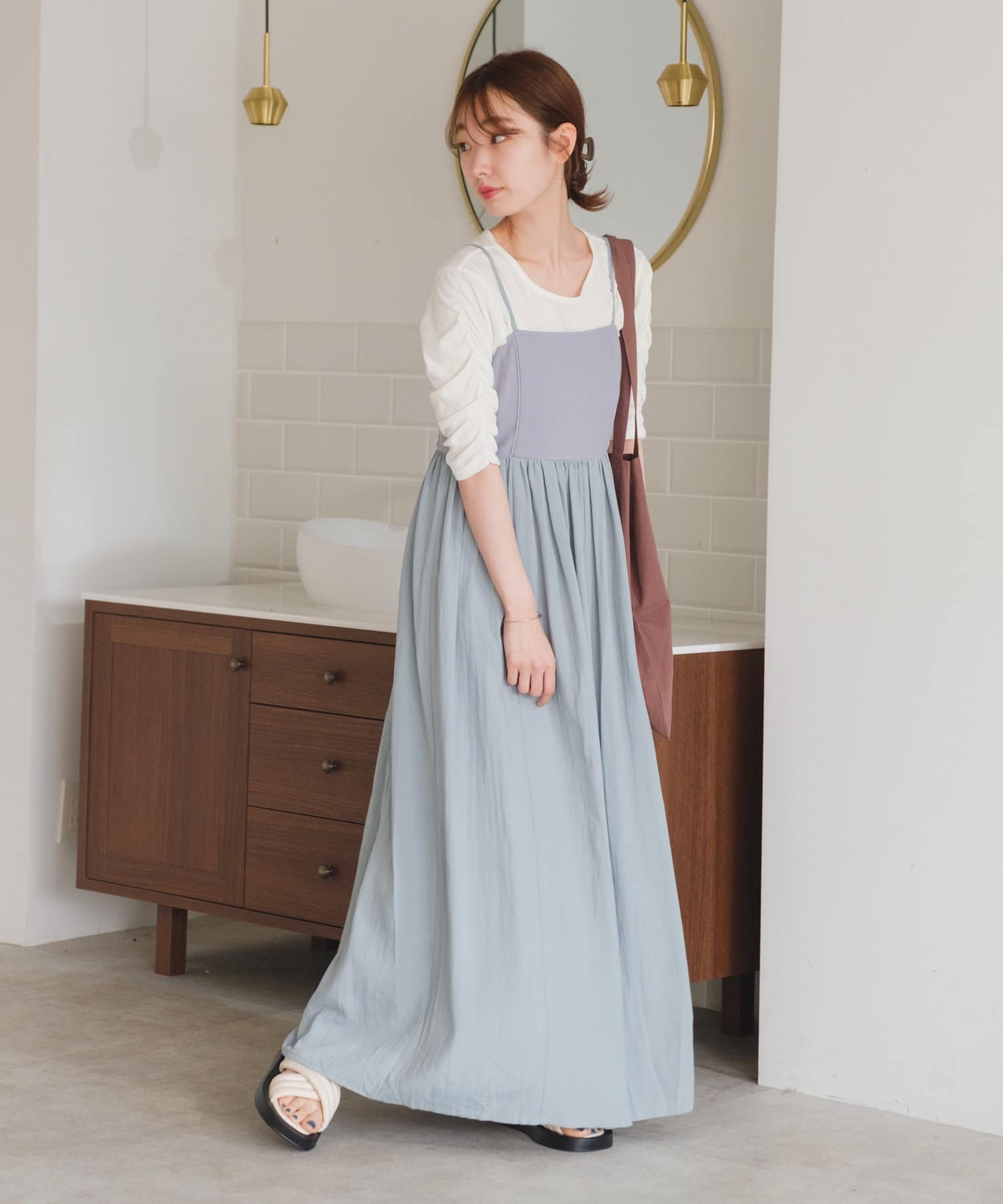 袖シャーリングを活かして主役級トップスとしても、キャミワンピースのインナーとしても使える万能アイテム。
