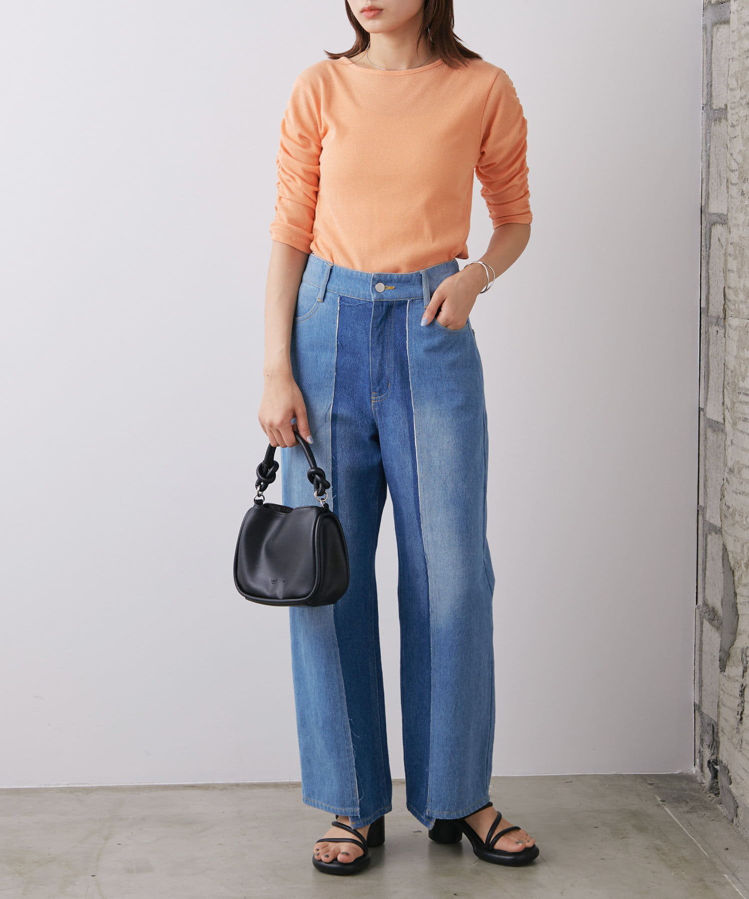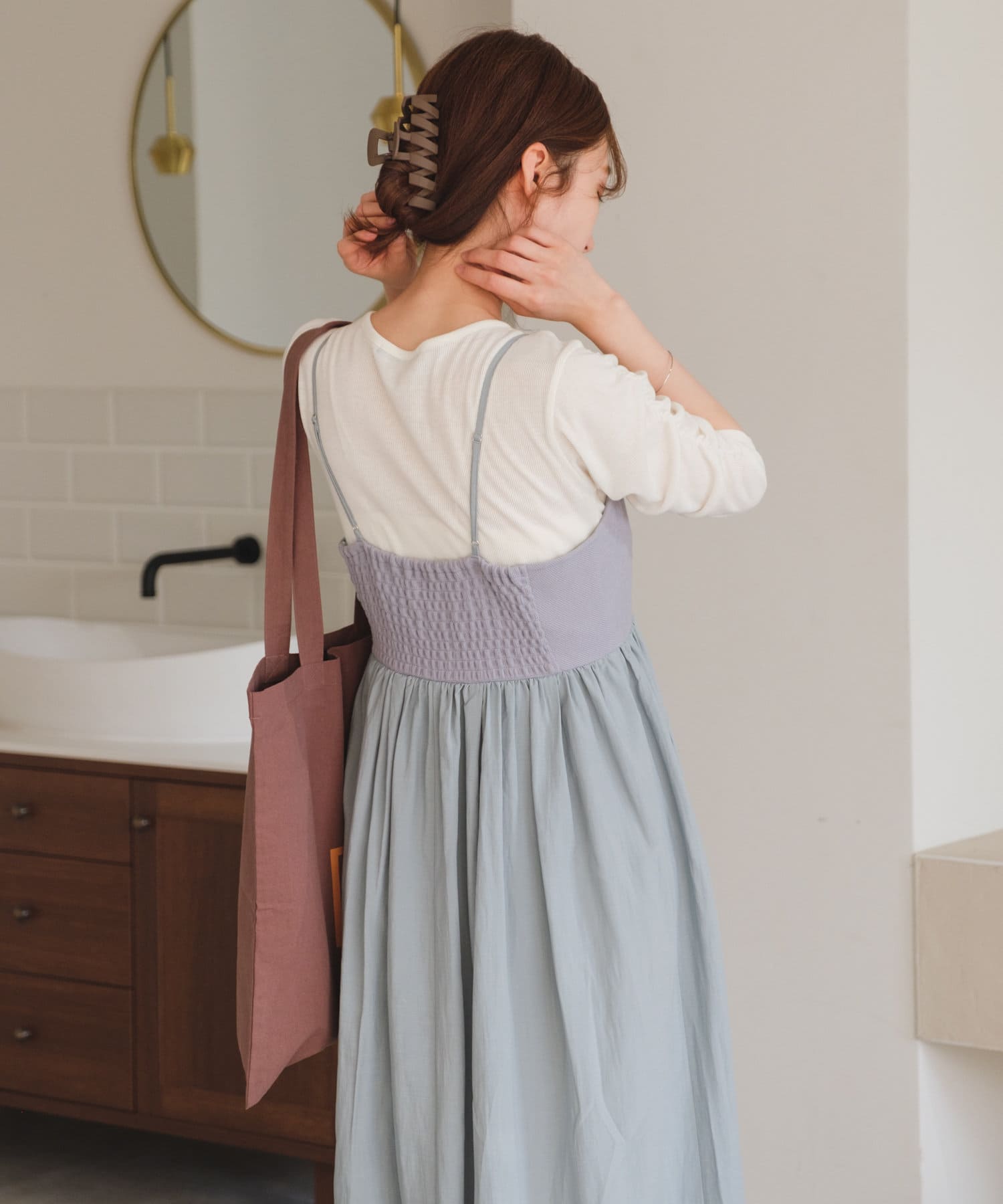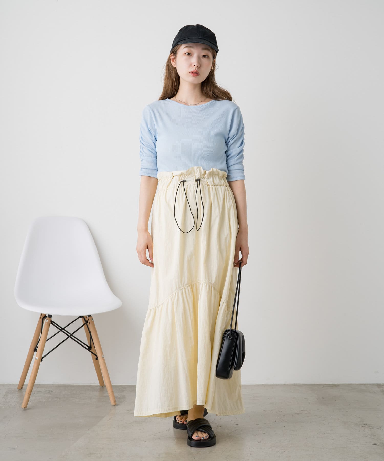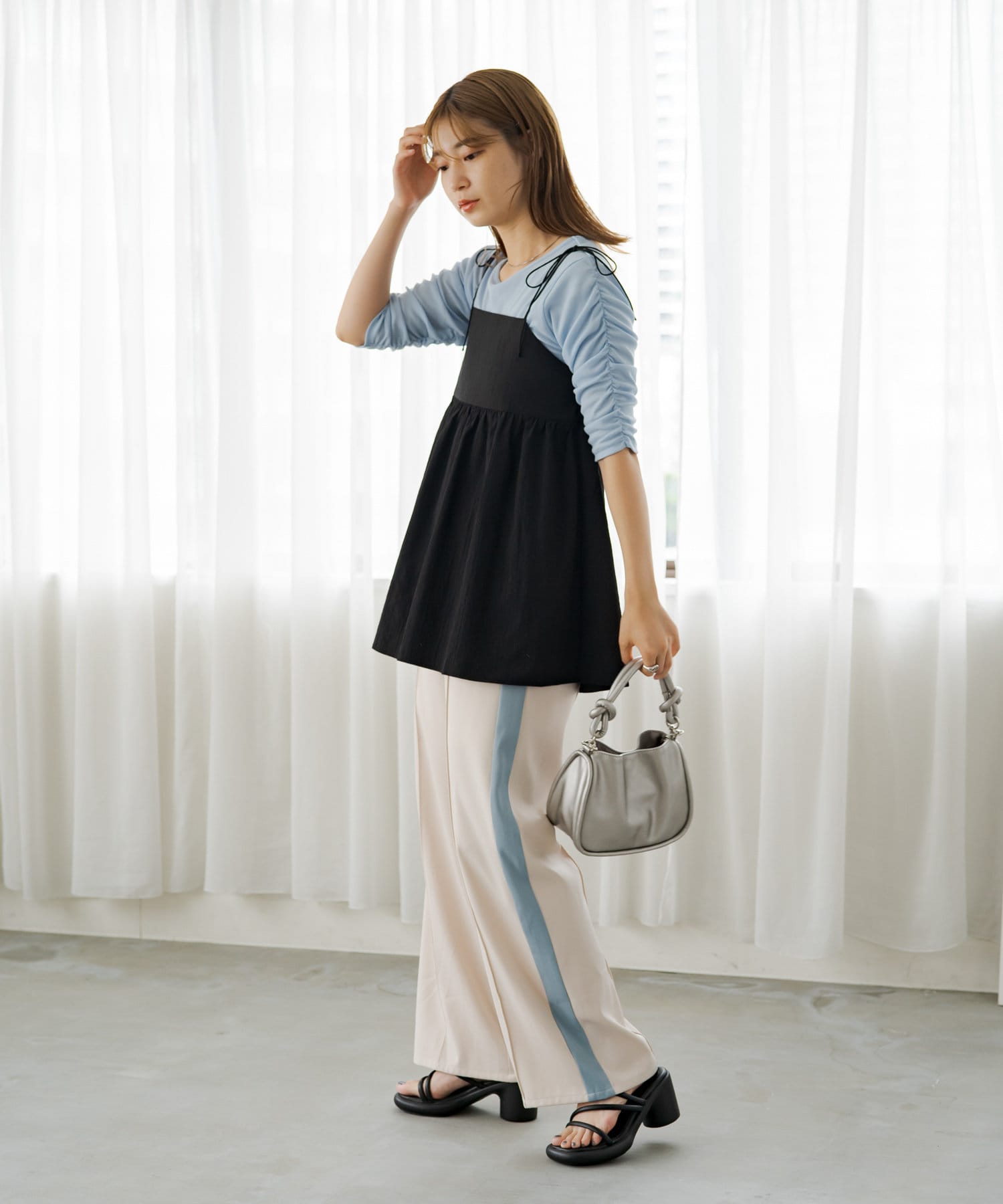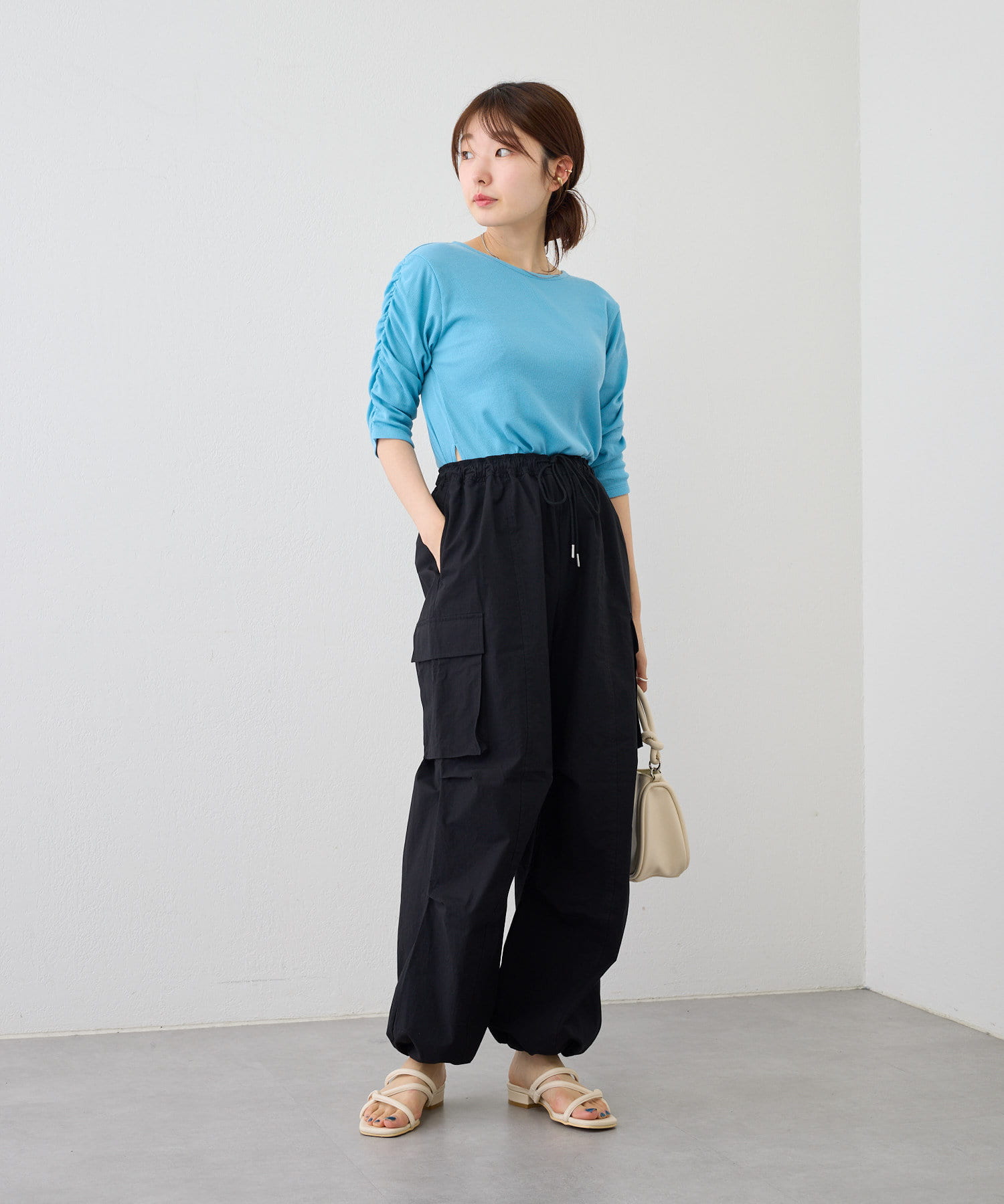 袖シャーリングを活かして主役級トップスとしても、キャミワンピースのインナーとしても使える万能アイテム。