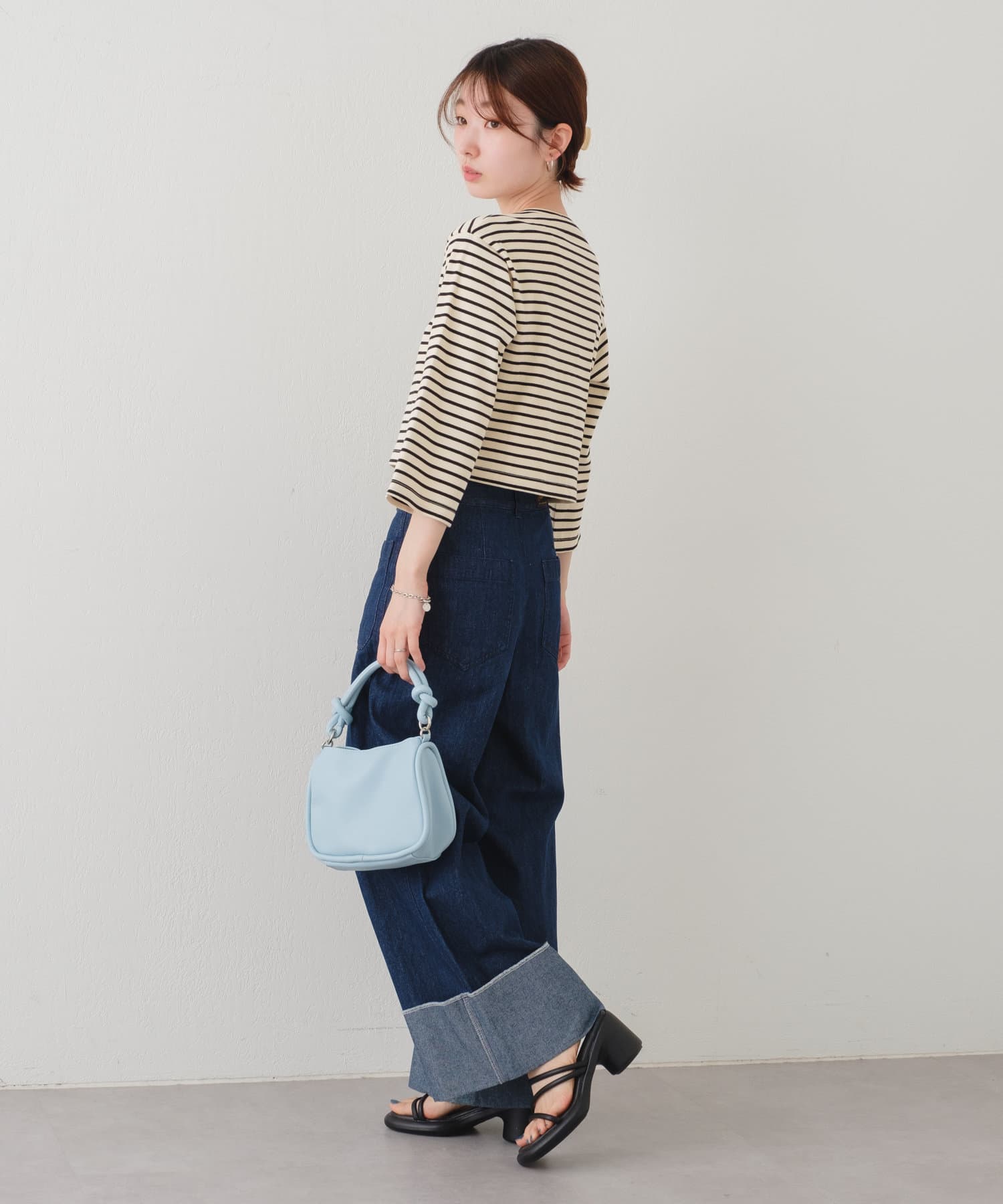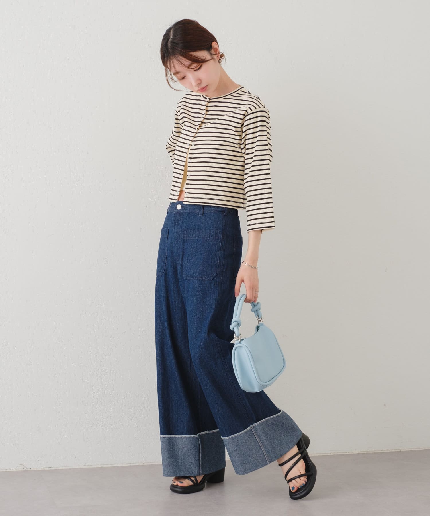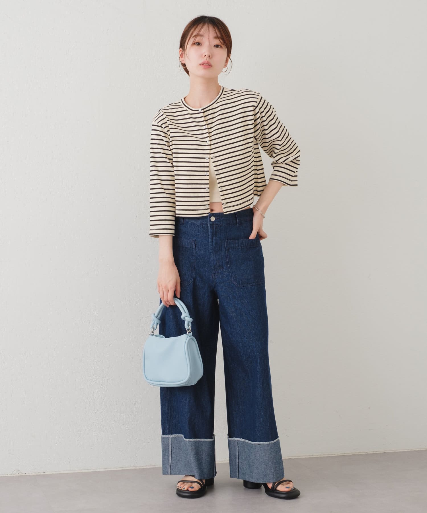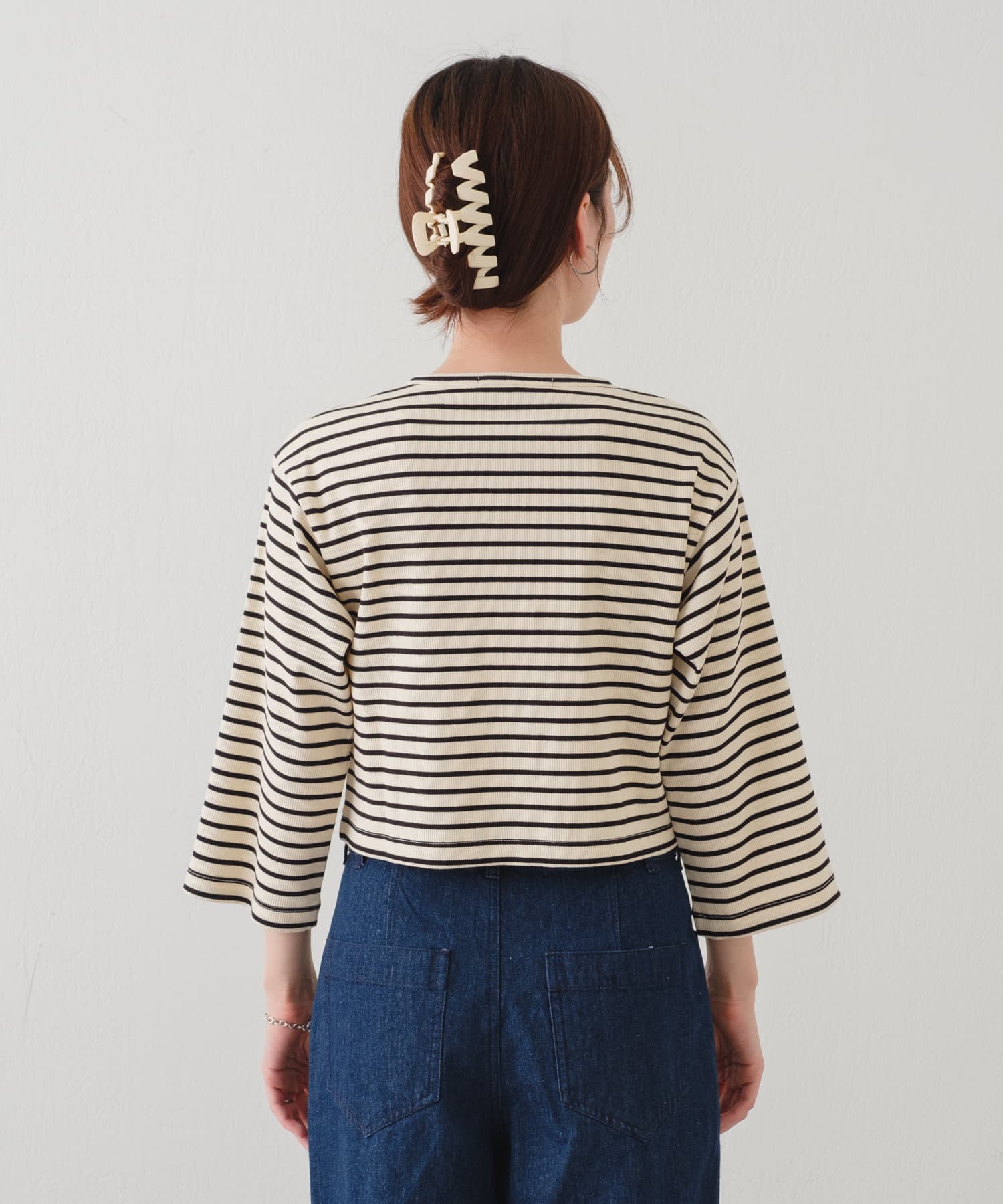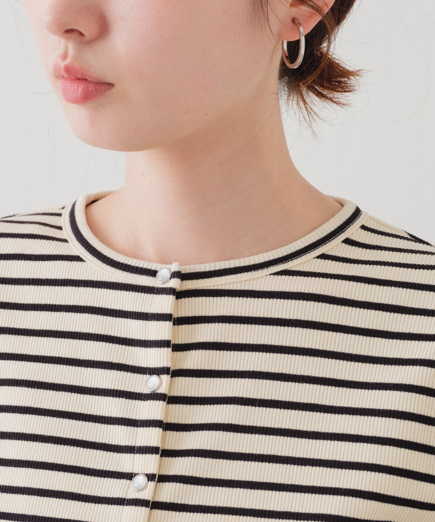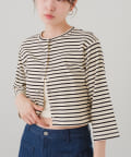 【WEB限定】七分袖テレコボーダーリブチビカーディガン