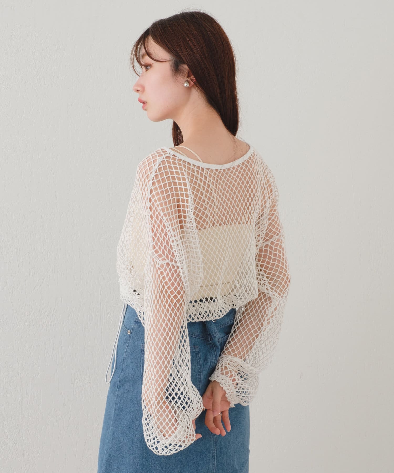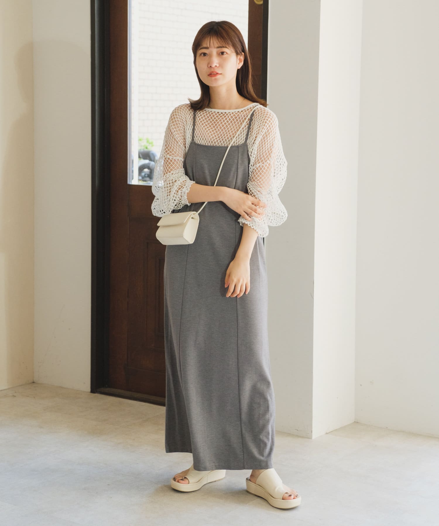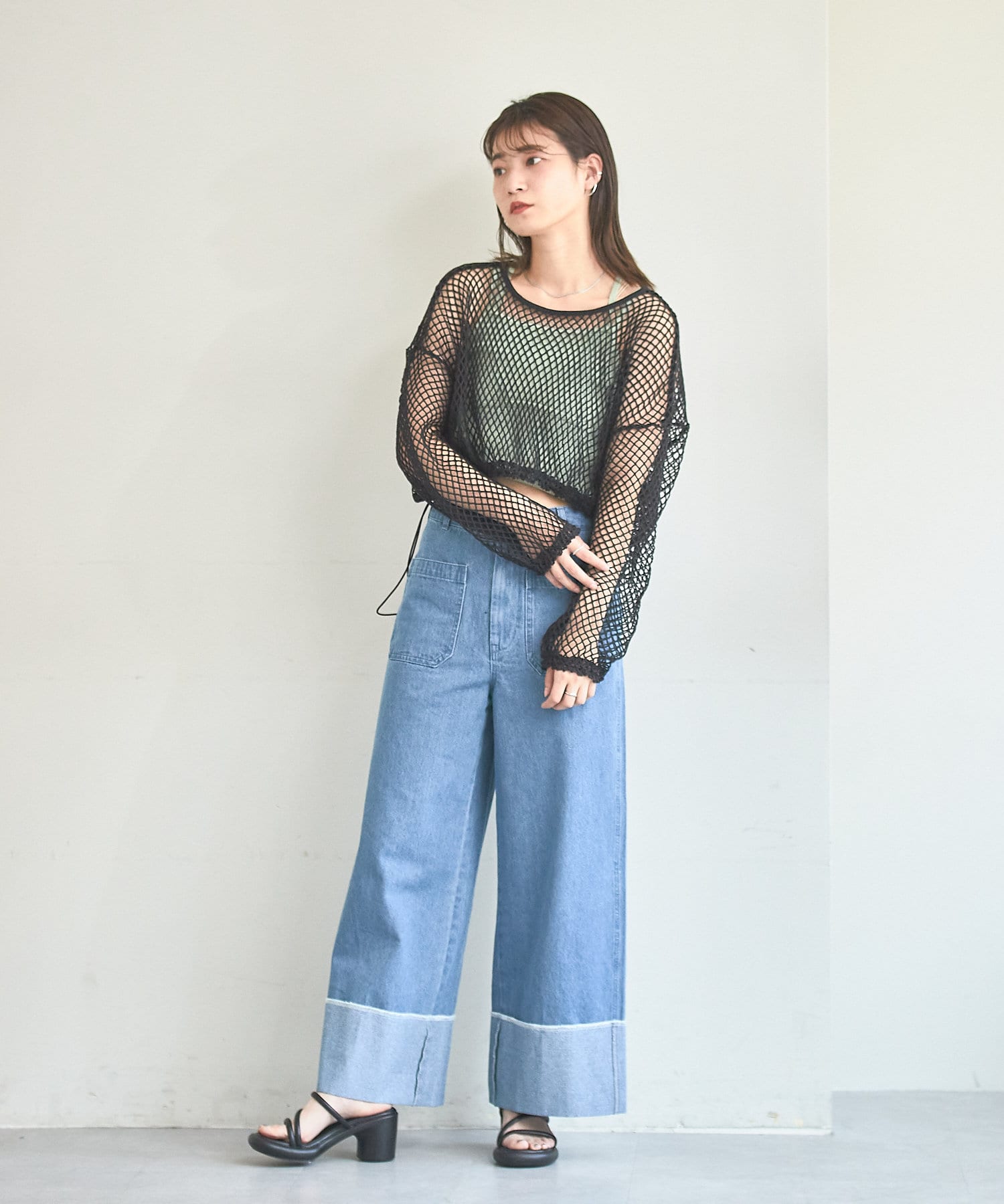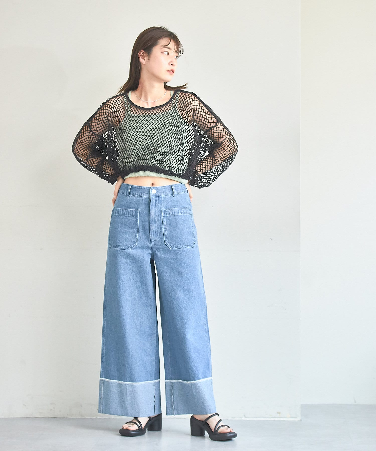 クロップド丈なのでハイウエストボトムはもちろん、キャミワンピースの上から被ってもバランスよく決まります。