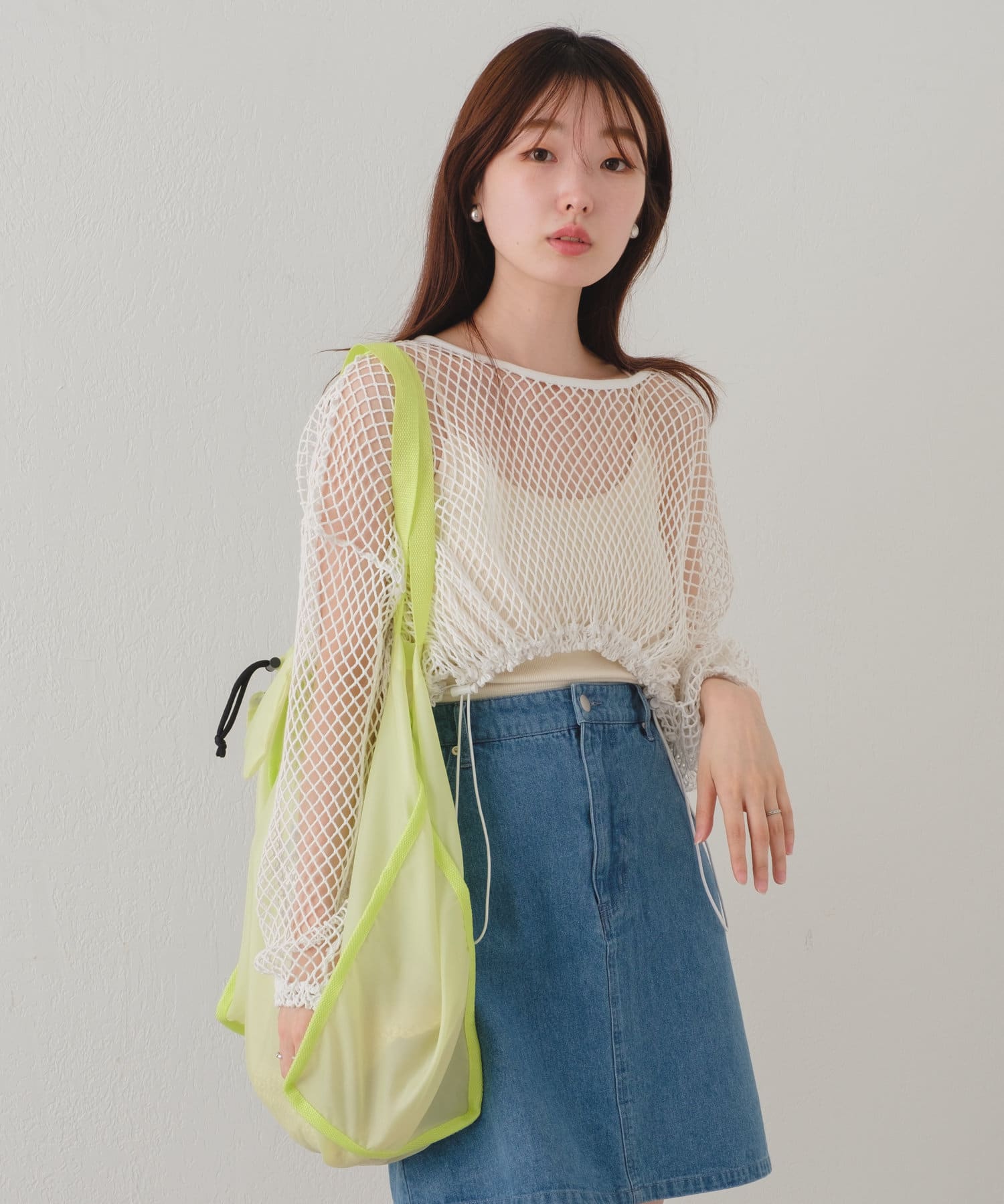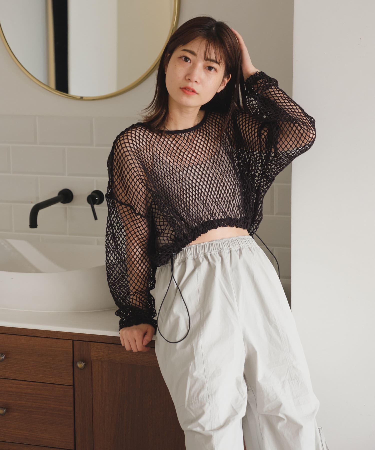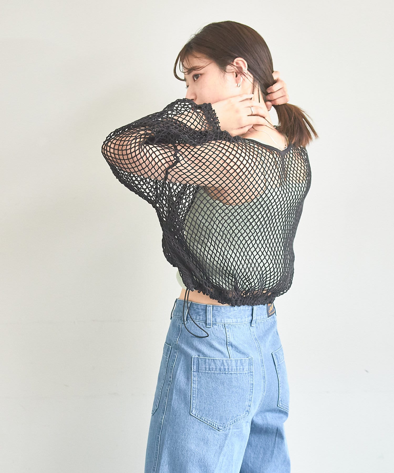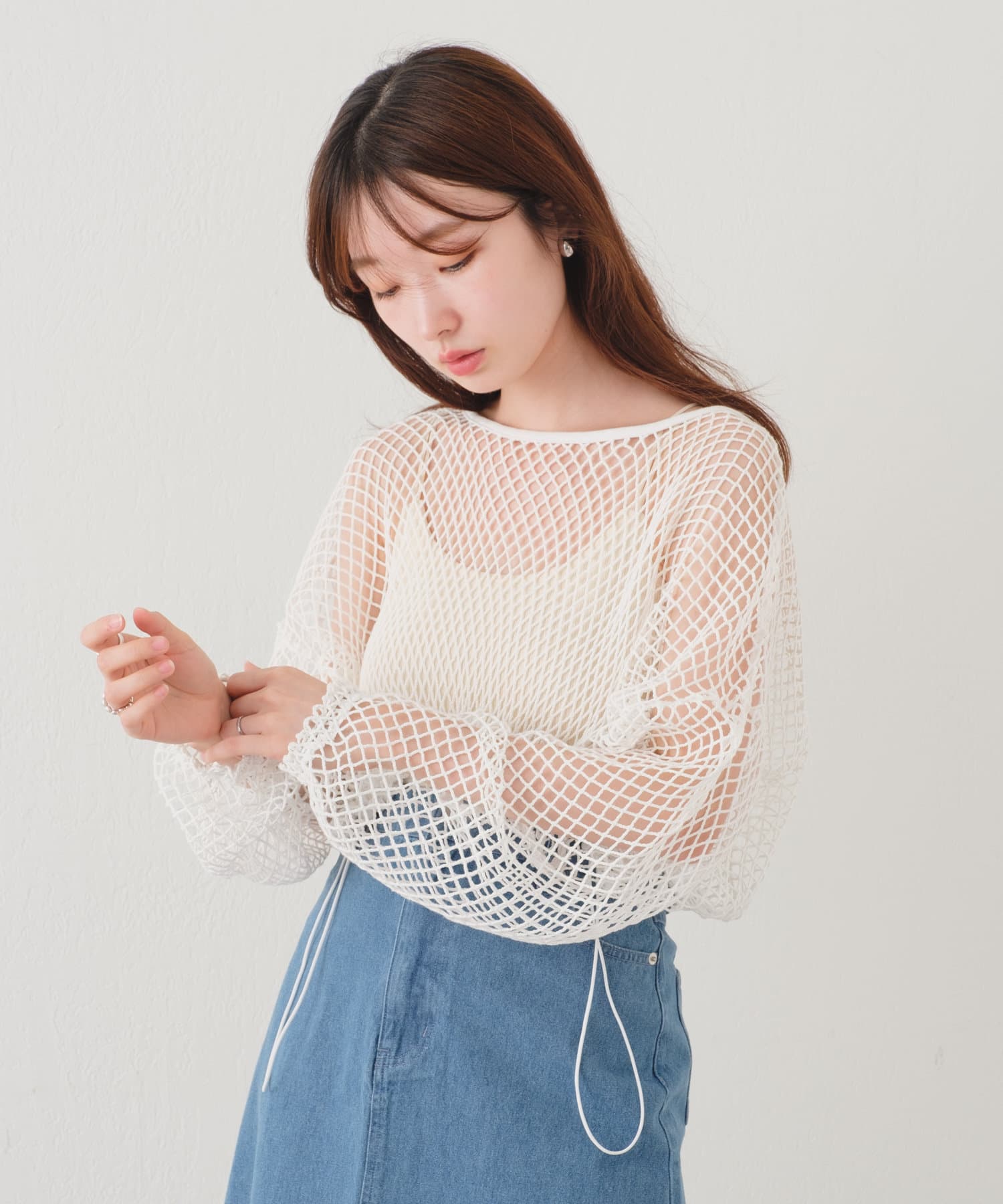クロップド丈なのでハイウエストボトムはもちろん、キャミワンピースの上から被ってもバランスよく決まります。