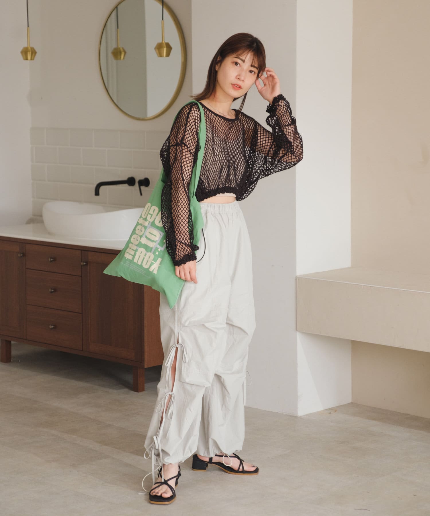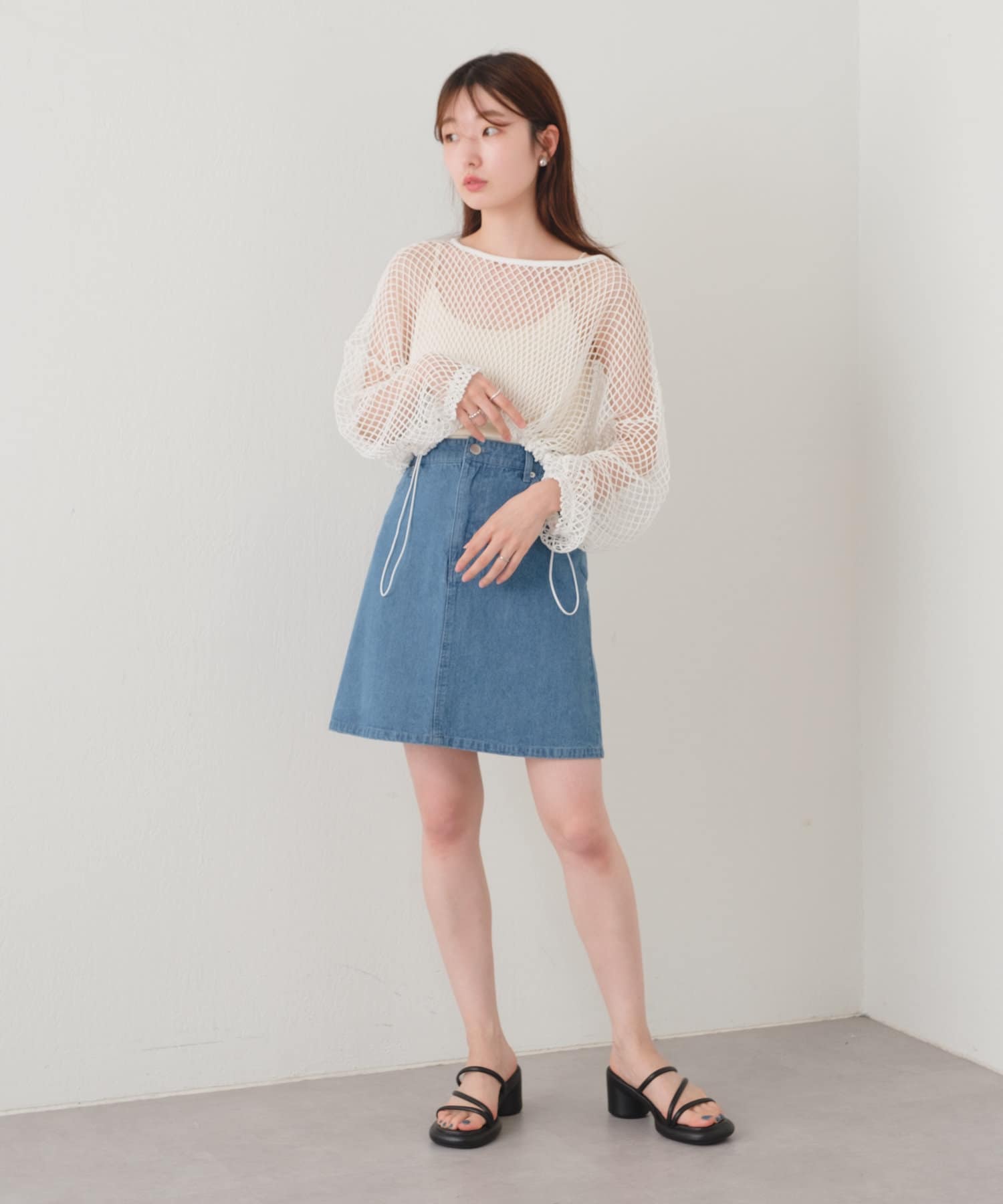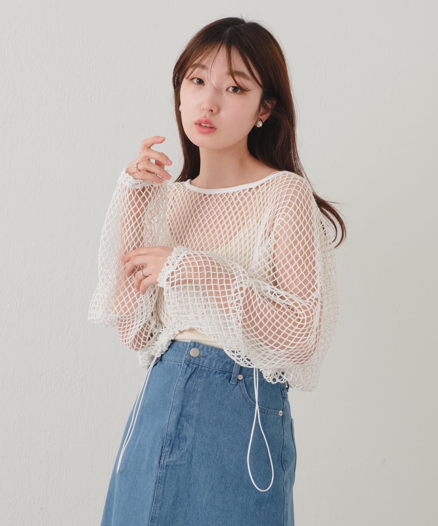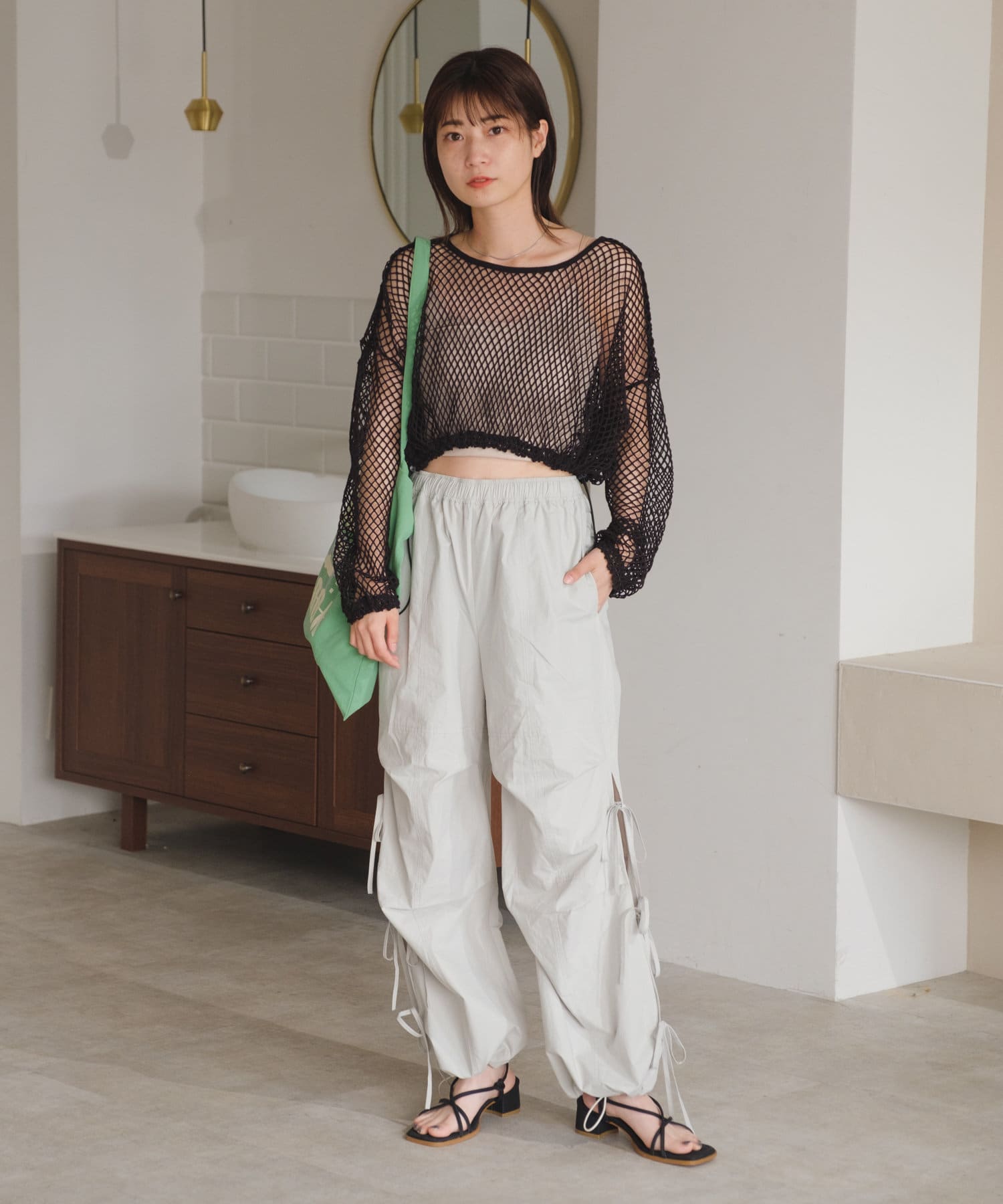 クロップド丈なのでハイウエストボトムはもちろん、キャミワンピースの上から被ってもバランスよく決まります。