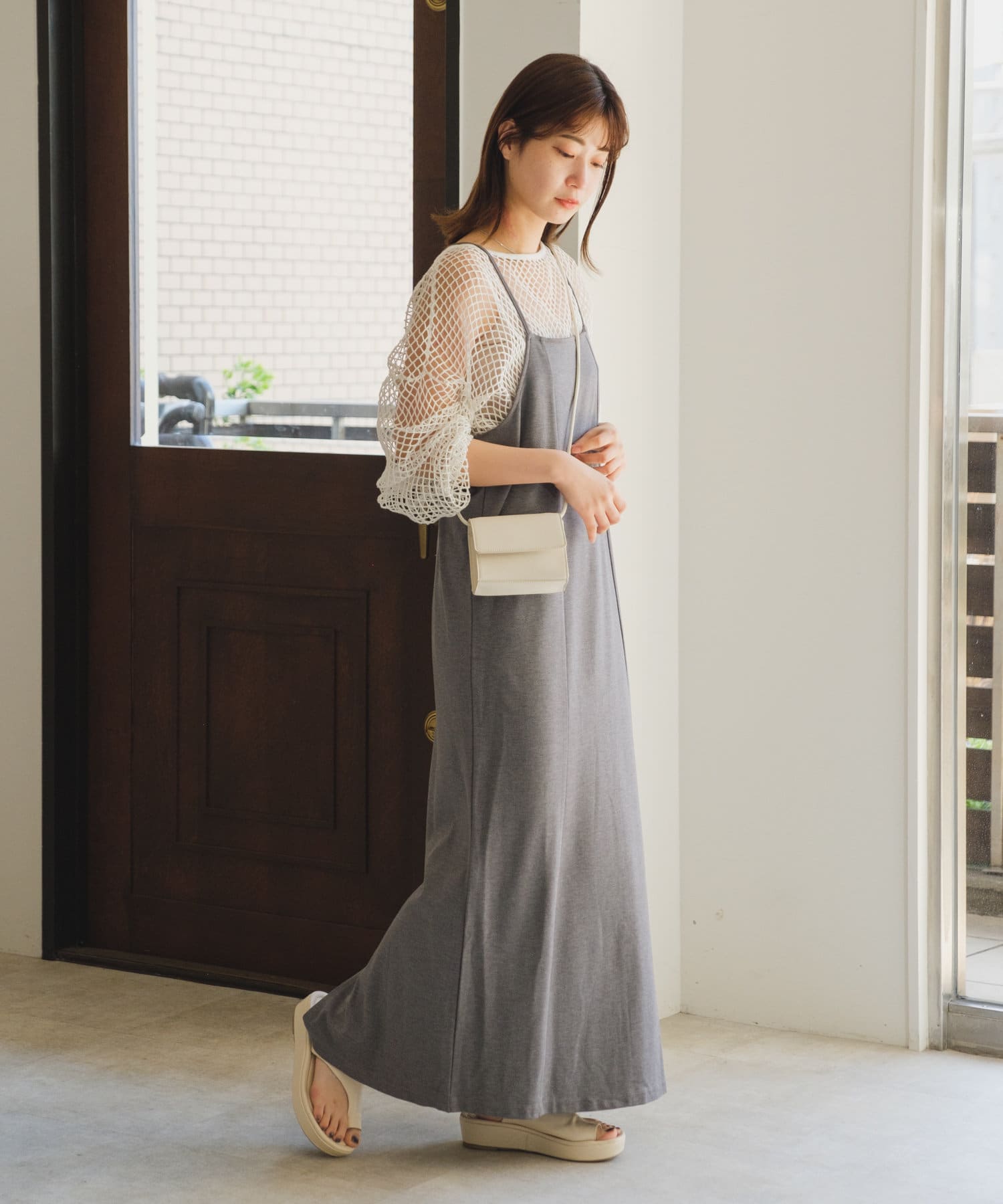 カットソーやキャミソールと合わせてレイヤードスタイルを楽しめます。