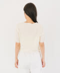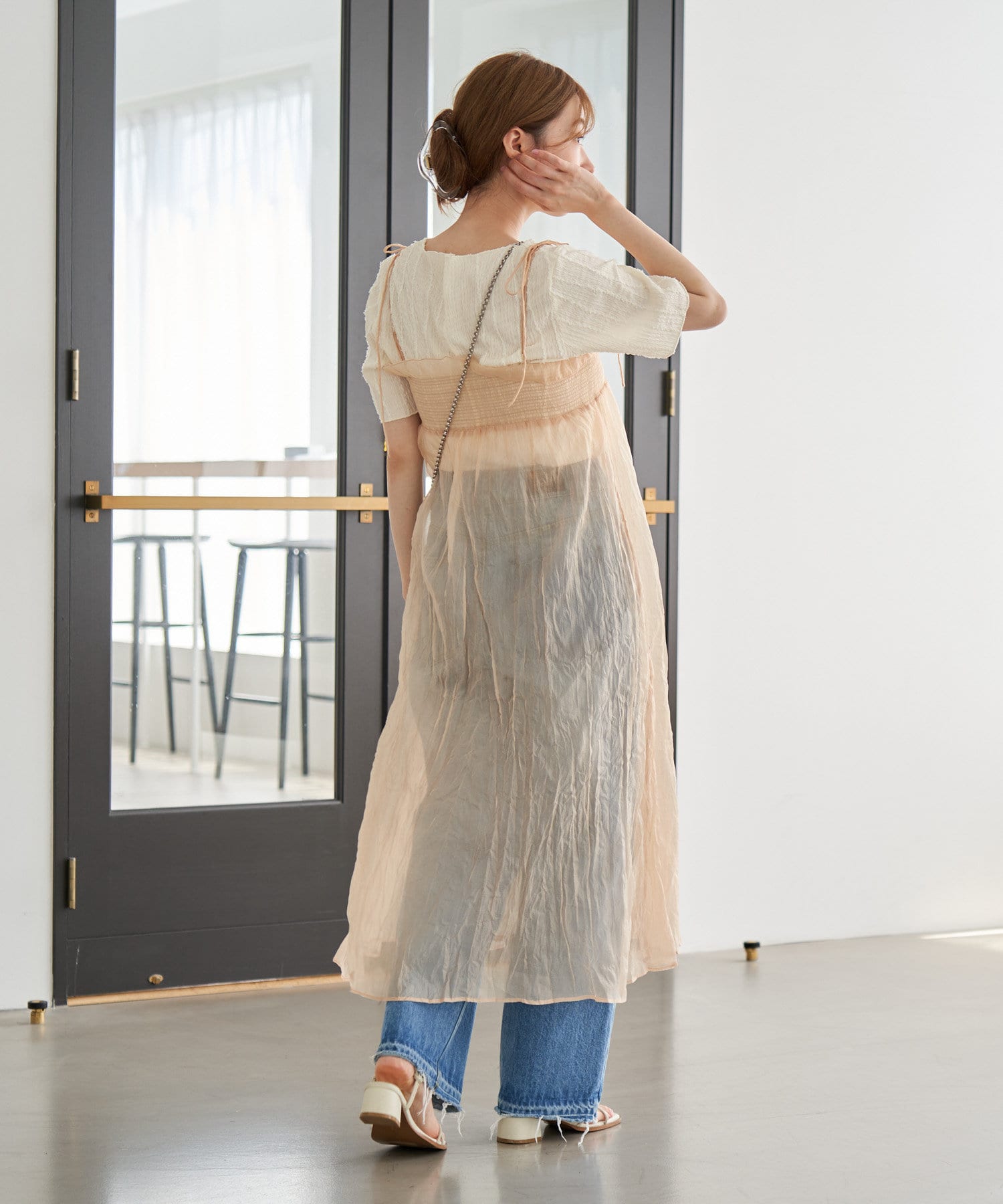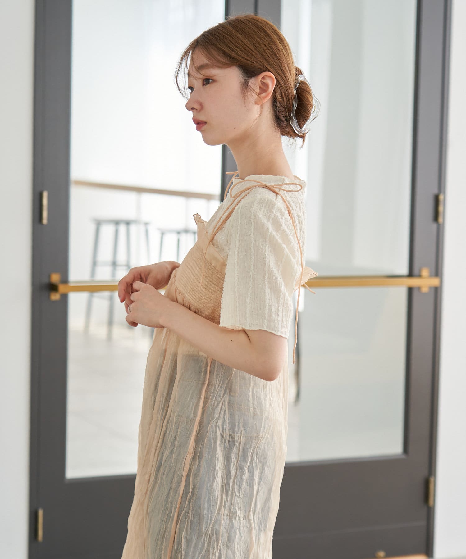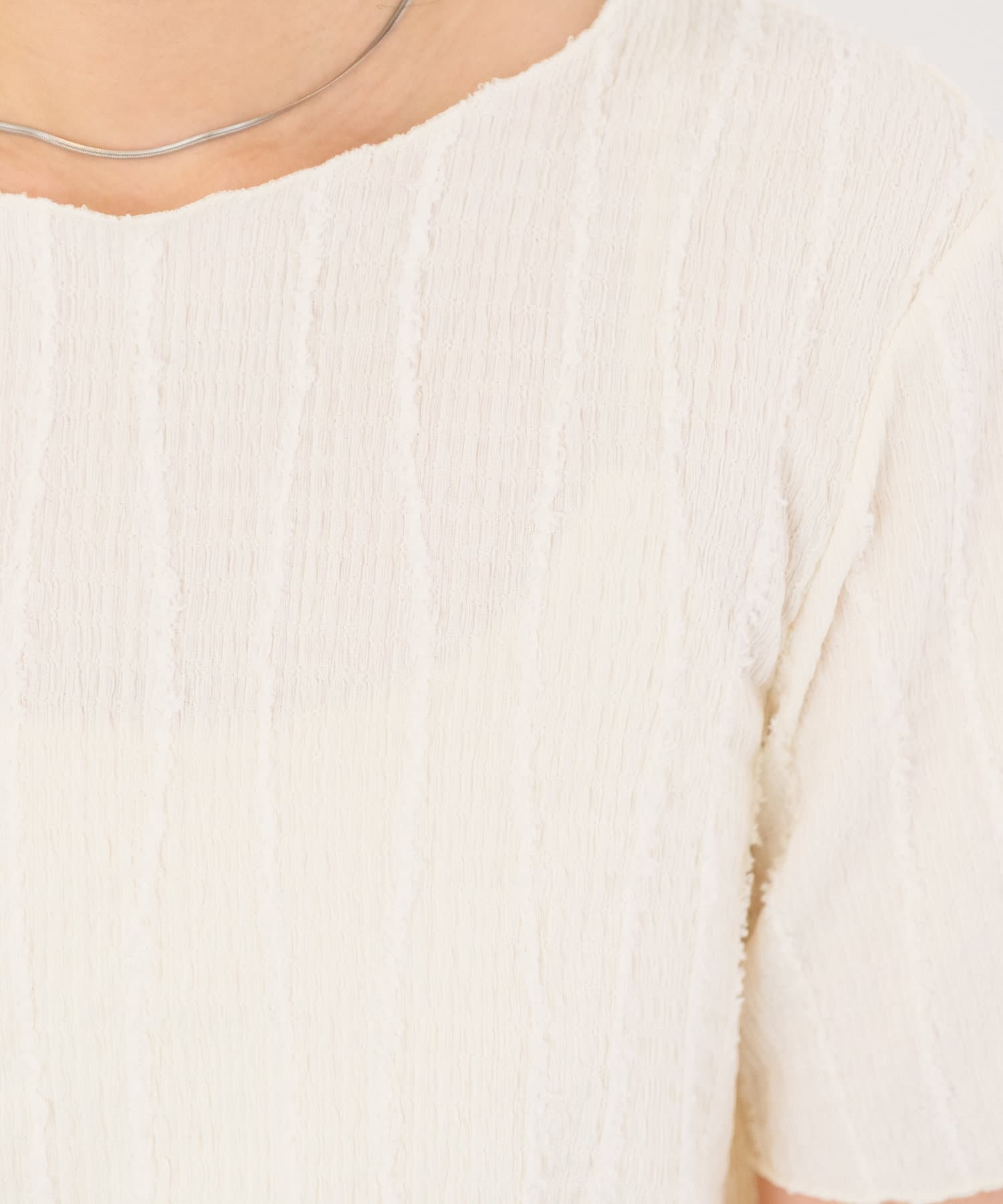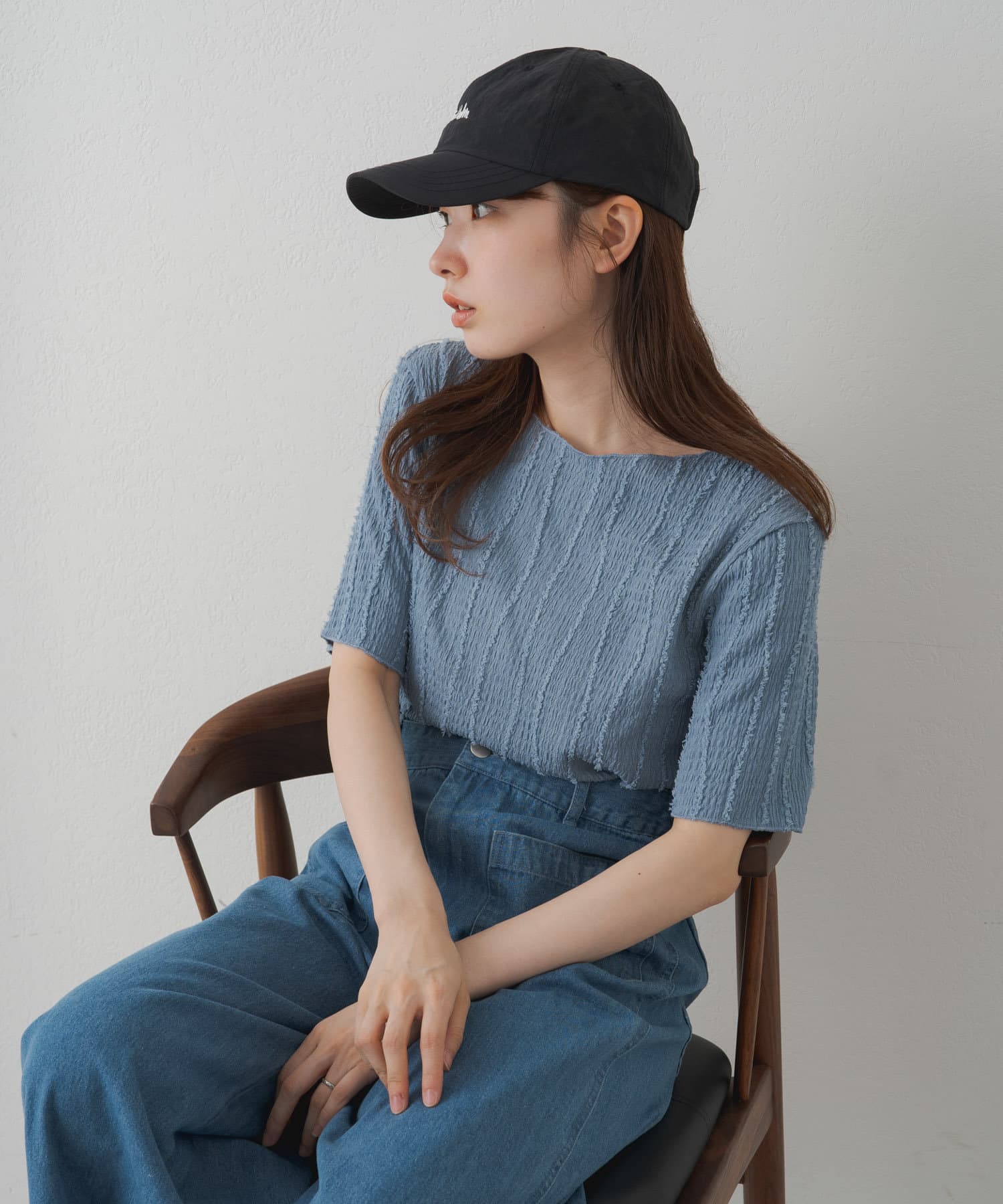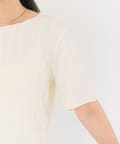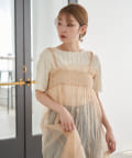 スッキリとした首周りや、程良い透け感が女性らしい印象に。