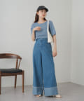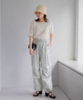 ハイウエストボトムにインするとバランスよく、スタイルアップ見えが叶います。