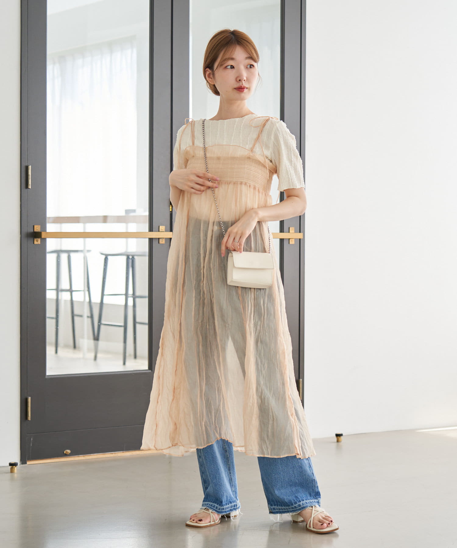 ベーシックなシルエットなので、キャミワンピースやサロペットのインナーとしても◎