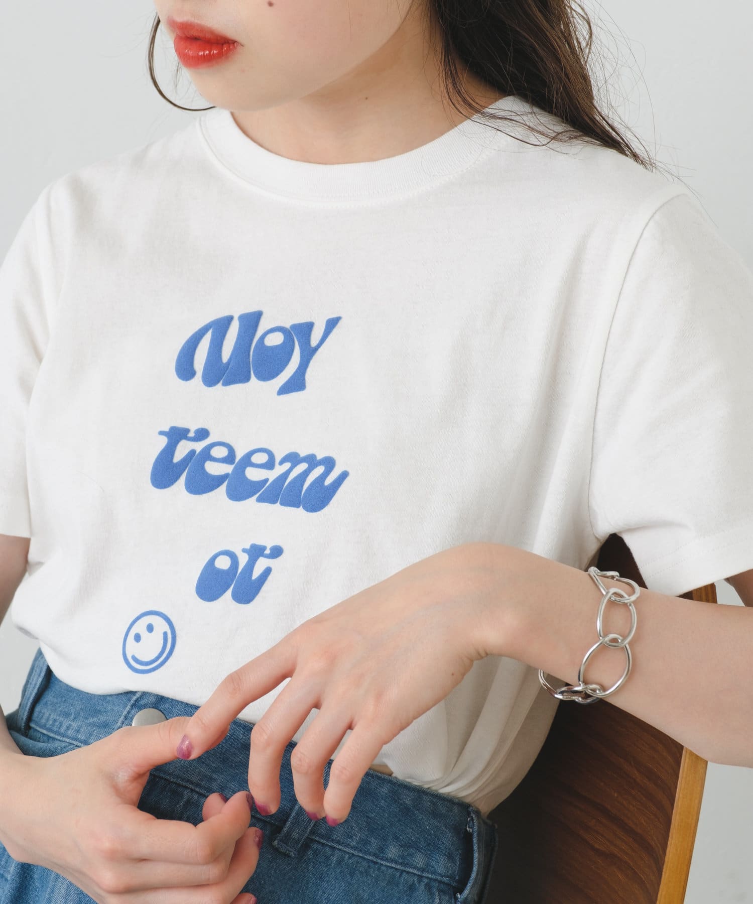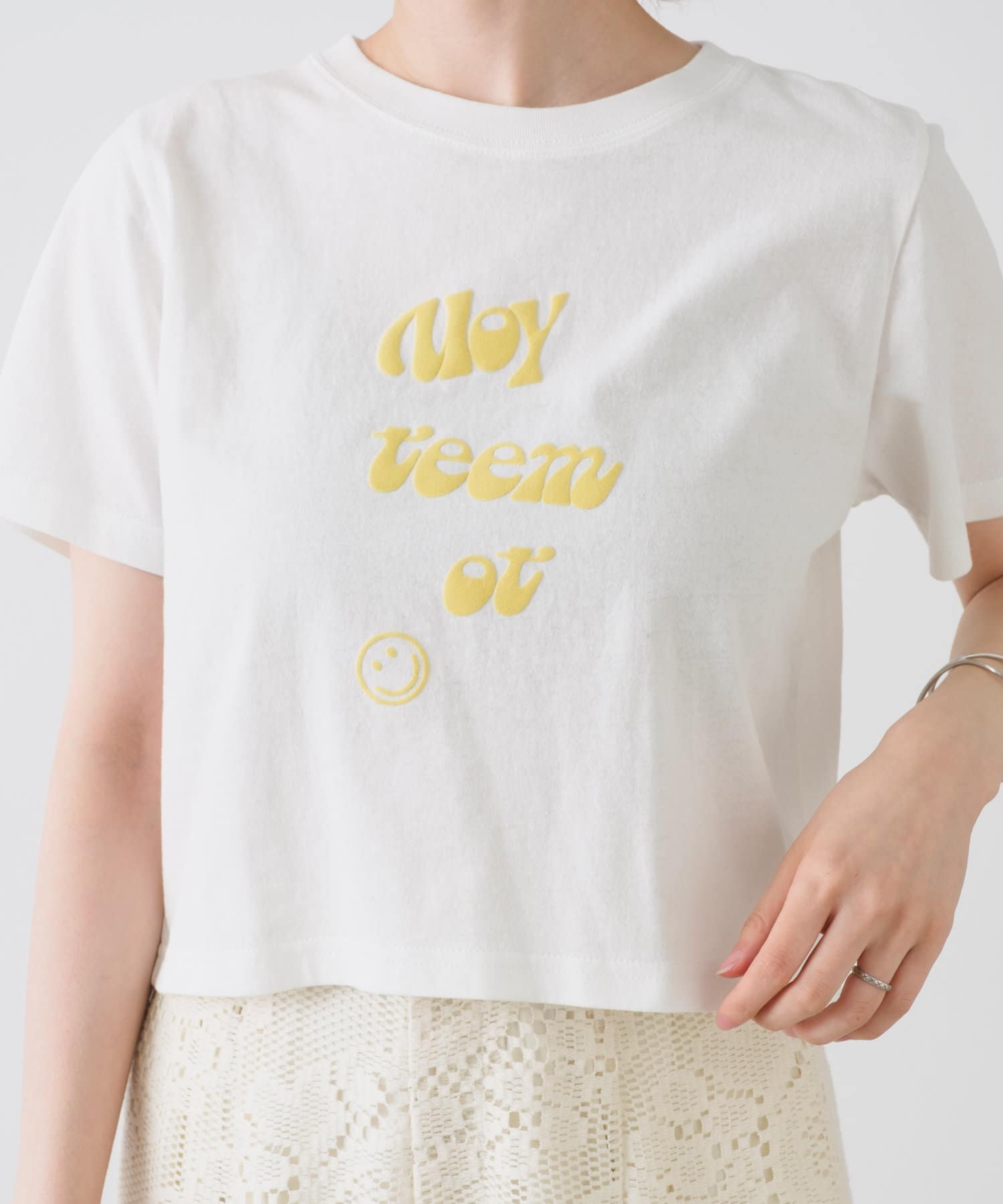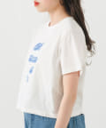 発泡したようなスウェード素材のロゴが目を惹くプリントTee。