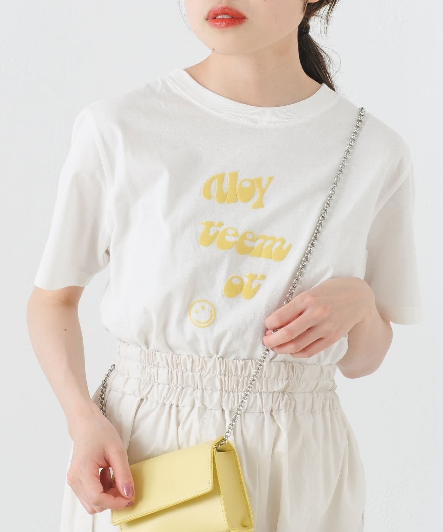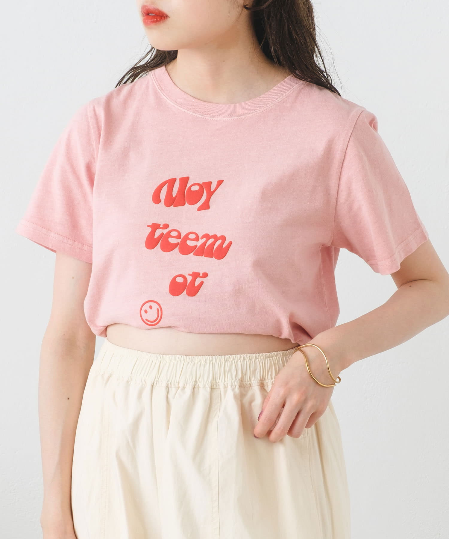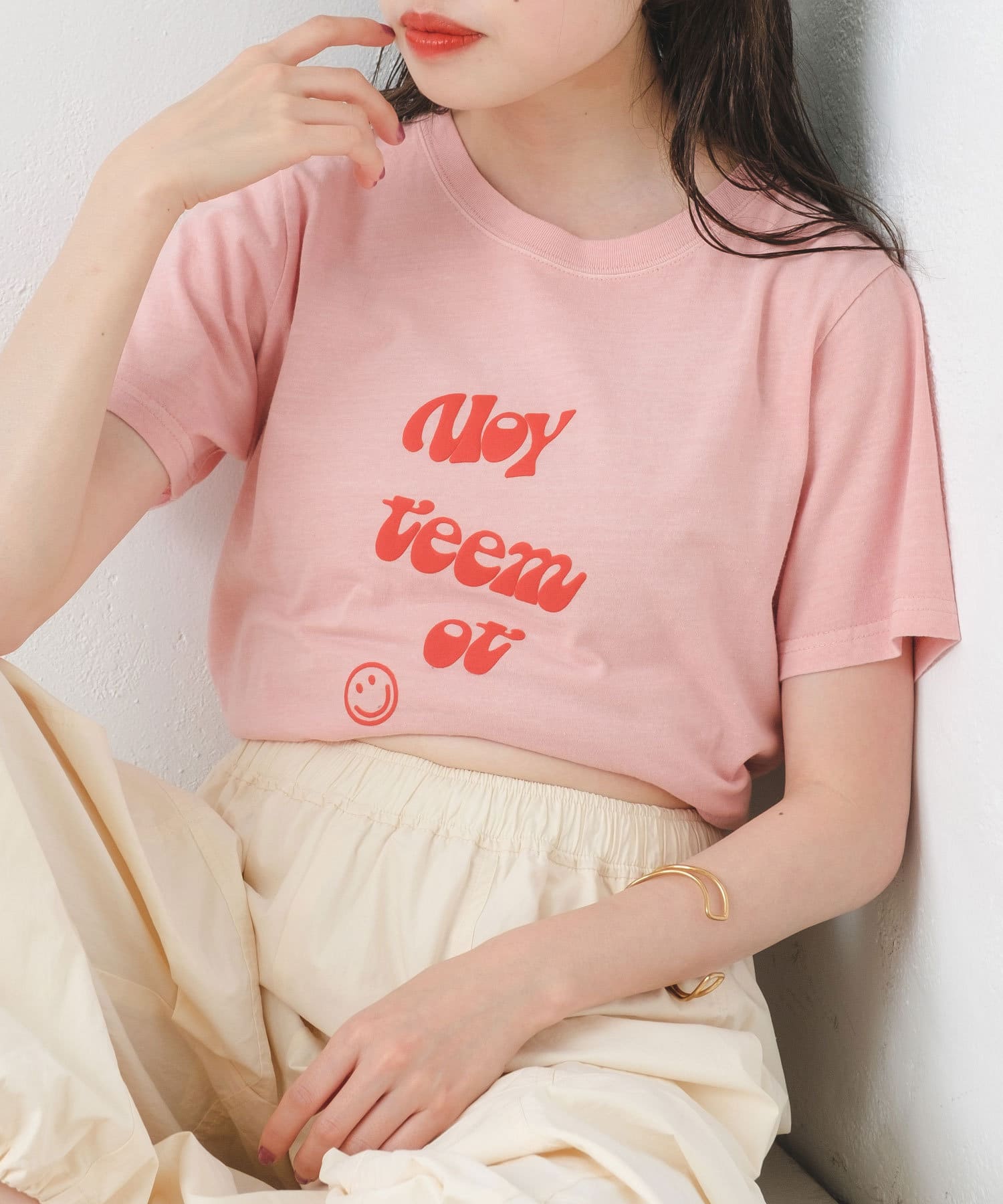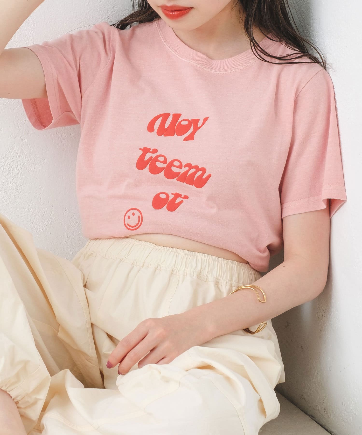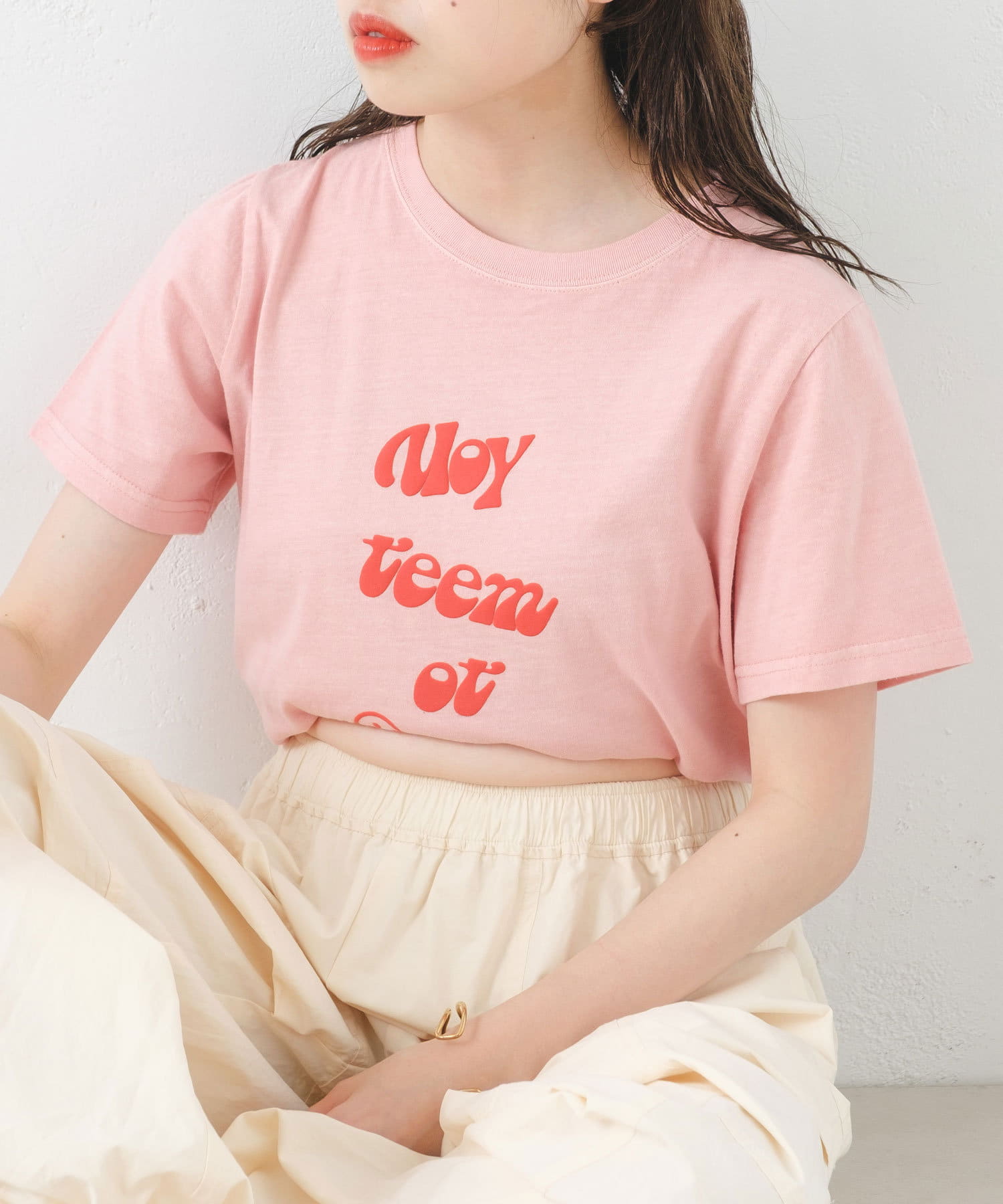 サロペットやキャミワンピースのインナーとしてロゴをチラ見せしても◎