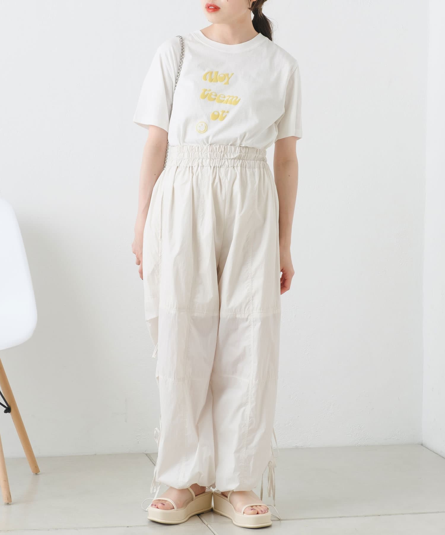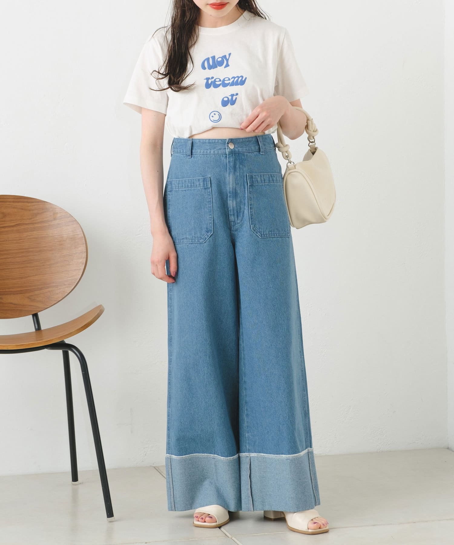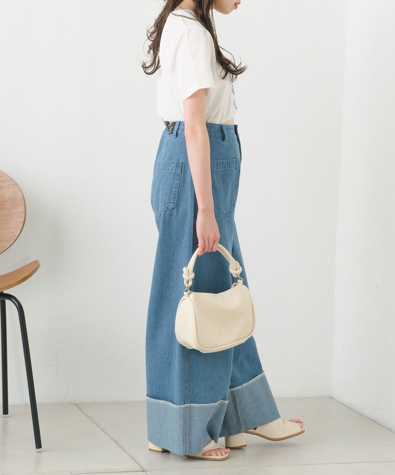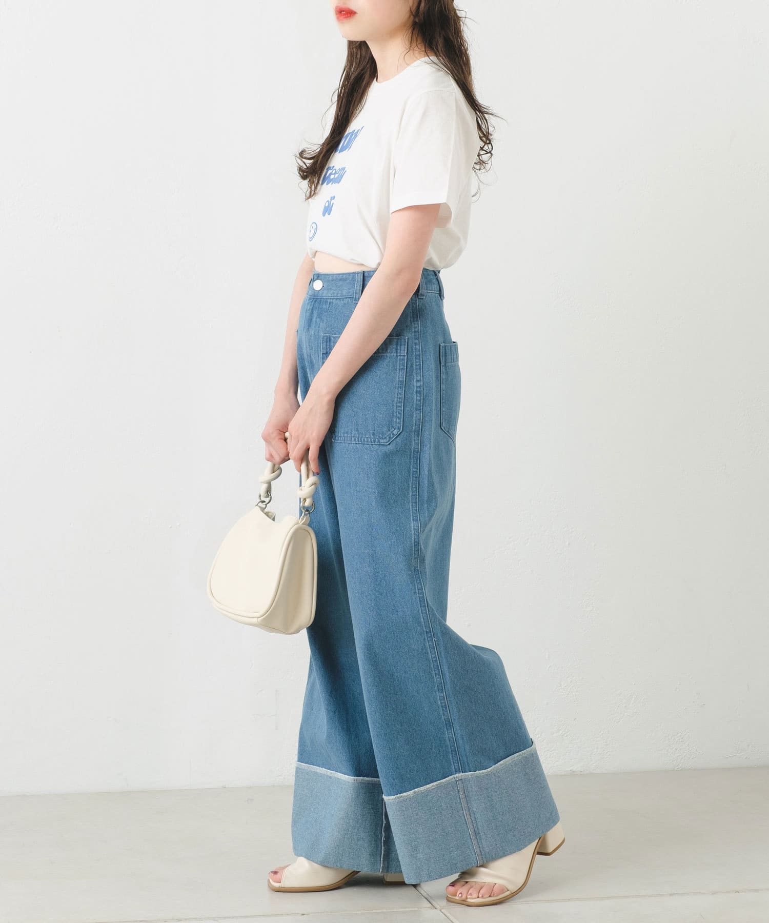 ハイウエストボトムもバランスよく決まり、様々なスタイリングをお楽しみいただけます。