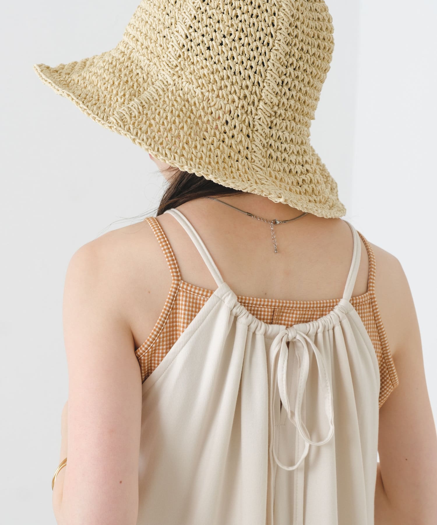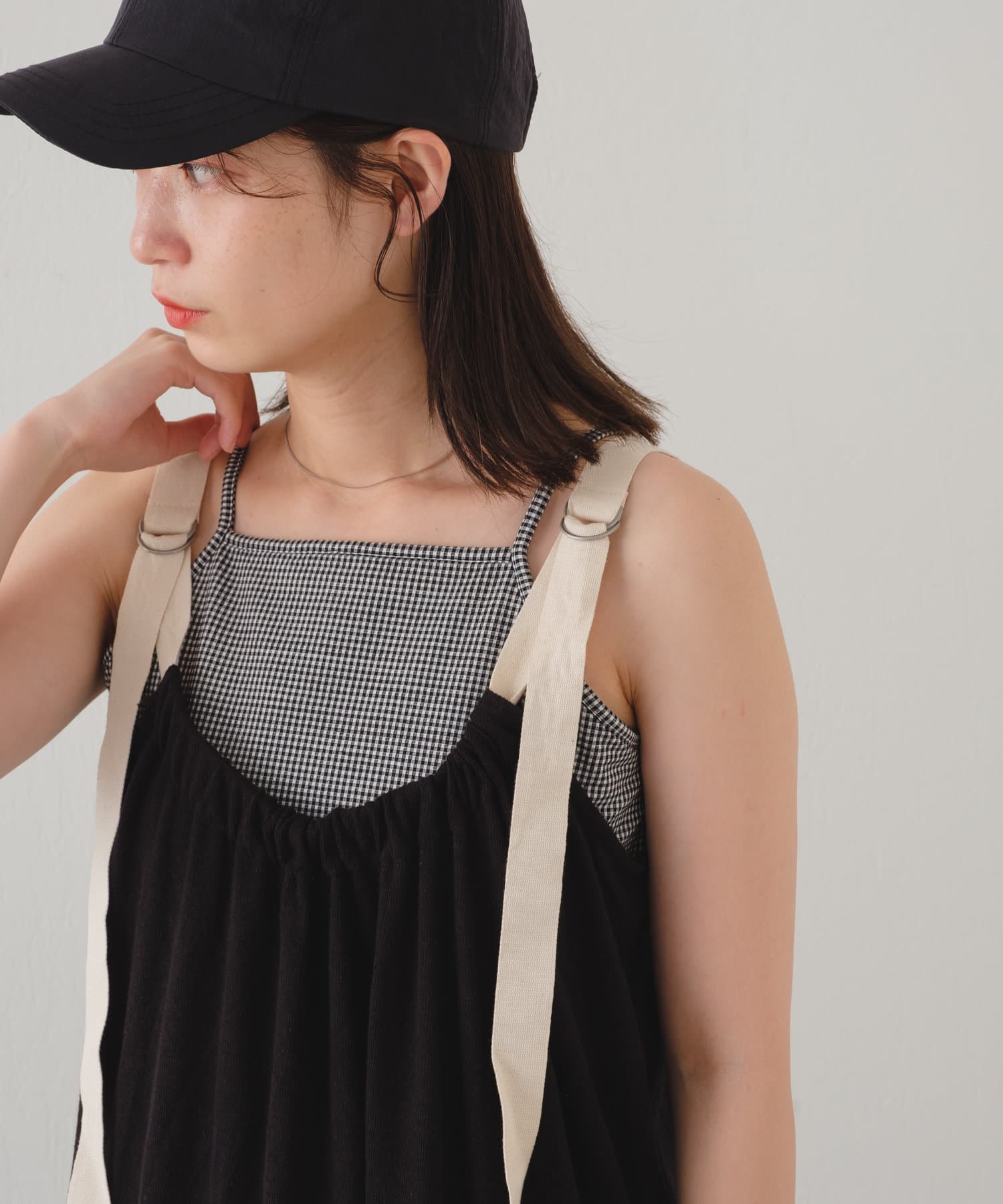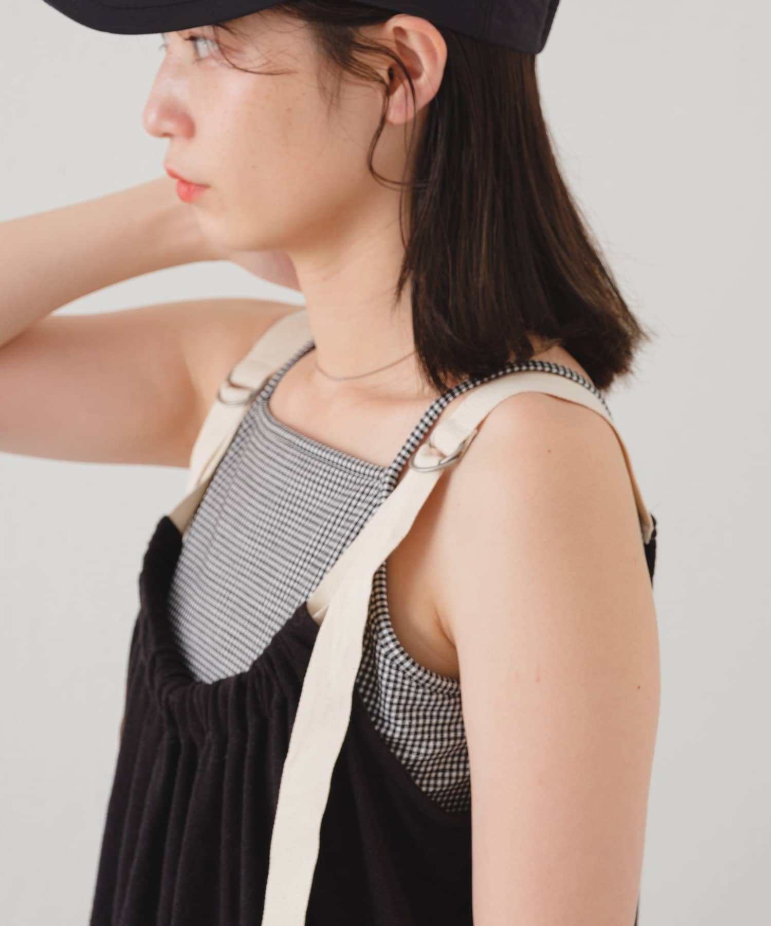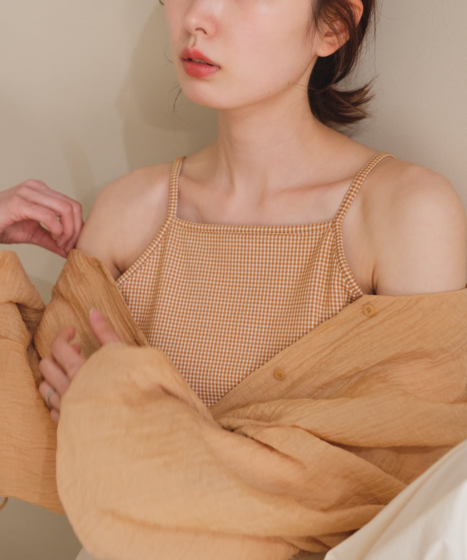 キャミソールにしては首元が高めなので、トップスからチラリさせるのがお気に入りです!