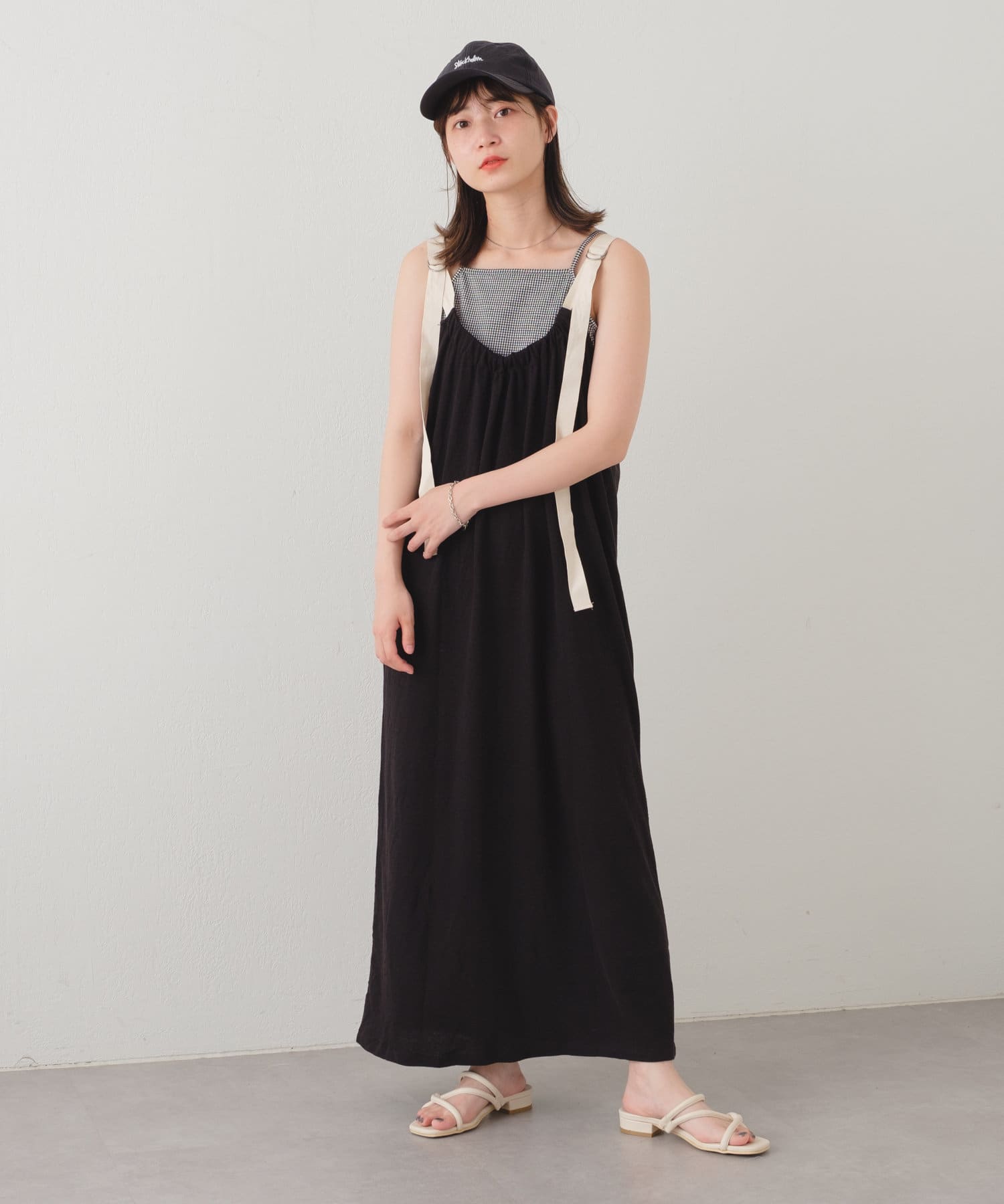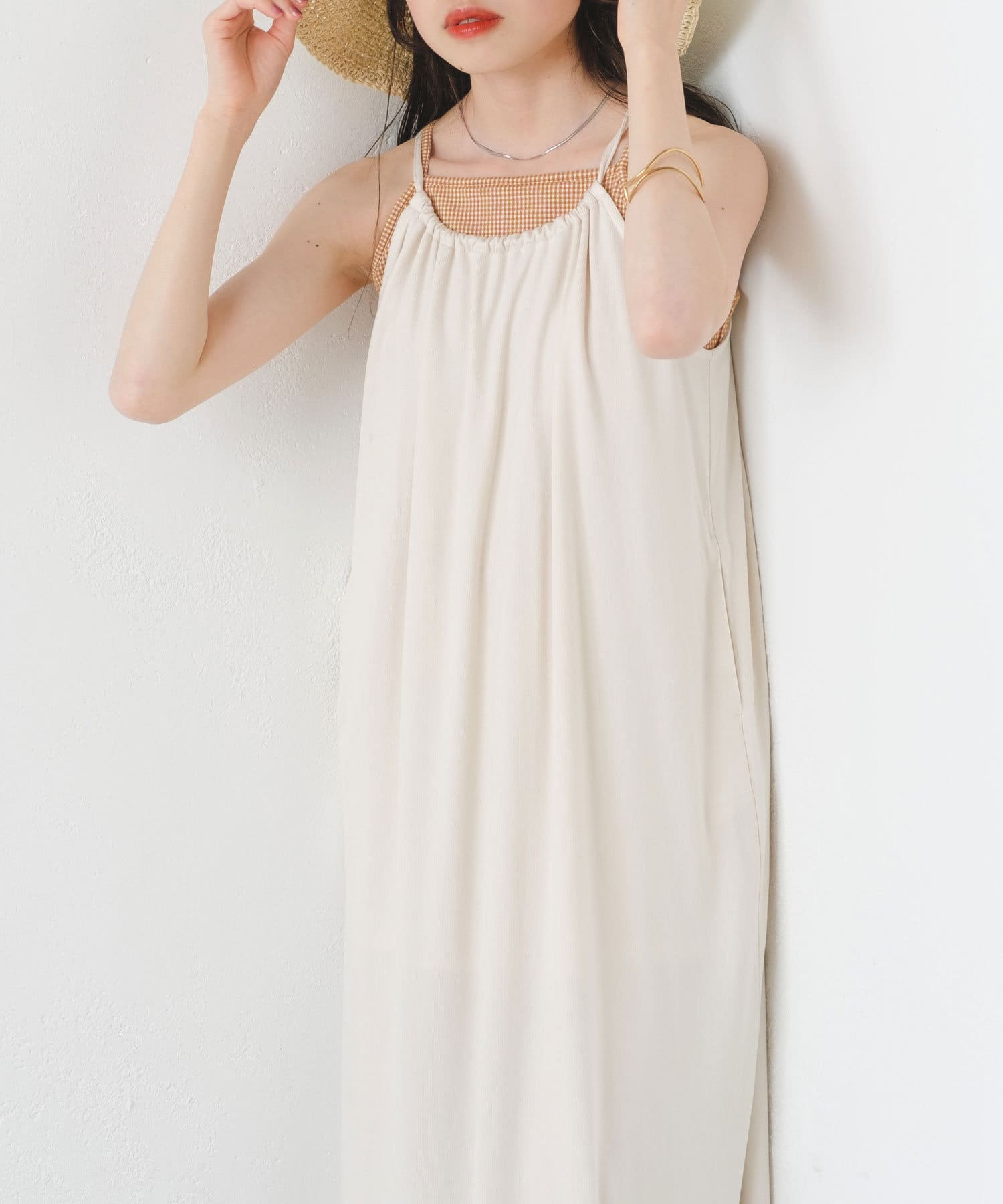 無地のキャミワンピと合わせてただくとポイントにもなります。
