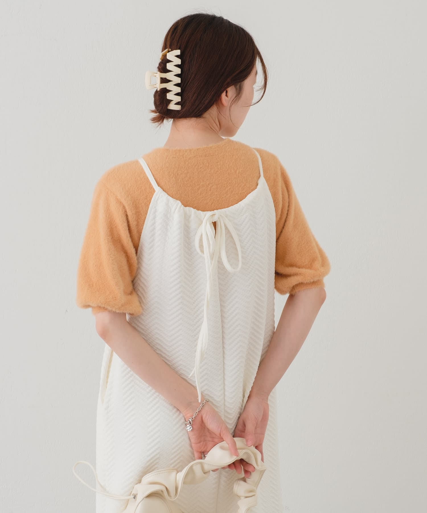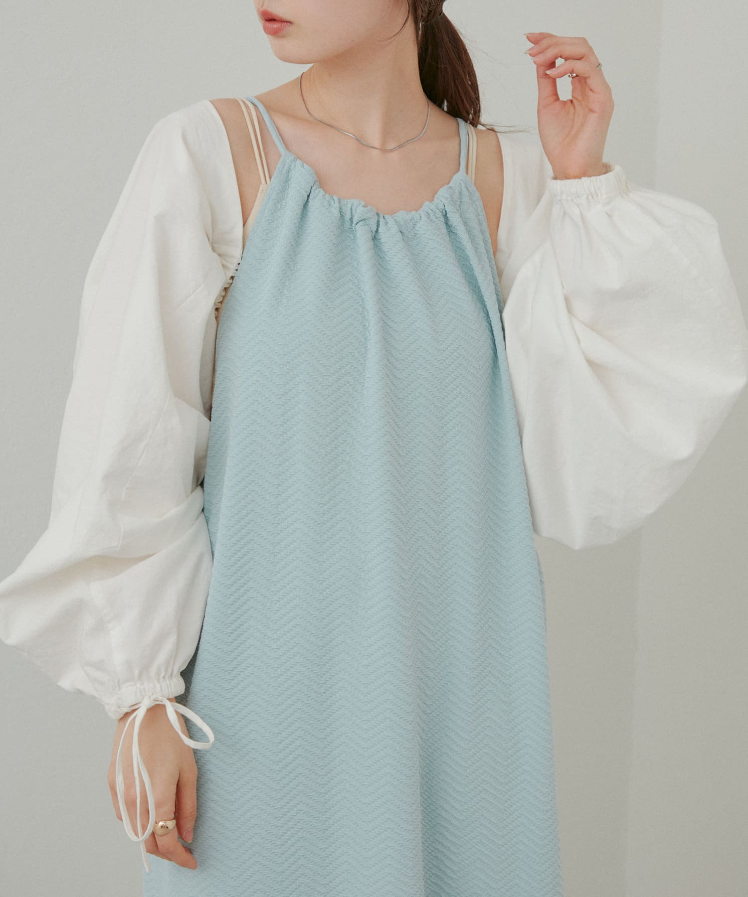 胸元はギャザーで調節ができアメスリ風に着て頂けます。