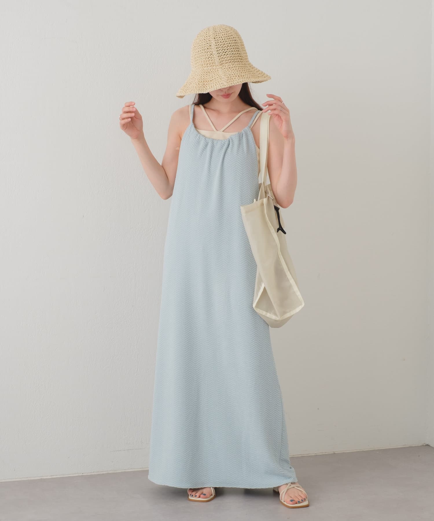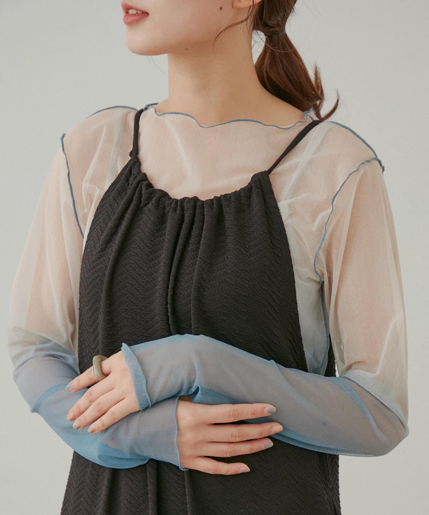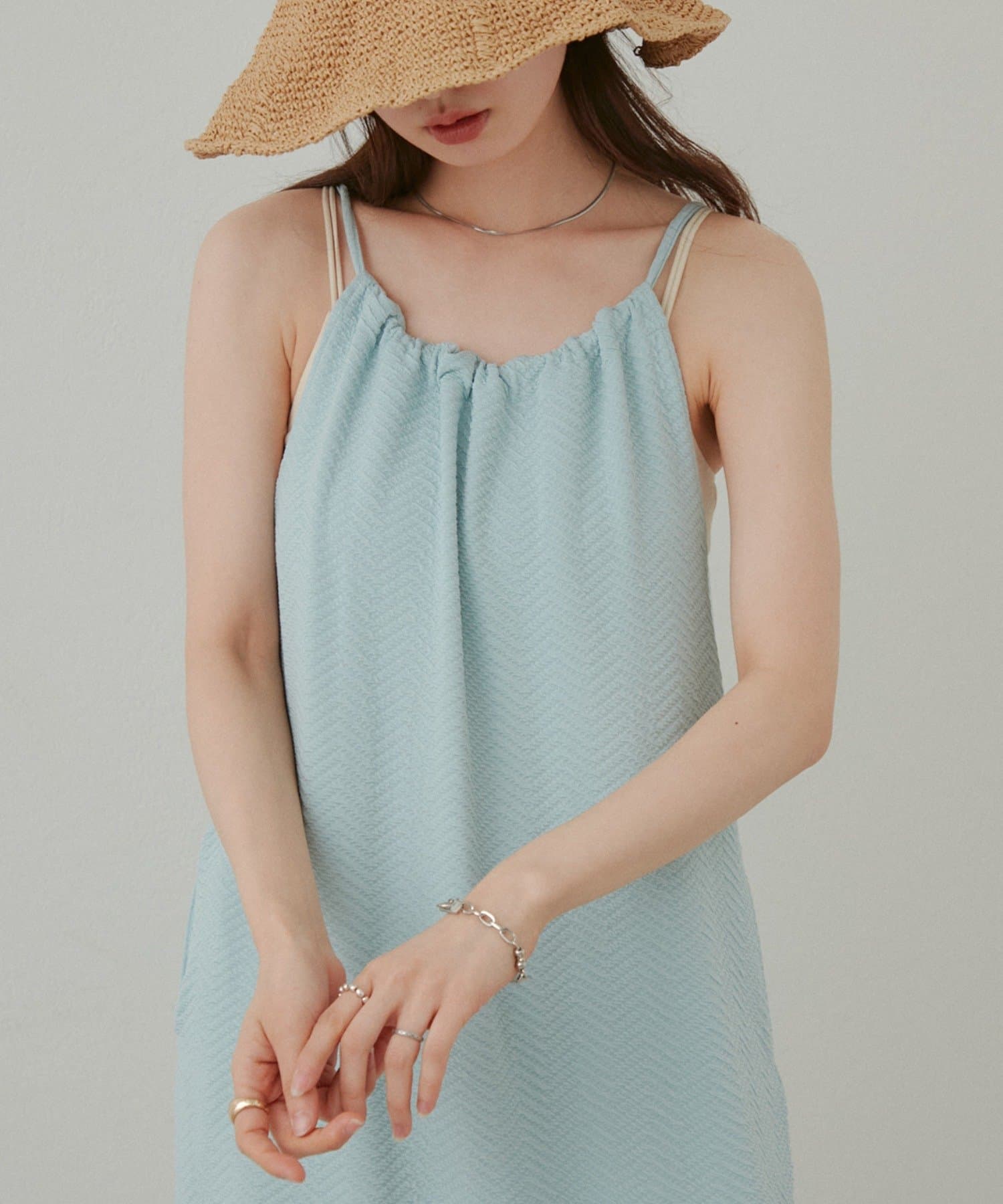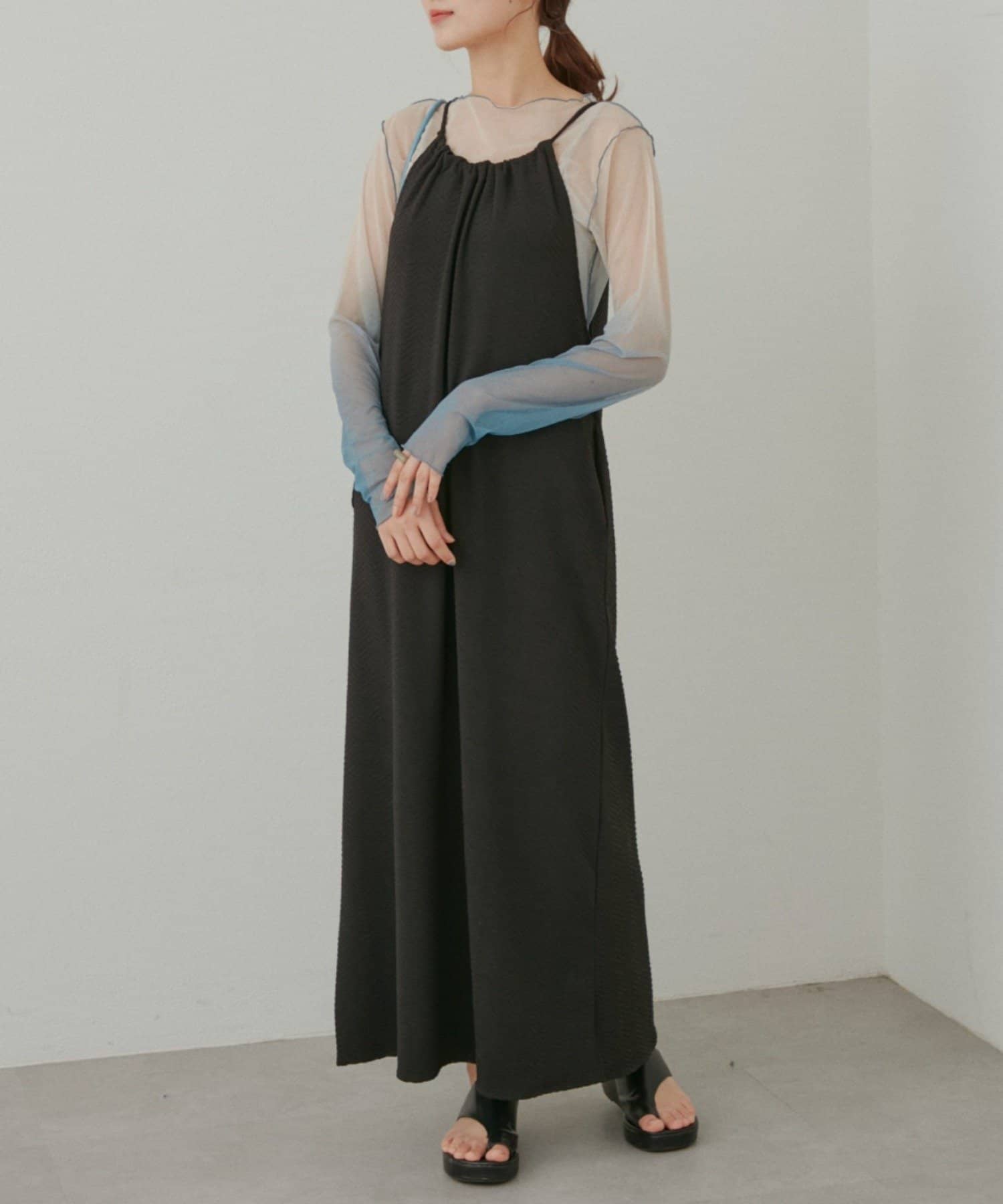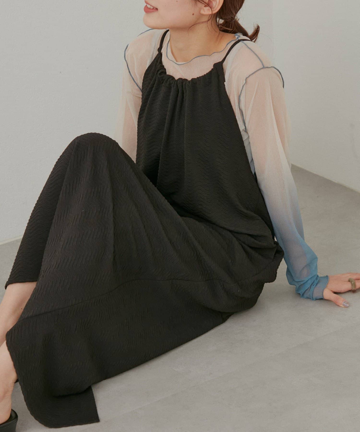 真夏はキャミソールやタンクトップでの合わせがおすすめです。